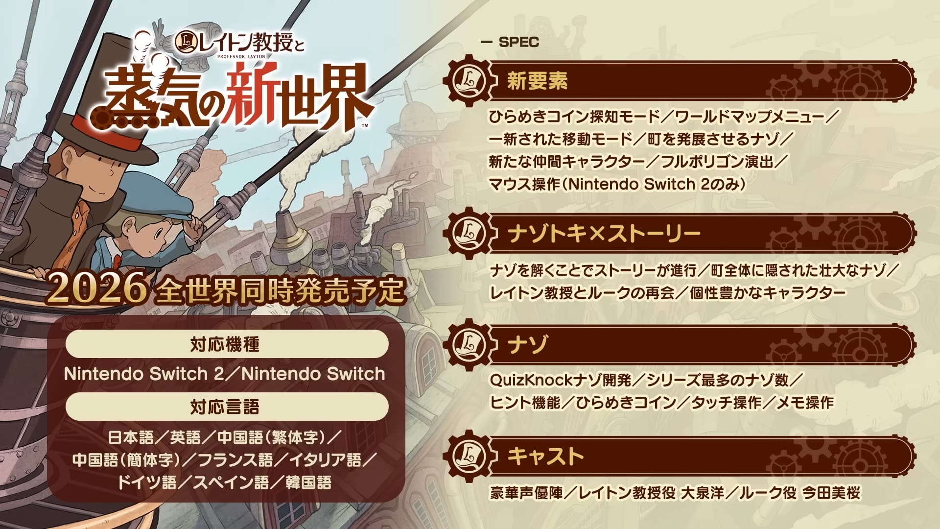 Professeur Layton et le Nouveau Monde à vapeur Nintendo Switch 2 Edition