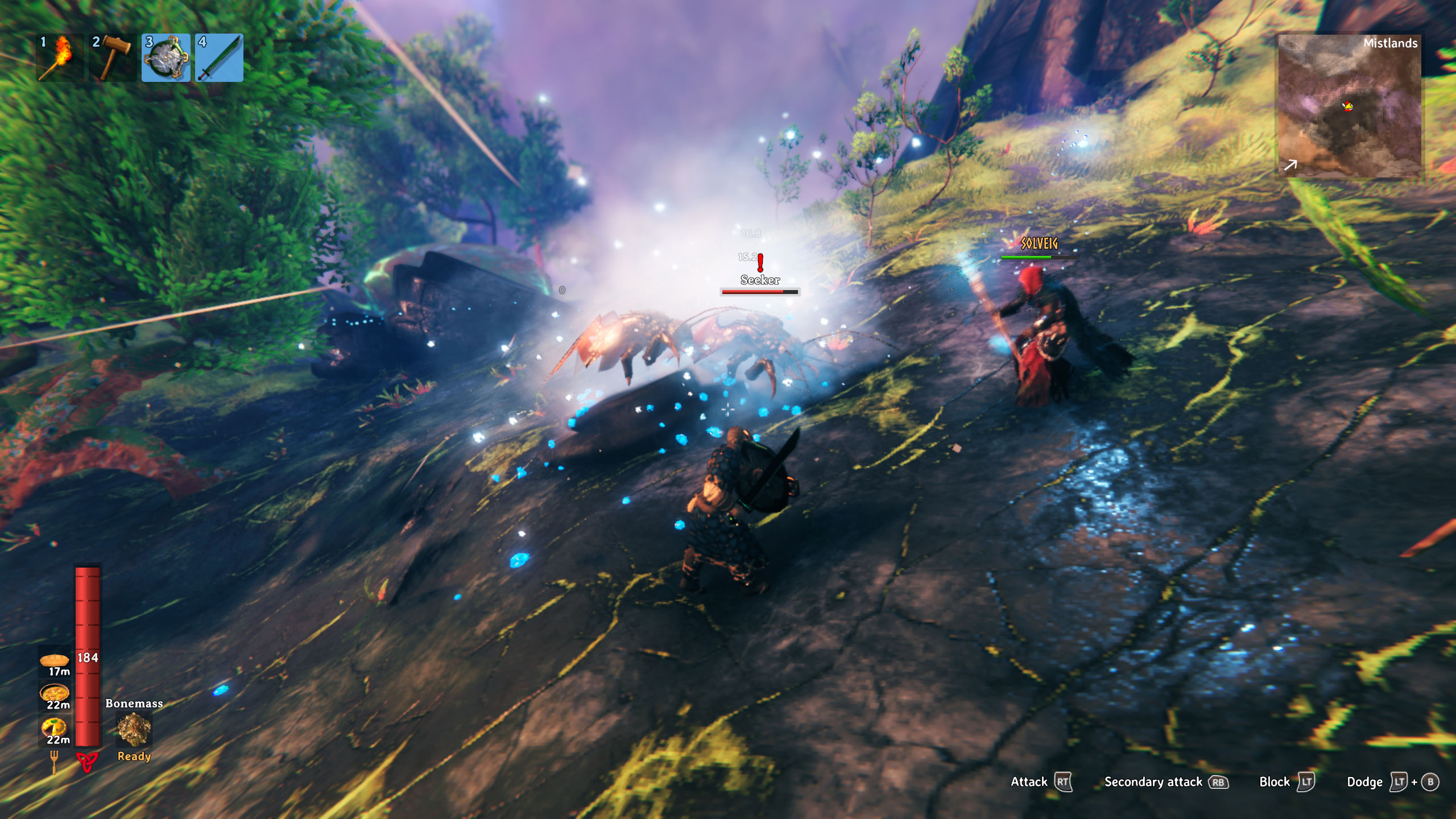 Guerrier tombé au combat, les Valkyries ont emporté votre âme à Valheim, le dixième monde de la mythologie nordique. Vous êtes le nouveau gardien de ce purgatoire primordial, assiégé de toute part par les créatures du chaos et les ennemis jurés des dieux. Odin compte sur vous pour reconquérir Valheim. Vos épreuves commencent au centre étrangement paisible de ce monde, mais la faveur des dieux récompenses les braves. Aventurez-vous dans d'impénétrables forêts, hissez-vous au sommet d'imposantes montagnes, collectez des matériaux pour forger des armes mortelles et des armures plus résistantes, ainsi que pour bâtir des camps et des fortifications. Construisez un puissant langskip et parcourez les vastes océans à la recherche de terres exotiques... mais prenez garde de ne pas naviguer trop loin...