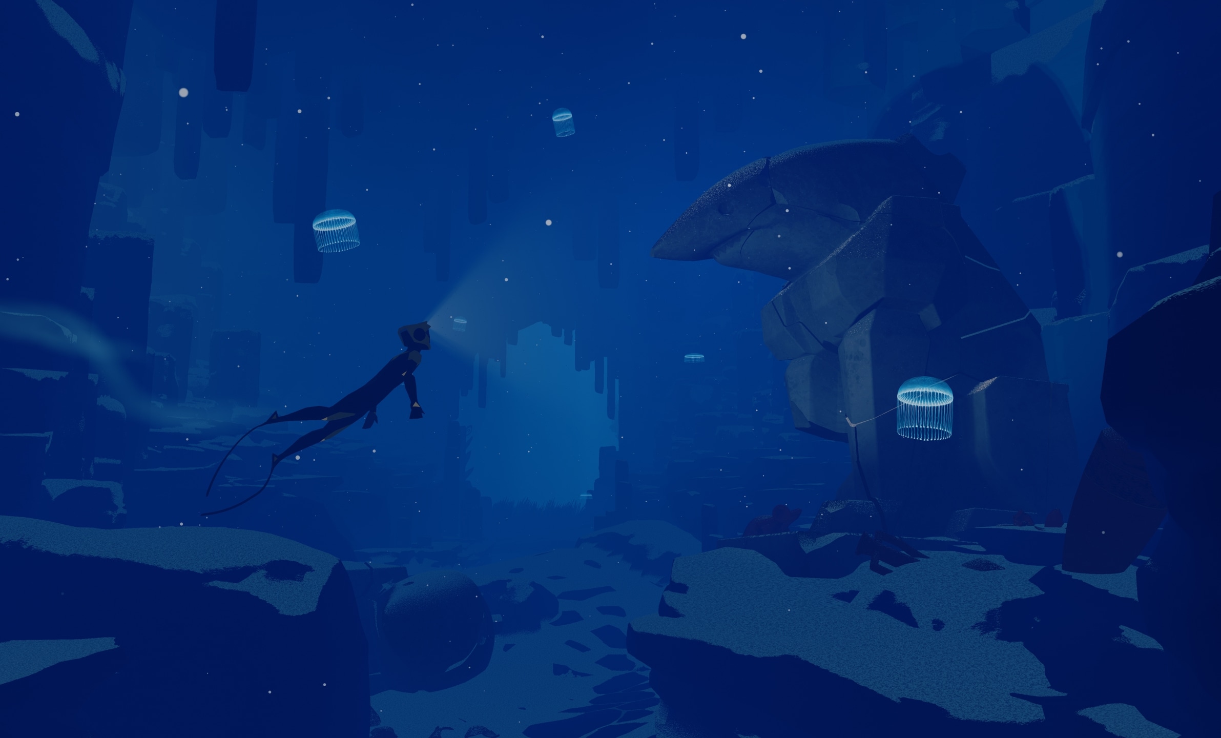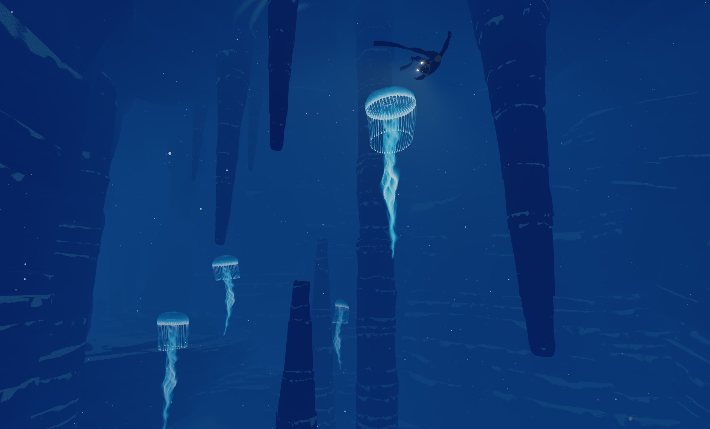 Abzû est né de l’idée du désert de Journey et de l’amour de Nava pour la plongée sous-marine, l’aventure s’inspirant de la mythologie sumérienne et du mythe de l’océan cosmique. L’histoire est racontée, muette, à travers les cinématiques qui nous font découvrir les secrets sur les forces qui nuisent à l’environnement aquatique. On incarne une plongeuse dans un monde marin vaste et vivant rempli de créatures et de mystères colorés. Après s’être réveillée à la surface de l’océan, la plongeuse doit explorer l’océan et peut se déplacer avec des acrobaties pour enfin se rendre au cœur de cet environnement aquatique. Le jeu contient plus de 100 espèces uniques inspirées de véritables créatures en interagissant avec elles, réagissant de manière procédurale aux mouvements de la plongeuse, entre eux et aux prédateurs. L’univers est très détaillé, les paysages variés et il est possible d’interagir avec l’environnement pour résoudre des énigmes et récupérer toutes sortes d’objets et plusieurs trésors cachés. La progression se fait de manière linéaire, et au fur et à mesure que l’aventure progresse, de nouvelles zones se débloquent.