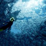 Abzû est né de l’idée du désert de Journey et de l’amour de Nava pour la plongée sous-marine, l’aventure s’inspirant de la mythologie sumérienne et du mythe de l’océan cosmique. L’histoire est racontée, muette, à travers les cinématiques qui nous font découvrir les secrets sur les forces qui nuisent à l’environnement aquatique. On incarne une plongeuse dans un monde marin vaste et vivant rempli de créatures et de mystères colorés. Après s’être réveillée à la surface de l’océan, la plongeuse doit explorer l’océan et peut se déplacer avec des acrobaties pour enfin se rendre au cœur de cet environnement aquatique. Le jeu contient plus de 100 espèces uniques inspirées de véritables créatures en interagissant avec elles, réagissant de manière procédurale aux mouvements de la plongeuse, entre eux et aux prédateurs. L’univers est très détaillé, les paysages variés et il est possible d’interagir avec l’environnement pour résoudre des énigmes et récupérer toutes sortes d’objets et plusieurs trésors cachés. La progression se fait de manière linéaire, et au fur et à mesure que l’aventure progresse, de nouvelles zones se débloquent.