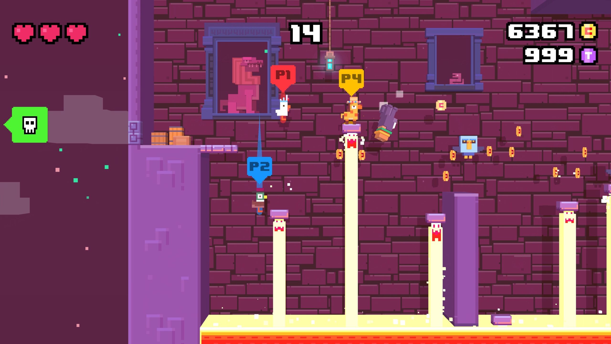 Crossy Road Castle est un jeu de plates-formes 2D arcade coopératif dans lequel vous devrez progresser jusqu'à 4 joueurs (le jeu est également jouable en solo) en escaladant des tours de châteaux de plus en plus difficiles. Tirez avec des canons, chevauchez des arcs-en-ciel et frayez-vous un chemin à travers un labyrinthe de niveaux sans fin.