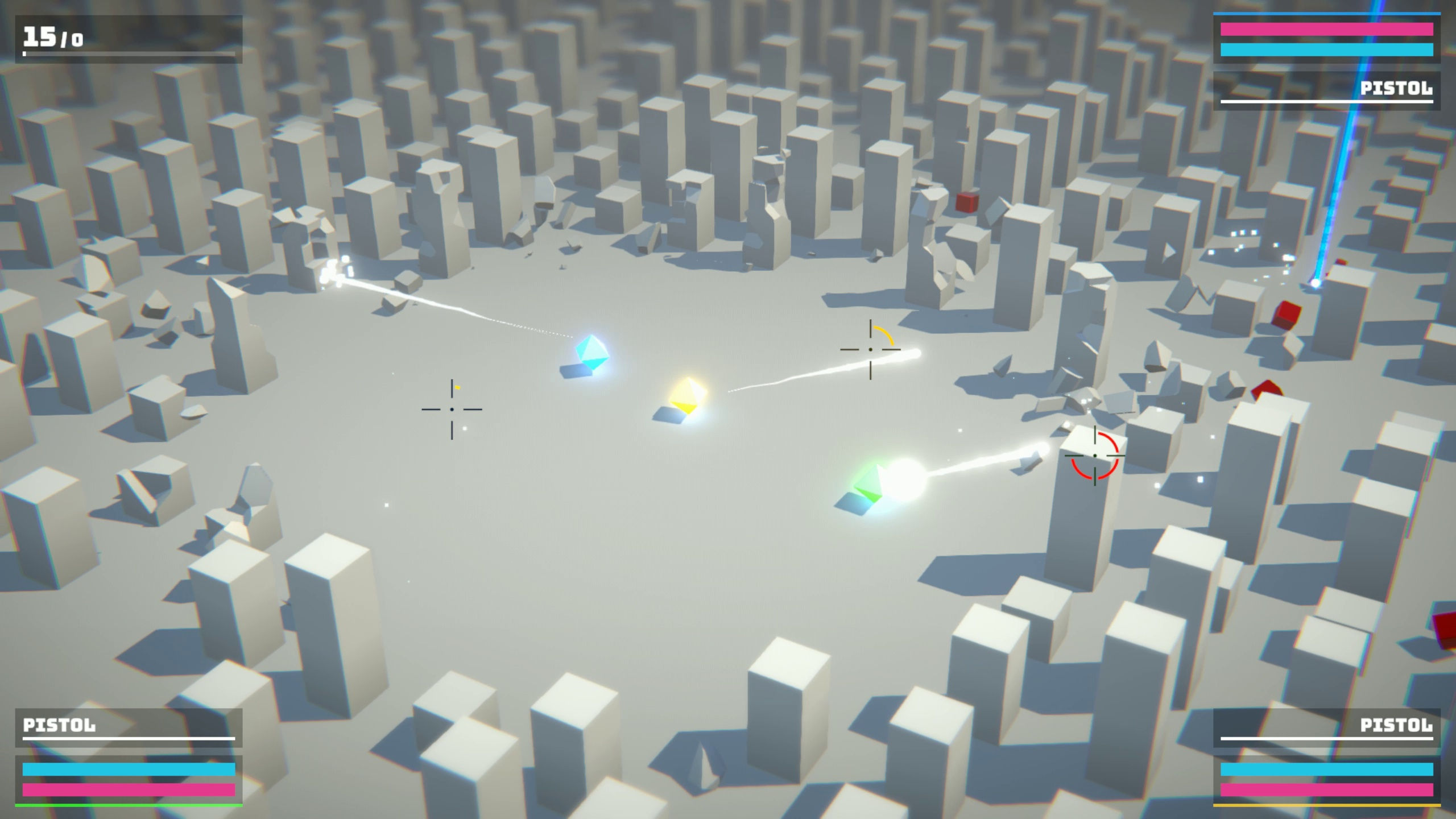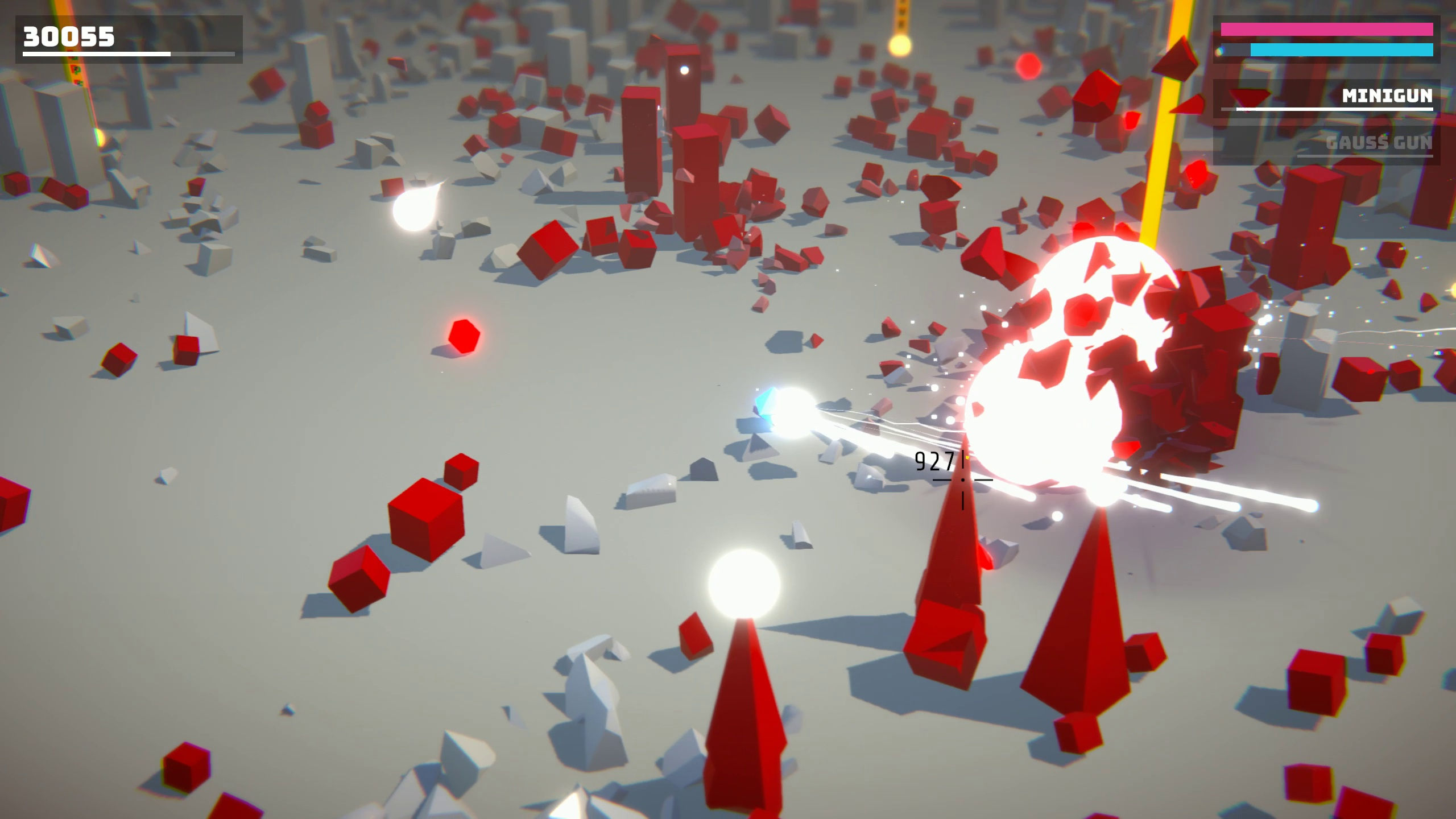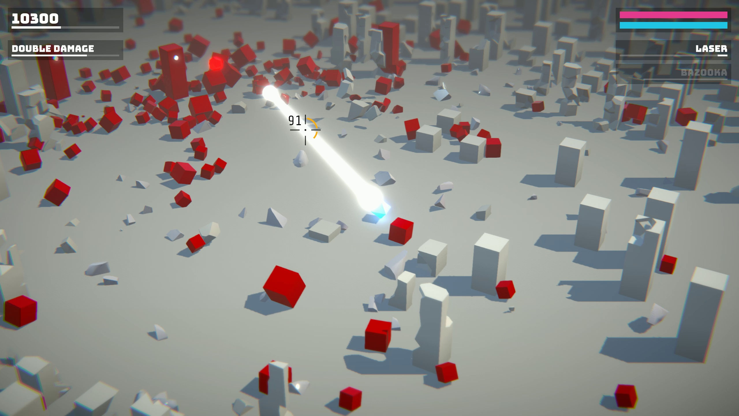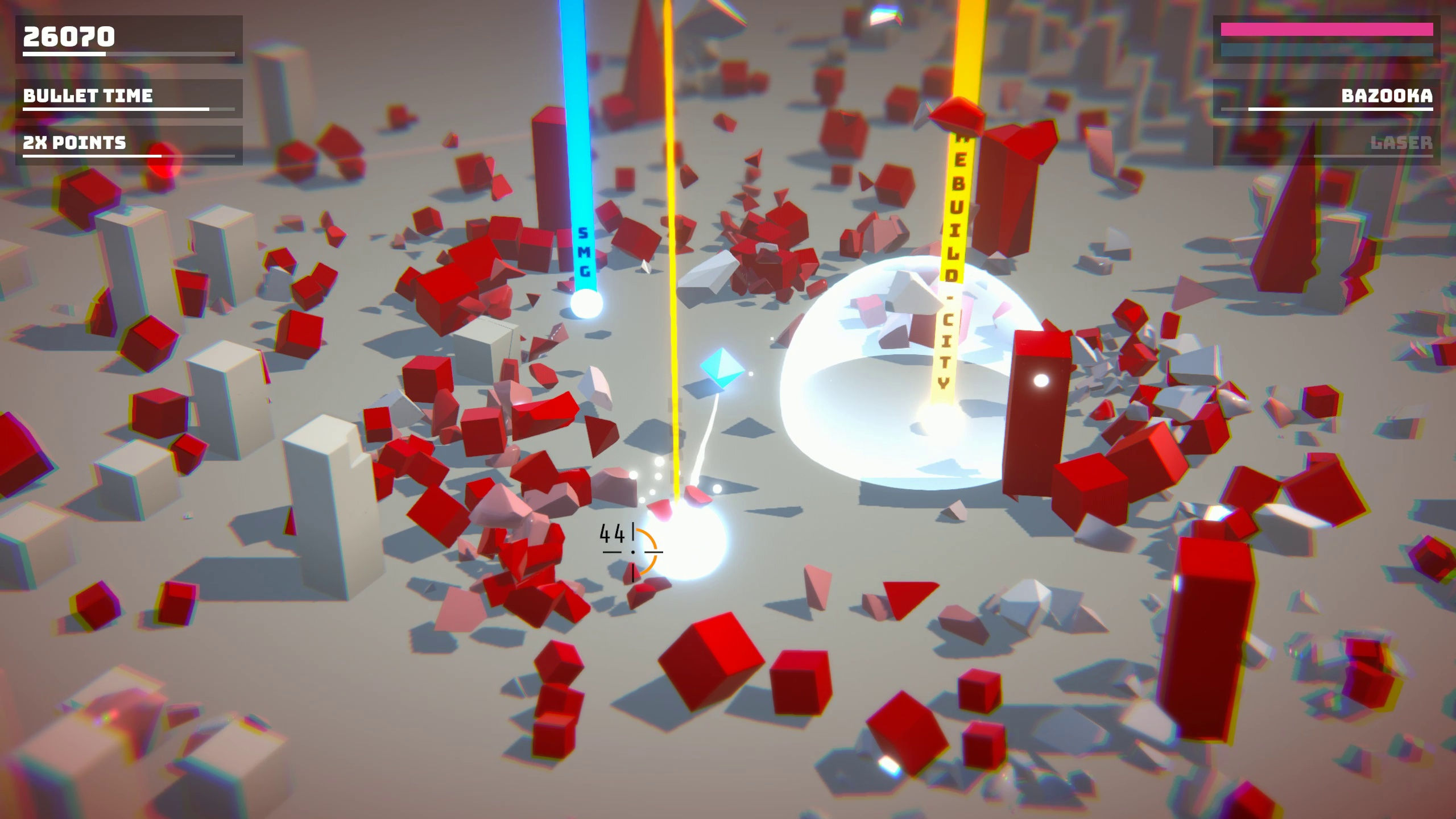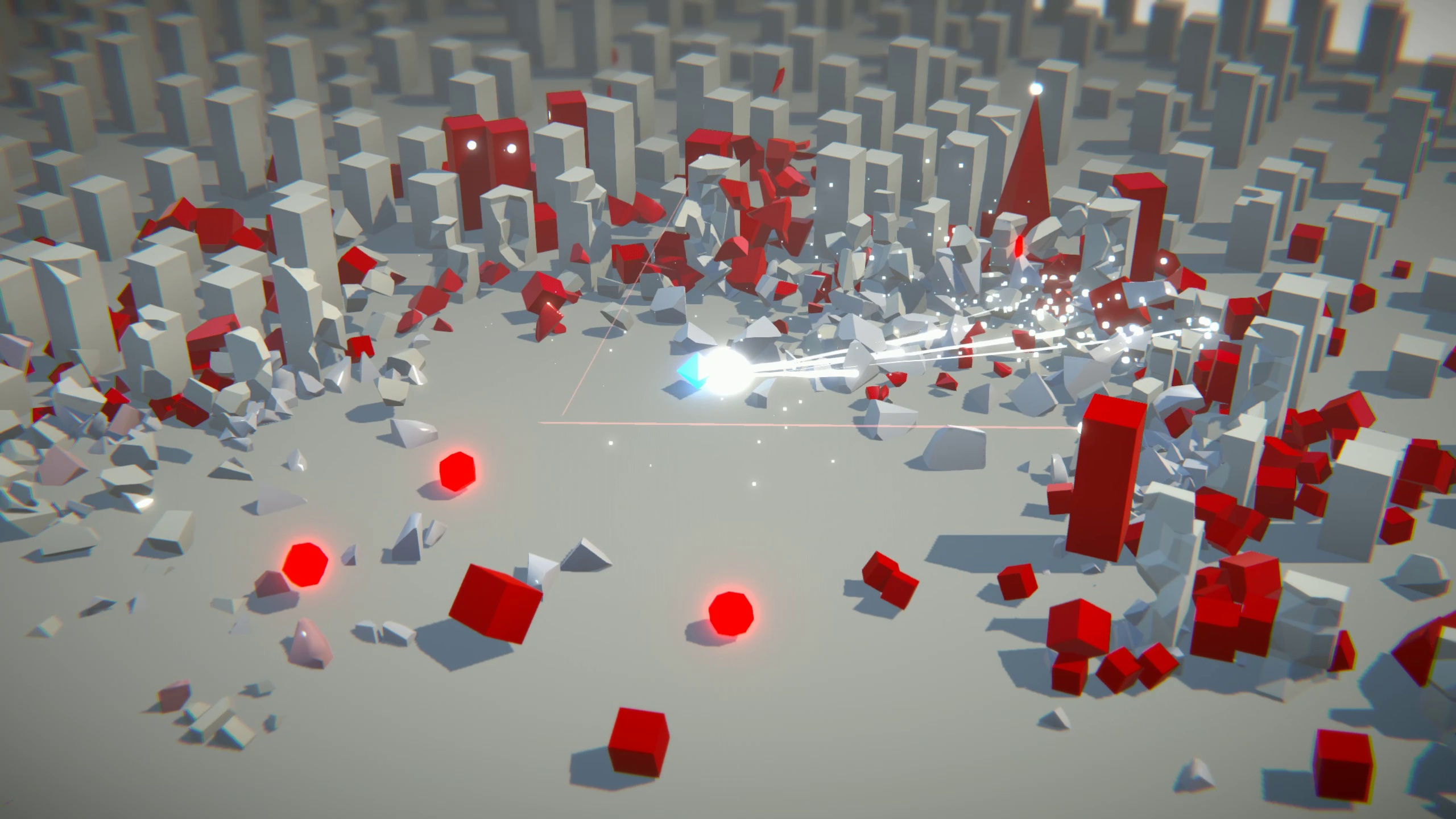 Dans une ville futuriste, mettez en pièces des adversaires rouges et semblables à des cubes grâce à des balles, des lasers et des explosions nucléaires. Jouez en solo ou avec vos amis grâce au mode co-op local. Détruisez autant d'adversaires que possible avant de vous faire submerger.