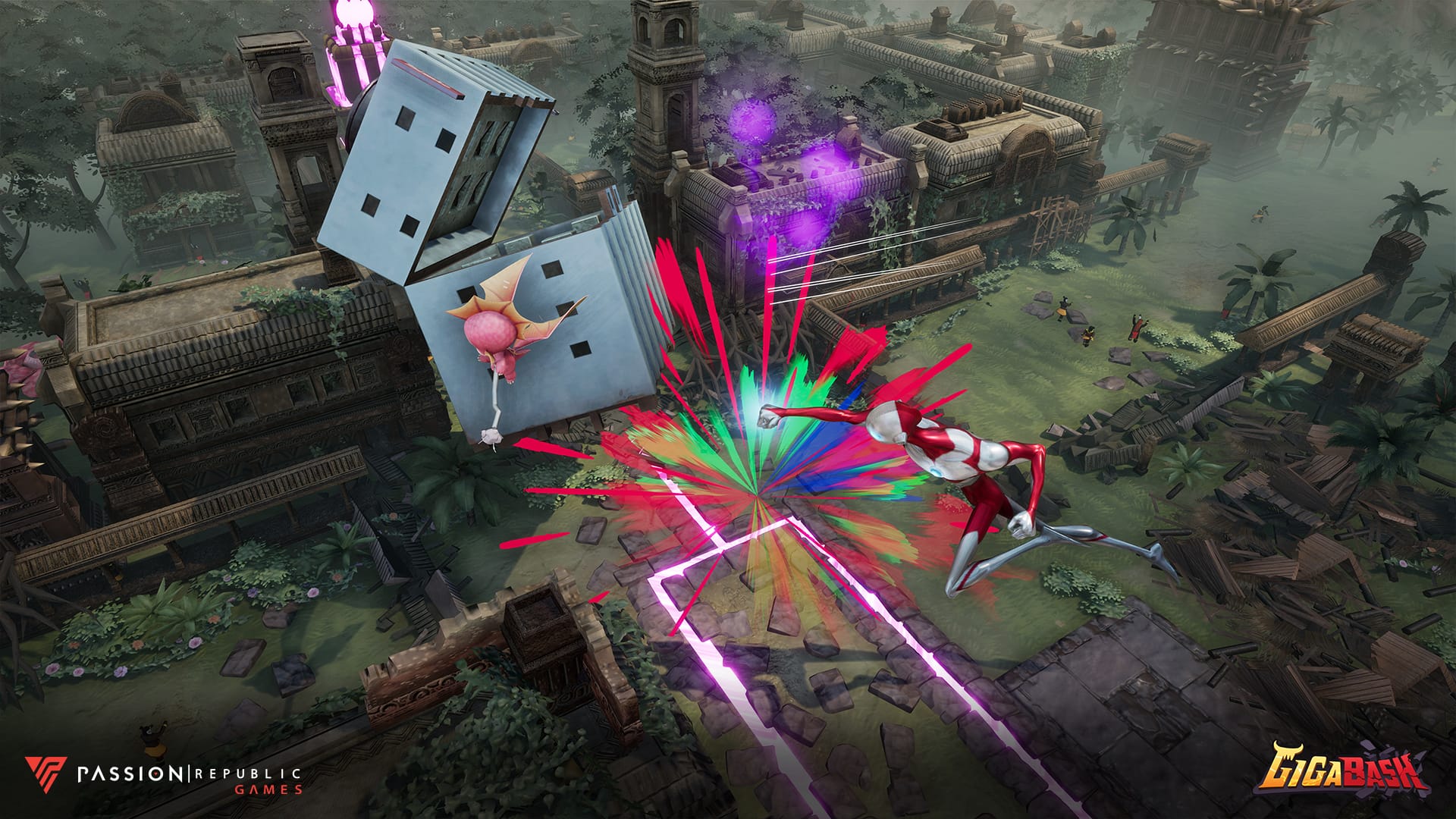 Que vous soyez fans de films de kaiju (films de monstres japonais tels que Godzilla, Mothra, Gamera, Ultraman et d’autres) ou simplement amateur de jeux de combat à la Power Stone ou Super Smash Bros., ce titre pourrait vous intéresser. GigaBash est un jeu de combat en arène baigné par l’univers des créatures de films et jeux kaiju classiques dans lequel les joueurs prennent possession d’un titan déchaîné ou d’un mecha chasseur de titans et doivent s’anéantir l’un l’autre en invoquant la foudre, en utilisant des tours radio comme matraques ou en transformant un quartier entier (ainsi que vos ennemis) en boule de neige géante. Si vous faites suffisamment de dégâts, vous pourrez prendre votre forme ultime en devenant un classe S terrifiant.