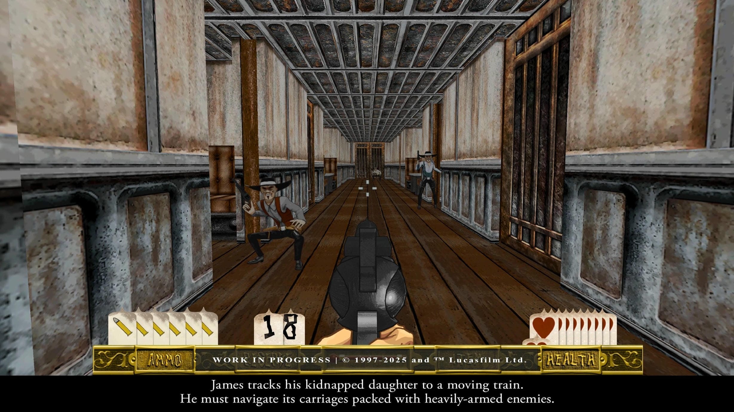 Célèbre FPS sorti en 1997 par LucasArts sur PC, Outlaws va avoir une seconde vie grâce à Nightdive Studios l'un des maitres de l'adaptation sous le titre d'Outlaws + Handful of Missions : Remaster. Comme son titre l'indique, il s'agit ici d'une remasterisation du jeu d'origine avec notamment l'ajout d'un mode multi en ligne crossplay ainsi que des cinématiques décompressées en haute résolution et des améliorations visuelles pour les armes, les personnages et les ennemis du jeu (entièrement recréés avec des palettes de couleurs complètes, tout en respectant les illustrations archivées et le style du jeu original). Le jeu sera accompagné de son extension Handful of Missions sortie en 1998.