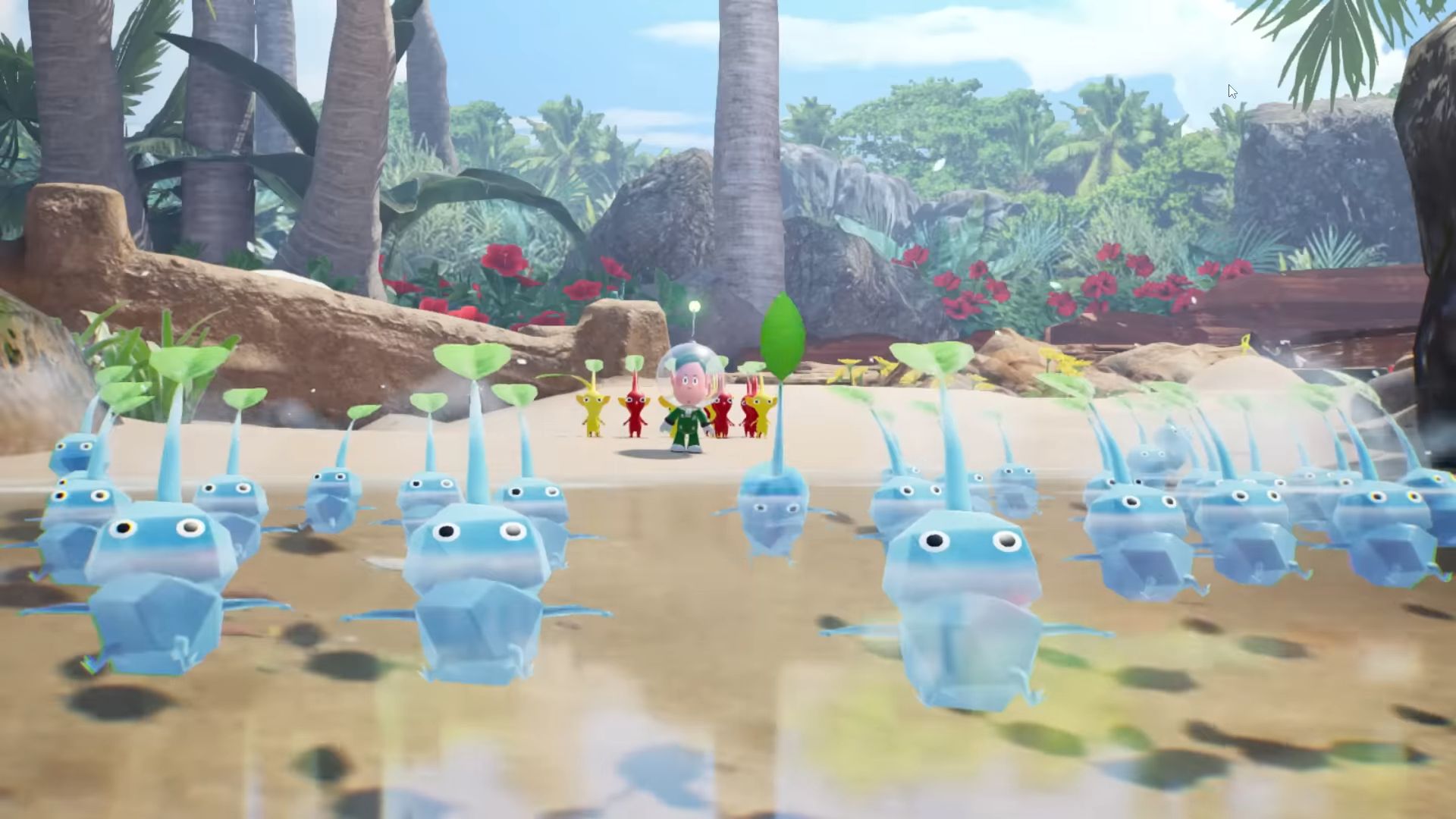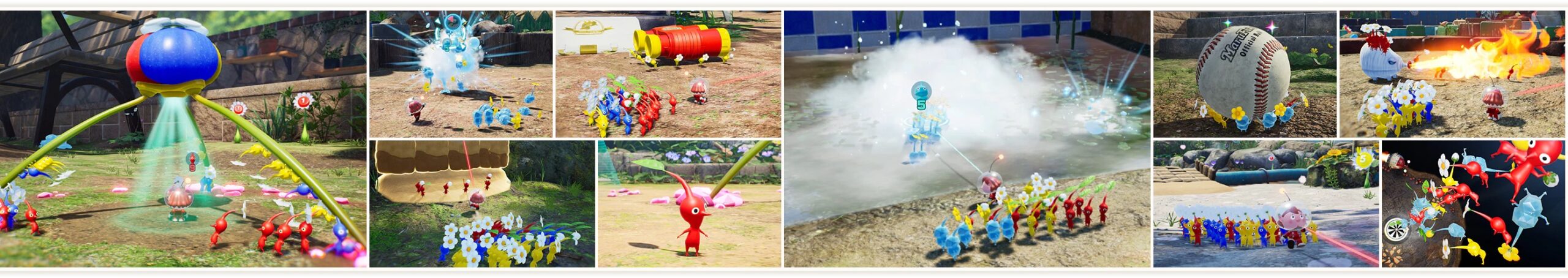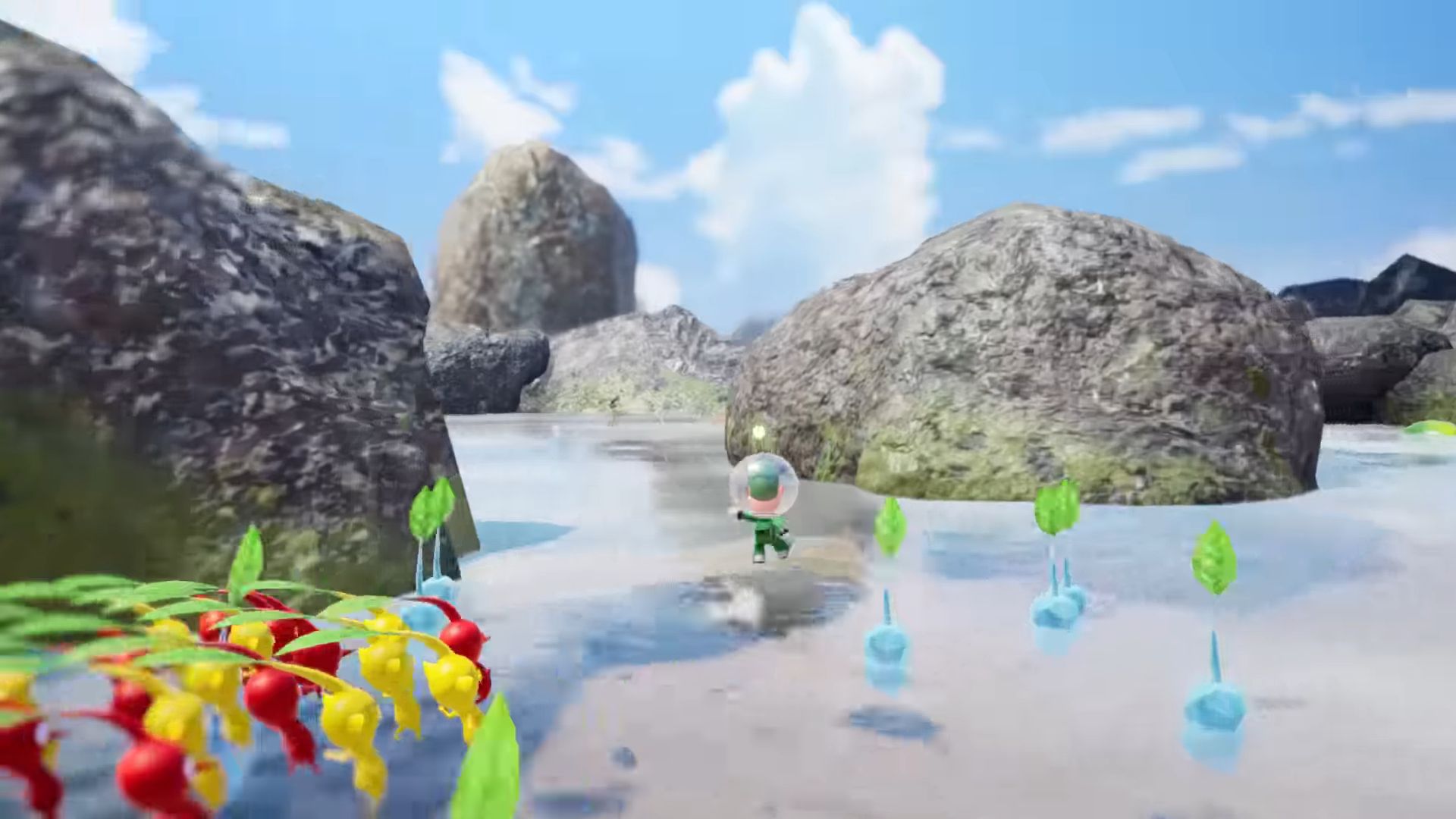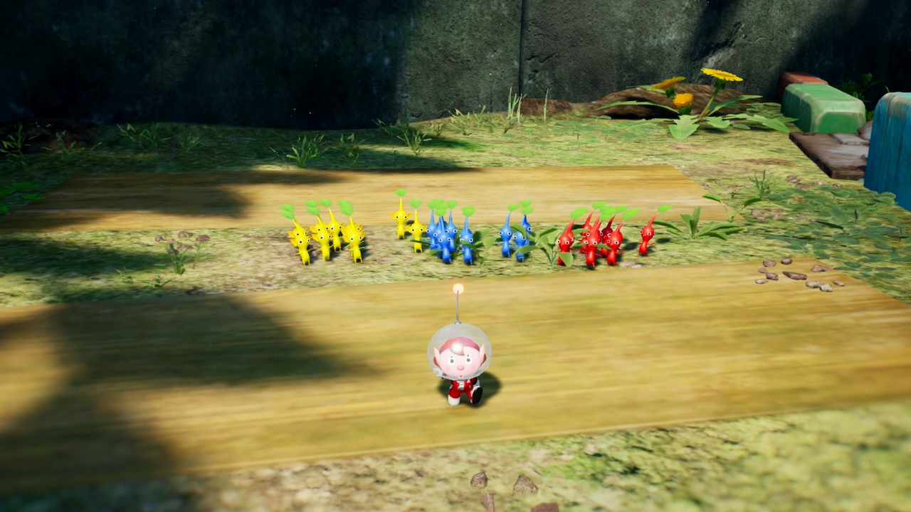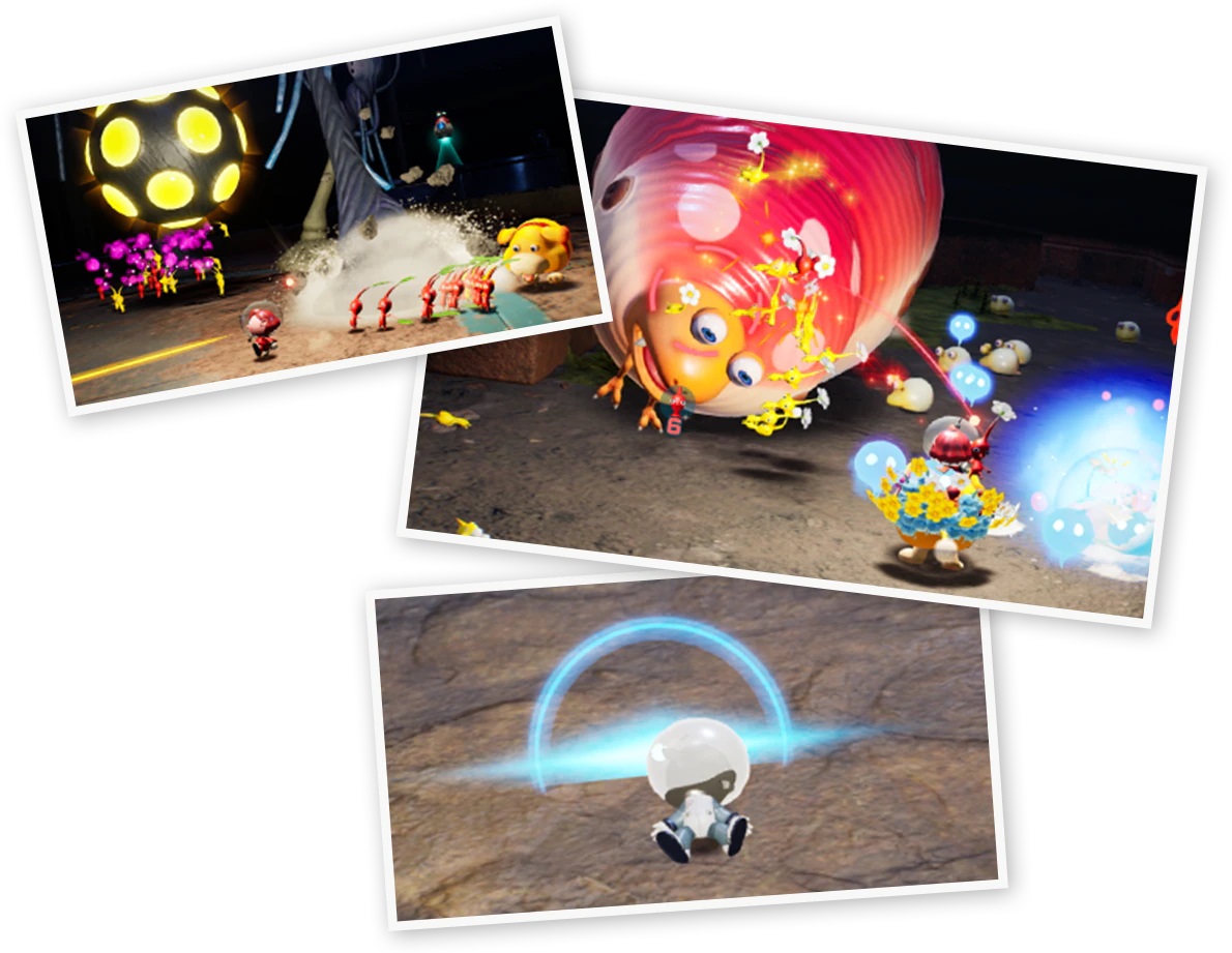 Dans ce nouvel épisode, on arrive sur une étrange planète, où vivent donc les Pikmin, mais aussi des bullborbes dont plusieurs particulièrement agressifs. Il y a les Pikmin rouges qui sont insensibles au feu, ceux de couleur bleue qui nagent très bien, mais aussi des Pikmin qui apparaissent pour la première fois dans ce nouveau jeu : les Pikmin de glace. Ils ont la capacité de geler les ennemis et des éléments du décor. Comme d'habitude, un Pikmin seul est petit et vulnérable, mais s'il est intégré à un groupe, ce dernier permet de surmonter de nombreux obstacles. Autre nouveauté, un nouveau compagnon de l'espace ressemblant beaucoup à un chien, qui se nomme Otchin. Il a la capacité de détruire certains obstacles, de déplacer des objets lourds, de nager et de porter les Pikmin sur son dos. De plus, il peut suivre également l'odeur de ce que l'on recherche pour nous emmener à l'endroit adéquat.