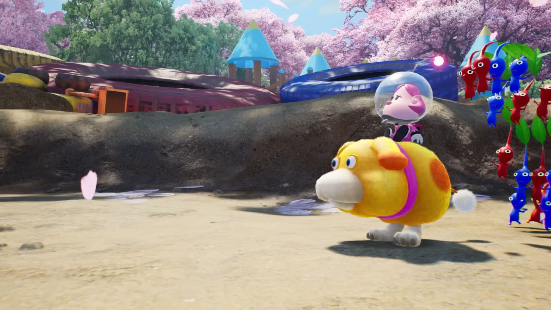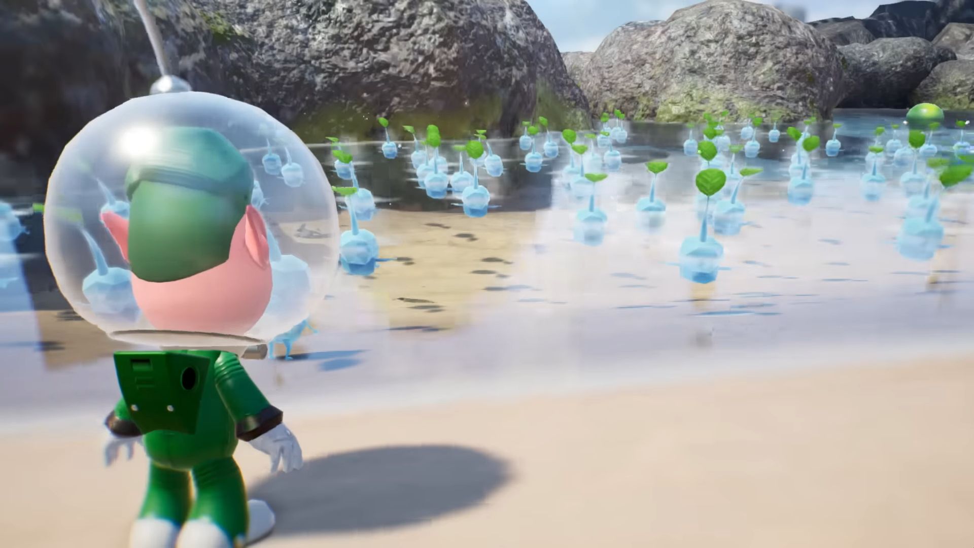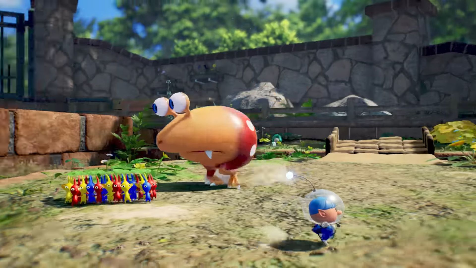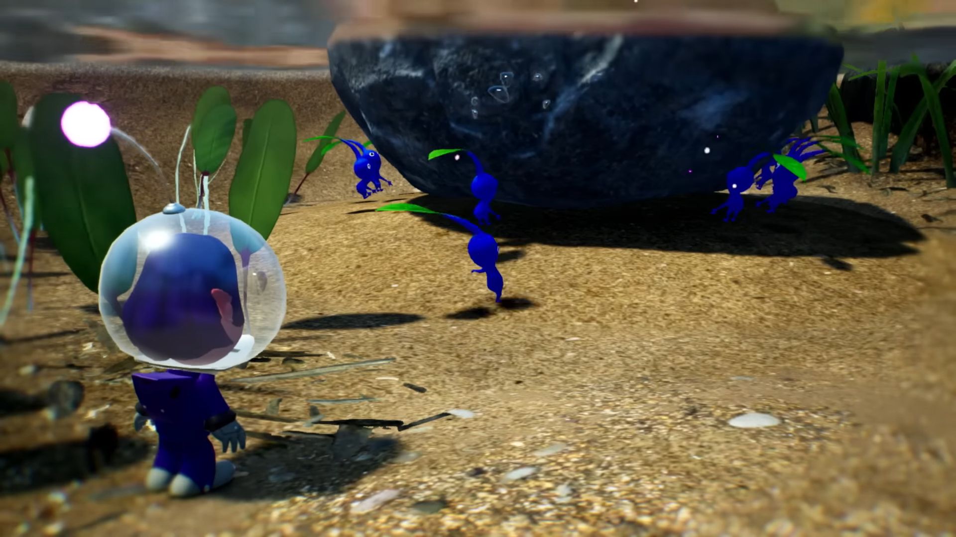 Dans ce nouvel épisode, on arrive sur une étrange planète, où vivent donc les Pikmin, mais aussi des bullborbes dont plusieurs particulièrement agressifs. Il y a les Pikmin rouges qui sont insensibles au feu, ceux de couleur bleue qui nagent très bien, mais aussi des Pikmin qui apparaissent pour la première fois dans ce nouveau jeu : les Pikmin de glace. Ils ont la capacité de geler les ennemis et des éléments du décor. Comme d'habitude, un Pikmin seul est petit et vulnérable, mais s'il est intégré à un groupe, ce dernier permet de surmonter de nombreux obstacles. Autre nouveauté, un nouveau compagnon de l'espace ressemblant beaucoup à un chien, qui se nomme Otchin. Il a la capacité de détruire certains obstacles, de déplacer des objets lourds, de nager et de porter les Pikmin sur son dos. De plus, il peut suivre également l'odeur de ce que l'on recherche pour nous emmener à l'endroit adéquat.