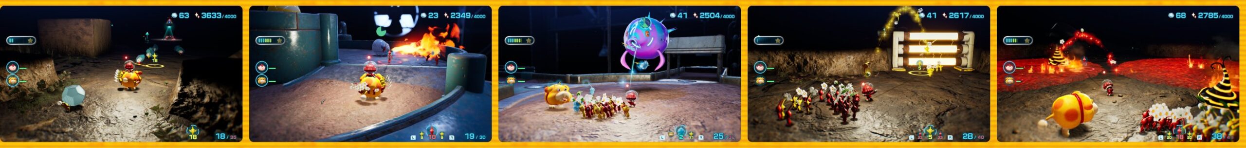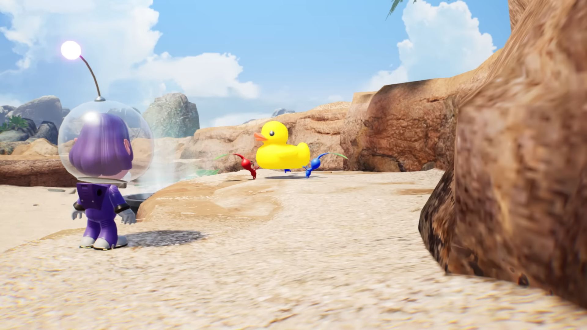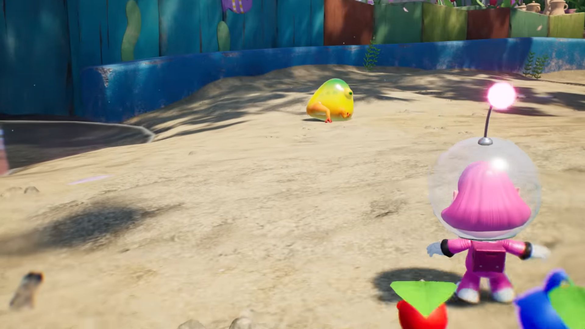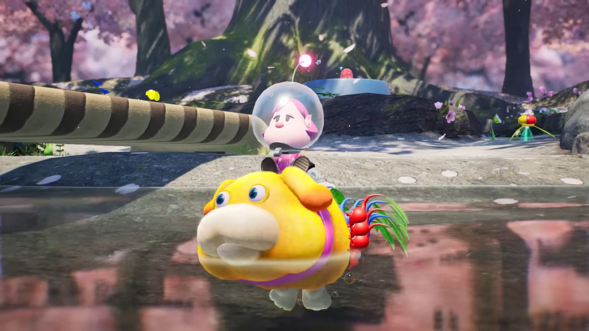 Dans ce nouvel épisode, on arrive sur une étrange planète, où vivent donc les Pikmin, mais aussi des bullborbes dont plusieurs particulièrement agressifs. Il y a les Pikmin rouges qui sont insensibles au feu, ceux de couleur bleue qui nagent très bien, mais aussi des Pikmin qui apparaissent pour la première fois dans ce nouveau jeu : les Pikmin de glace. Ils ont la capacité de geler les ennemis et des éléments du décor. Comme d'habitude, un Pikmin seul est petit et vulnérable, mais s'il est intégré à un groupe, ce dernier permet de surmonter de nombreux obstacles. Autre nouveauté, un nouveau compagnon de l'espace ressemblant beaucoup à un chien, qui se nomme Otchin. Il a la capacité de détruire certains obstacles, de déplacer des objets lourds, de nager et de porter les Pikmin sur son dos. De plus, il peut suivre également l'odeur de ce que l'on recherche pour nous emmener à l'endroit adéquat.