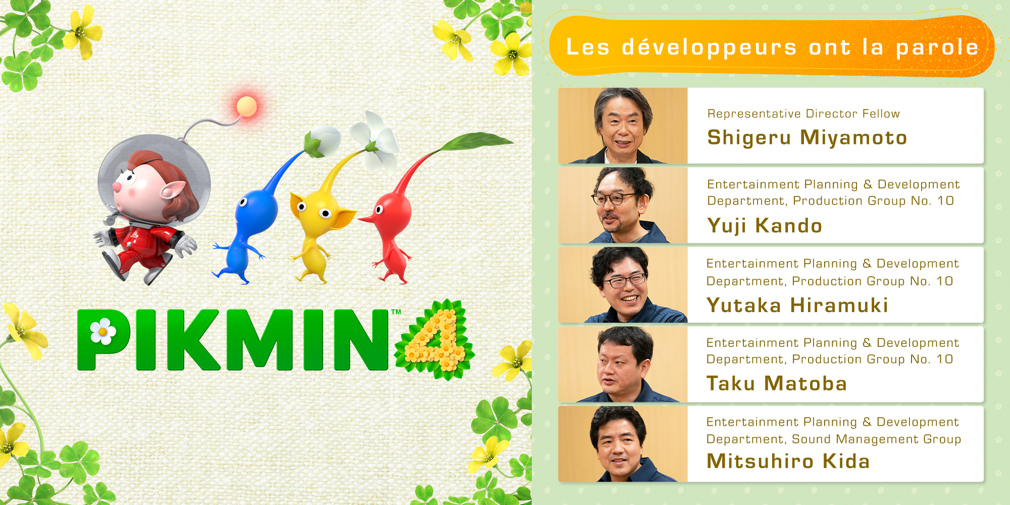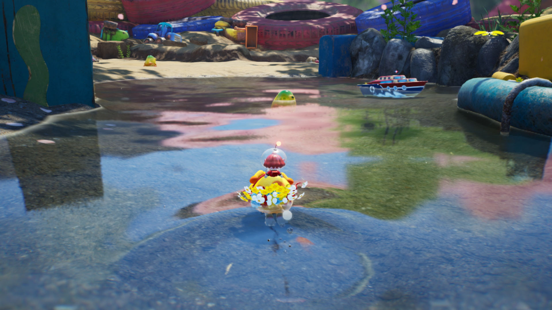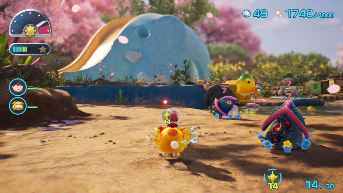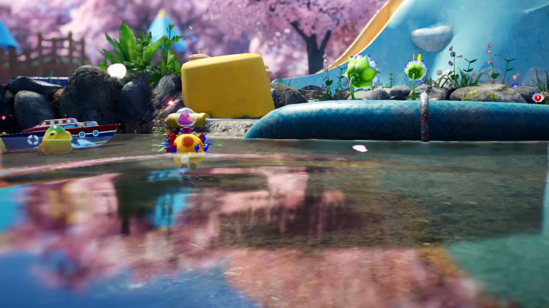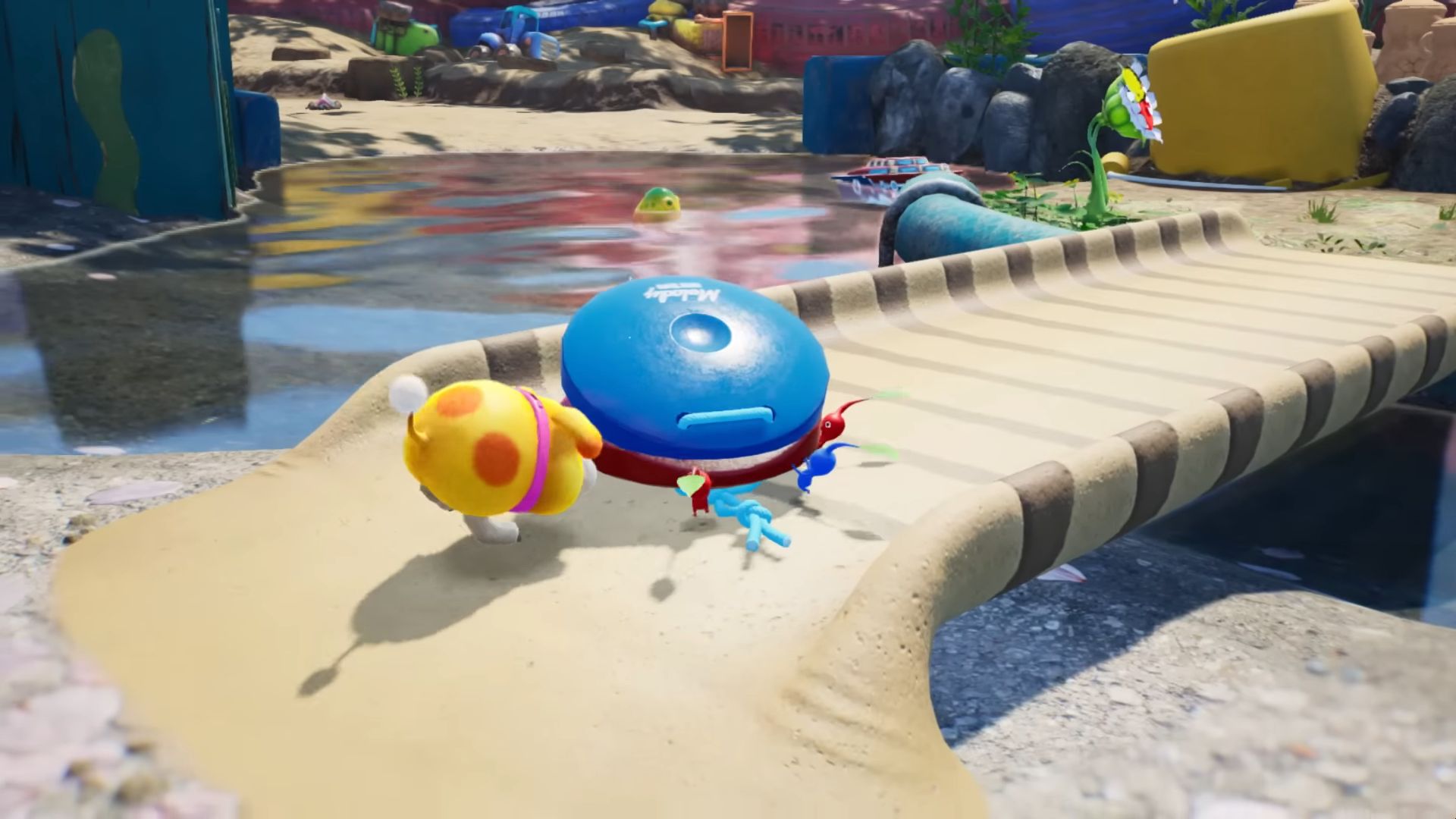 Dans ce nouvel épisode, on arrive sur une étrange planète, où vivent donc les Pikmin, mais aussi des bullborbes dont plusieurs particulièrement agressifs. Il y a les Pikmin rouges qui sont insensibles au feu, ceux de couleur bleue qui nagent très bien, mais aussi des Pikmin qui apparaissent pour la première fois dans ce nouveau jeu : les Pikmin de glace. Ils ont la capacité de geler les ennemis et des éléments du décor. Comme d'habitude, un Pikmin seul est petit et vulnérable, mais s'il est intégré à un groupe, ce dernier permet de surmonter de nombreux obstacles. Autre nouveauté, un nouveau compagnon de l'espace ressemblant beaucoup à un chien, qui se nomme Otchin. Il a la capacité de détruire certains obstacles, de déplacer des objets lourds, de nager et de porter les Pikmin sur son dos. De plus, il peut suivre également l'odeur de ce que l'on recherche pour nous emmener à l'endroit adéquat.