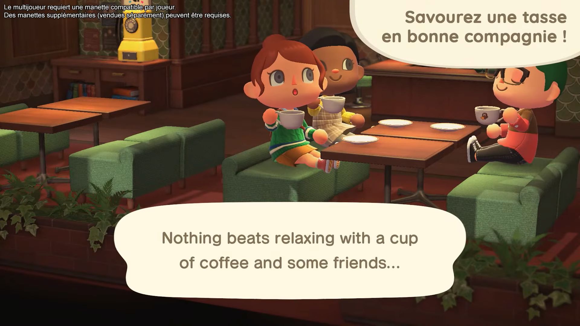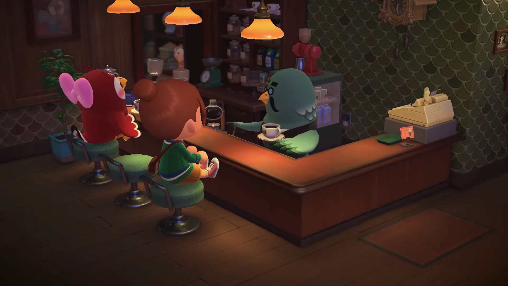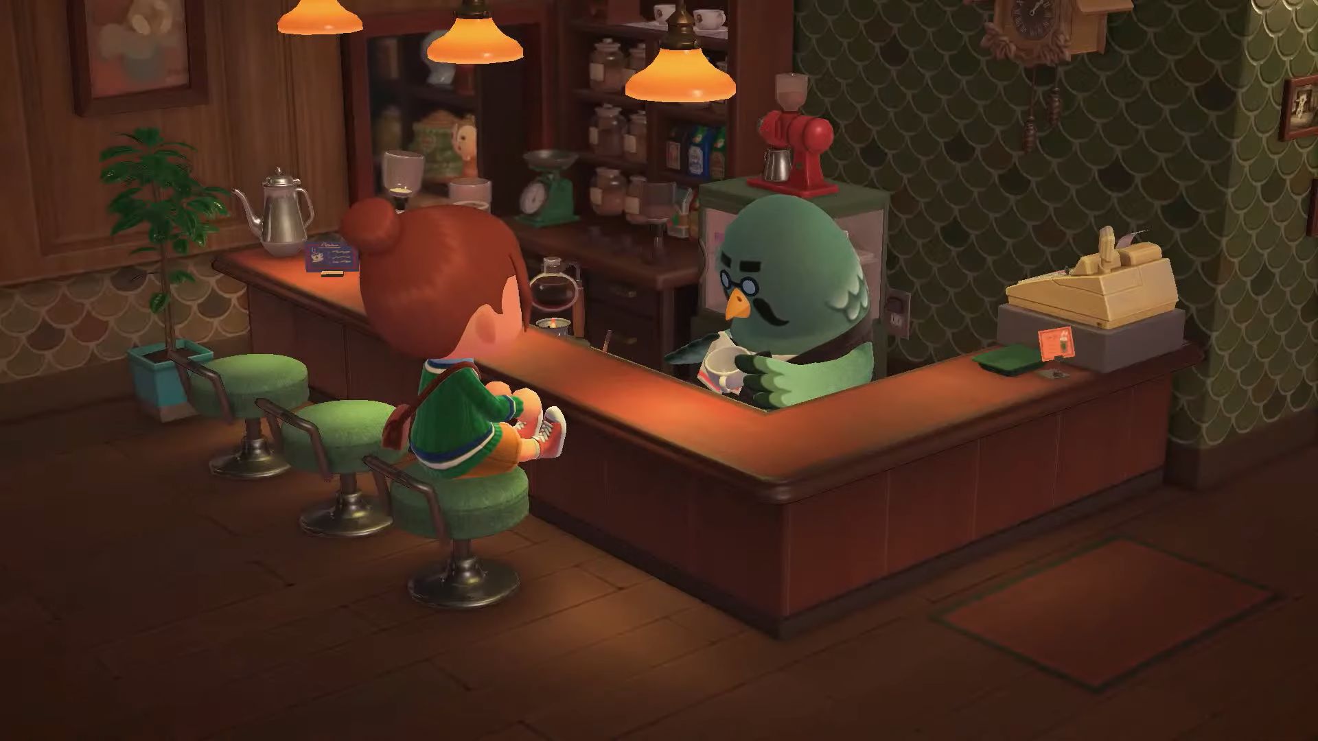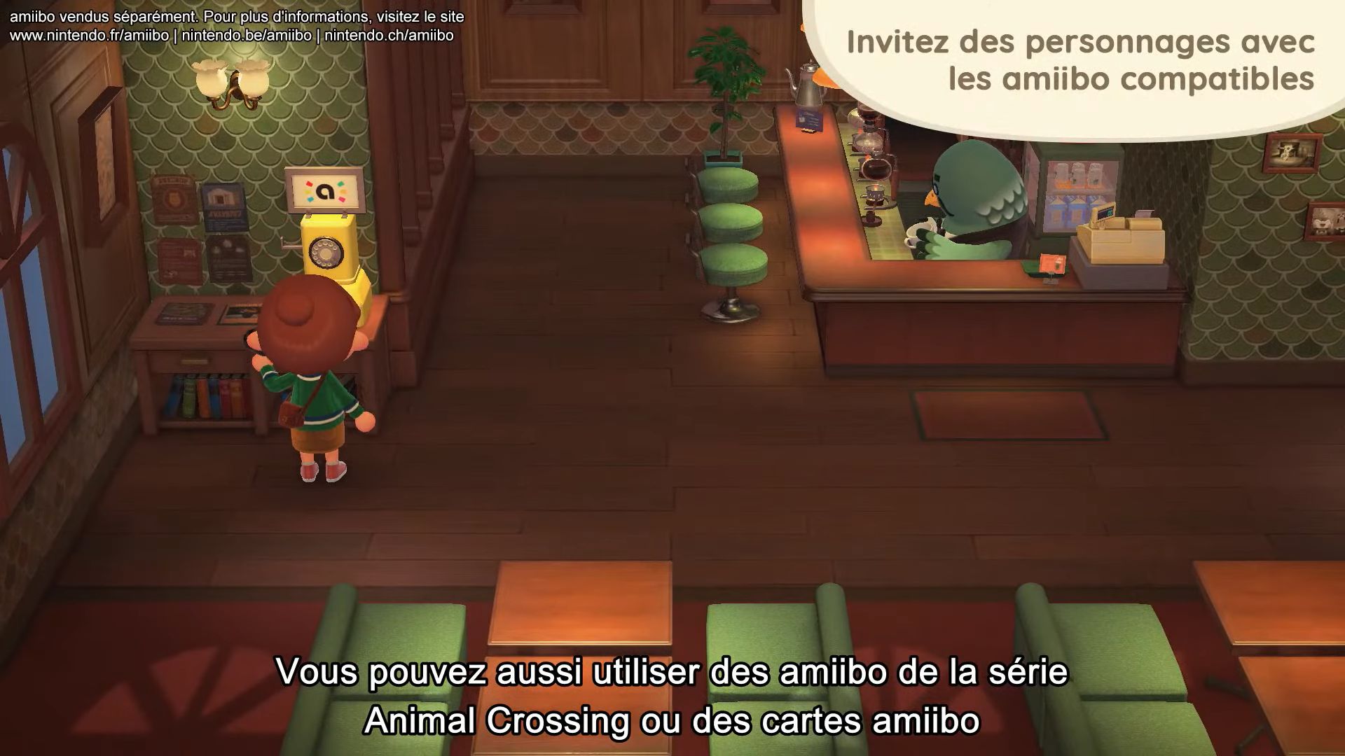 Le Direct a bien sûr commencé avec la révélation de tout le contenu pour la grande nouvelle mise à jour gratuite. Sa date de sortie a été rapidement annoncée pour le 5 novembre prochain, et il s’agira sans surprise de la version 2.0. Tout d’abord, comme attendu, cette mise à jour ajoutera un tout nouveau lieu qui viendra s’ajouter au musée : le fameux Perchoir, le café du barista Robusto. On pourra lui commander une tasse de café pour 200 clochettes, voir des habitants de l’île déguster à leur tour un petit café, y compris les PNJ importants comme Marie. Il sera possible d’inviter d’autres personnages en utilisant leurs cartes ou figurines amiibo avec le téléphone du café, et certains viendront même accompagnés même après avoir sélectionné un seul personnage via son amiibo. Bien évidemment, le Perchoir sera également accessible en ligne et en local, ce qui permettra de se retrouver jusqu’à 8 et de prendre un café ensemble. Chose non précisée dans le Direct : pour avoir accès au Perchoir, il faudra avoir réalisé une certaine faveur pour Thibou.