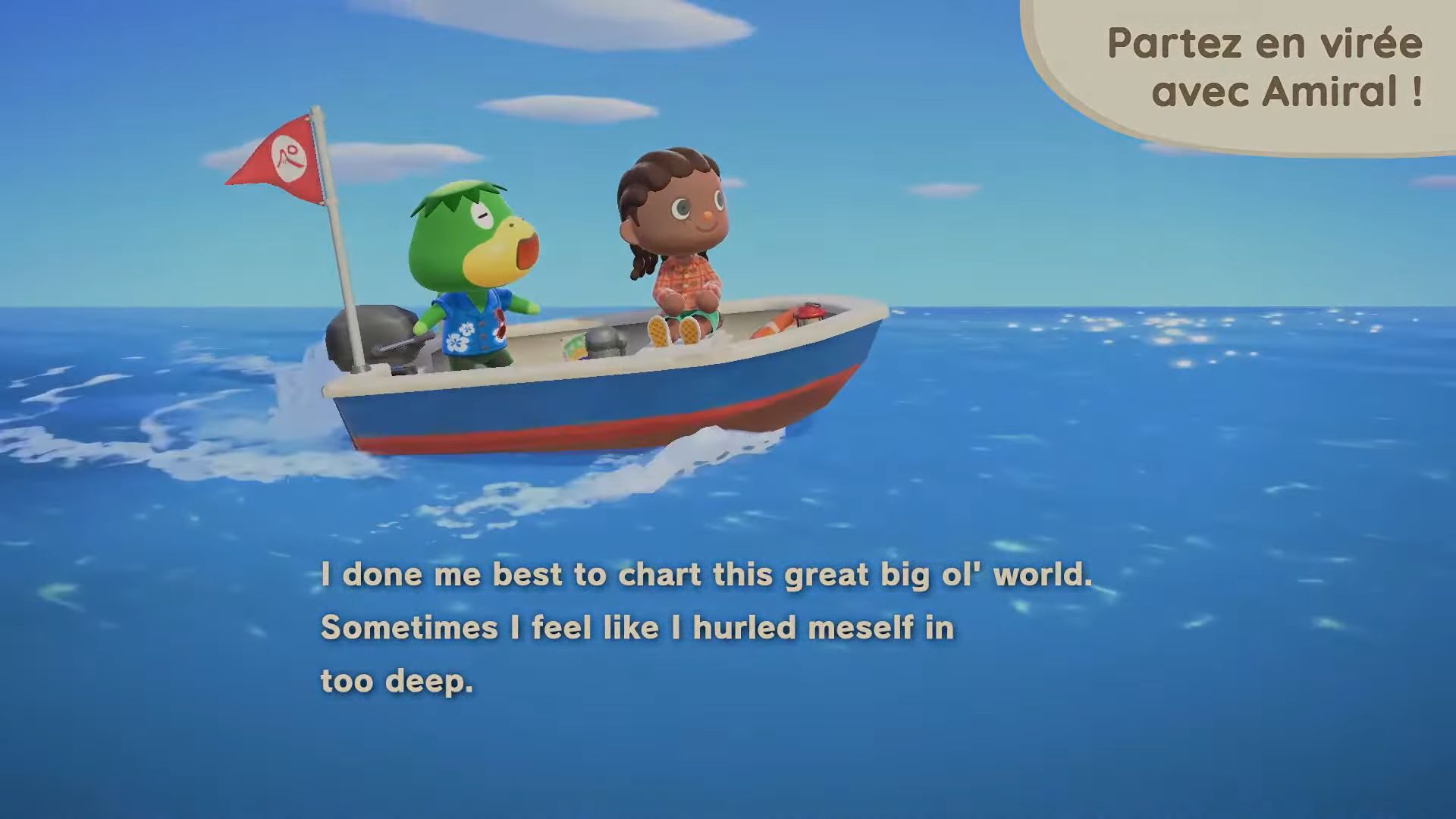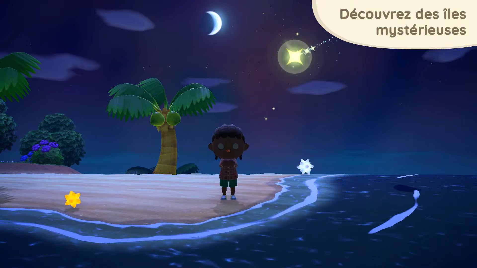 Après Robusto, place à Amiral, dont le retour a été également confirmé. Il n’a pas changé de métier depuis New Leaf et on le trouvera donc amarré au ponton de l’île. Cependant, cette fois-ci, il nous amènera autre part… En effet, après avoir embarqué sur son petit bateau, on ira voguer vers une destination mystère au gré de ses chants marins, contre 1000 miles Nook. Il y aura plusieurs destinations mystères, où l’on atterrira au hasard, et seul Amiral les connaît. La première île aperçue dans la vidéo du Direct regorge d’une nouvelle plante qui pourra être transportée et utilisée sur l’île telle une échelle (ce qui était jusque-là totalement impossible, aucun objet n’existant pour être placé sur des murs pour accéder aux lieux en hauteur de l’échelle à transporter), mais aussi de nouveaux buissons et mauvaises herbes. Il y aura même certaines îles avec une saison différente de celle de la nôtre, et même des heures différentes. Mieux encore, certaines auront des pluies d’étoiles filantes et il sera déjà possible de trouver des fragments sur la plage.