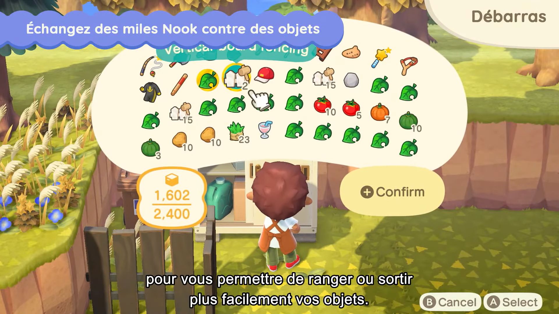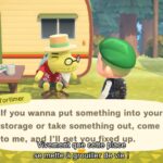 Si à un moment donné nos poches sont pleines en explorant l’île, on pourra utiliser le débarras, qui pourra être placé à l’extérieur. Ce débarras sera lié directement à l’espace de rangement, ce qui permettra donc de stocker plein d’objets et d’en sortir. Il y aura également un distributeur de clochettes, ce qui évitera de se rendre tout le temps à la mairie.