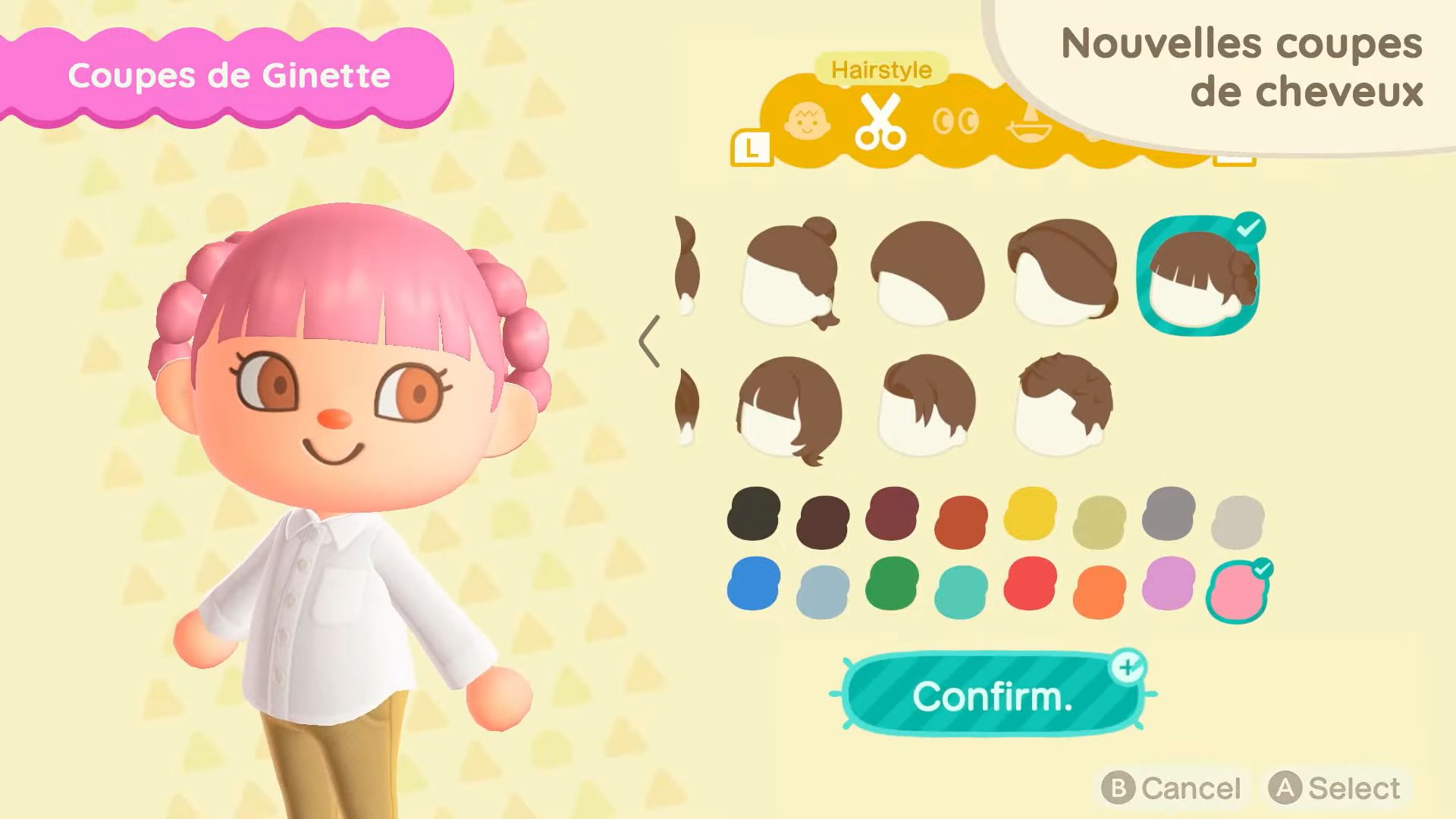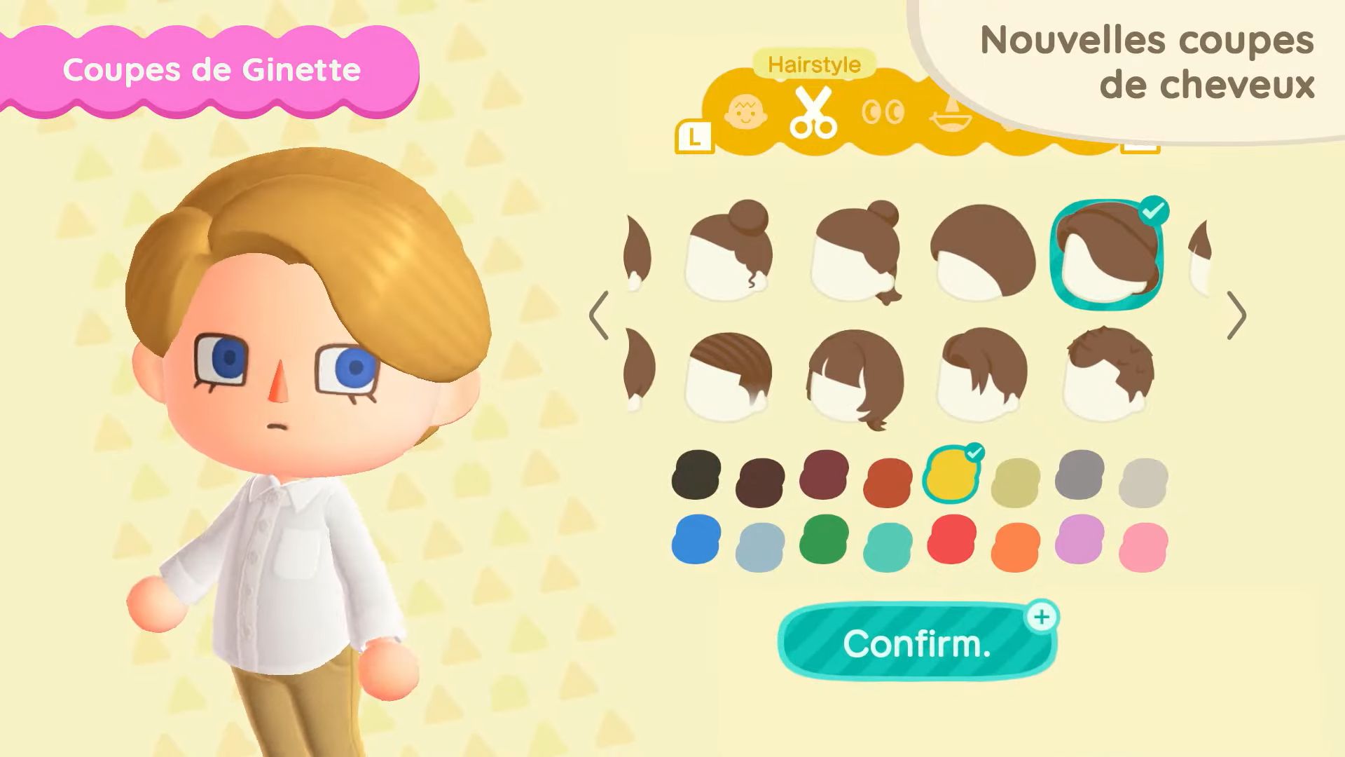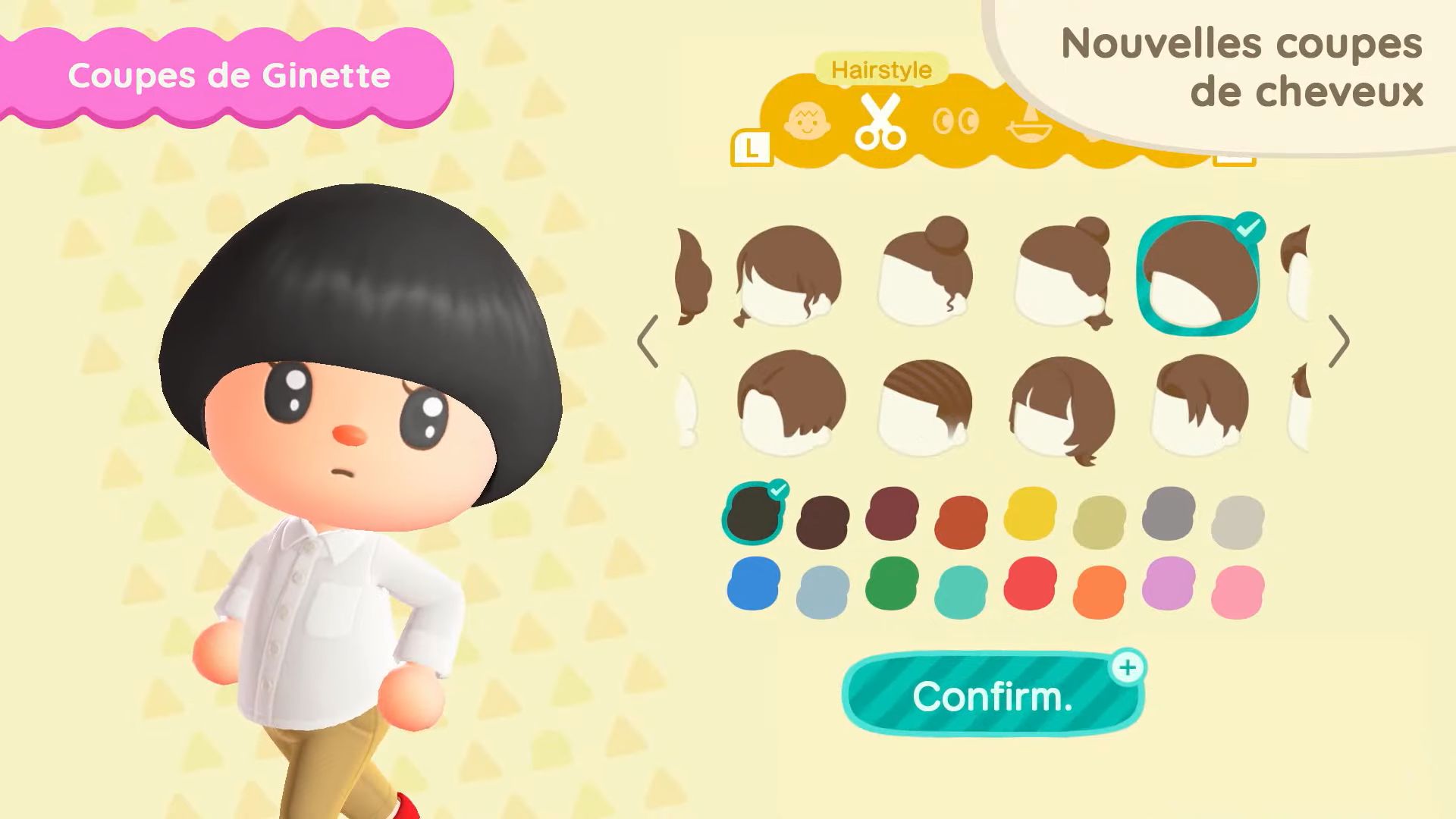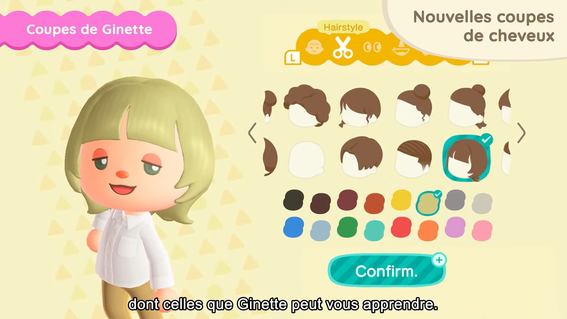 11 nouvelles coupes de cheveux seront également disponibles, dont celles que Ginette pourra nous apprendre. Il sera possible d’obtenir certaines coiffures en dehors du mini salon de Ginette sur l’île de Joe, en utilisant des miles Nook. On aura également accès à 11 nouvelles mimiques, notamment pour dire au revoir, s’étirer, profiter de la musique ou sourire.
