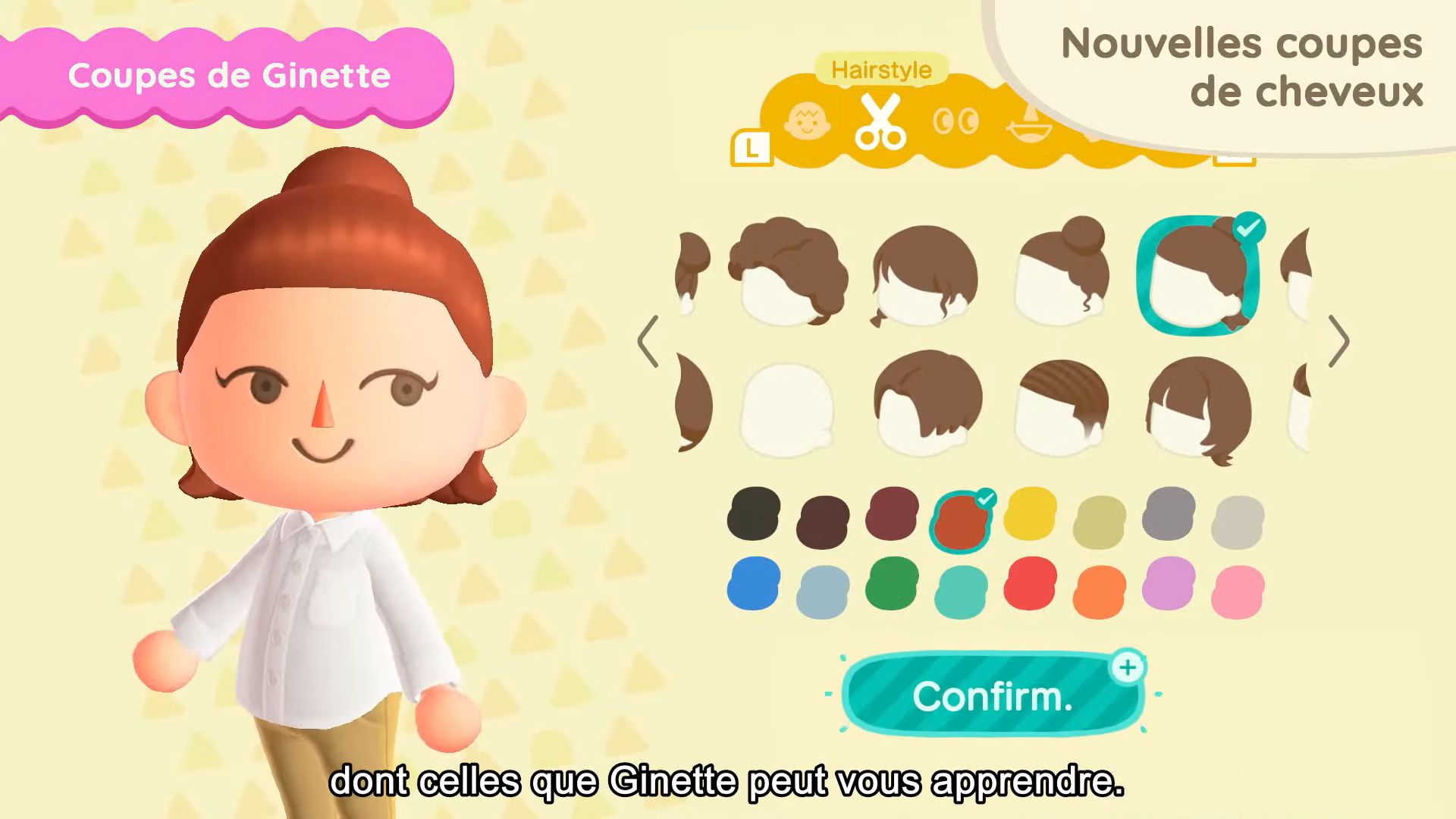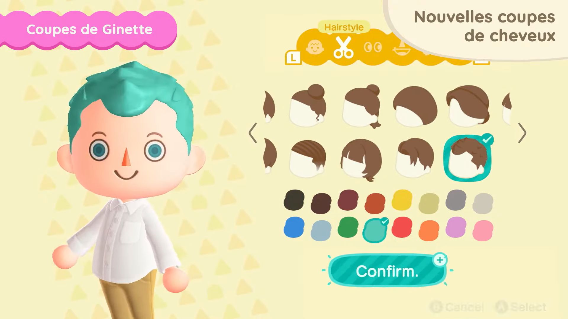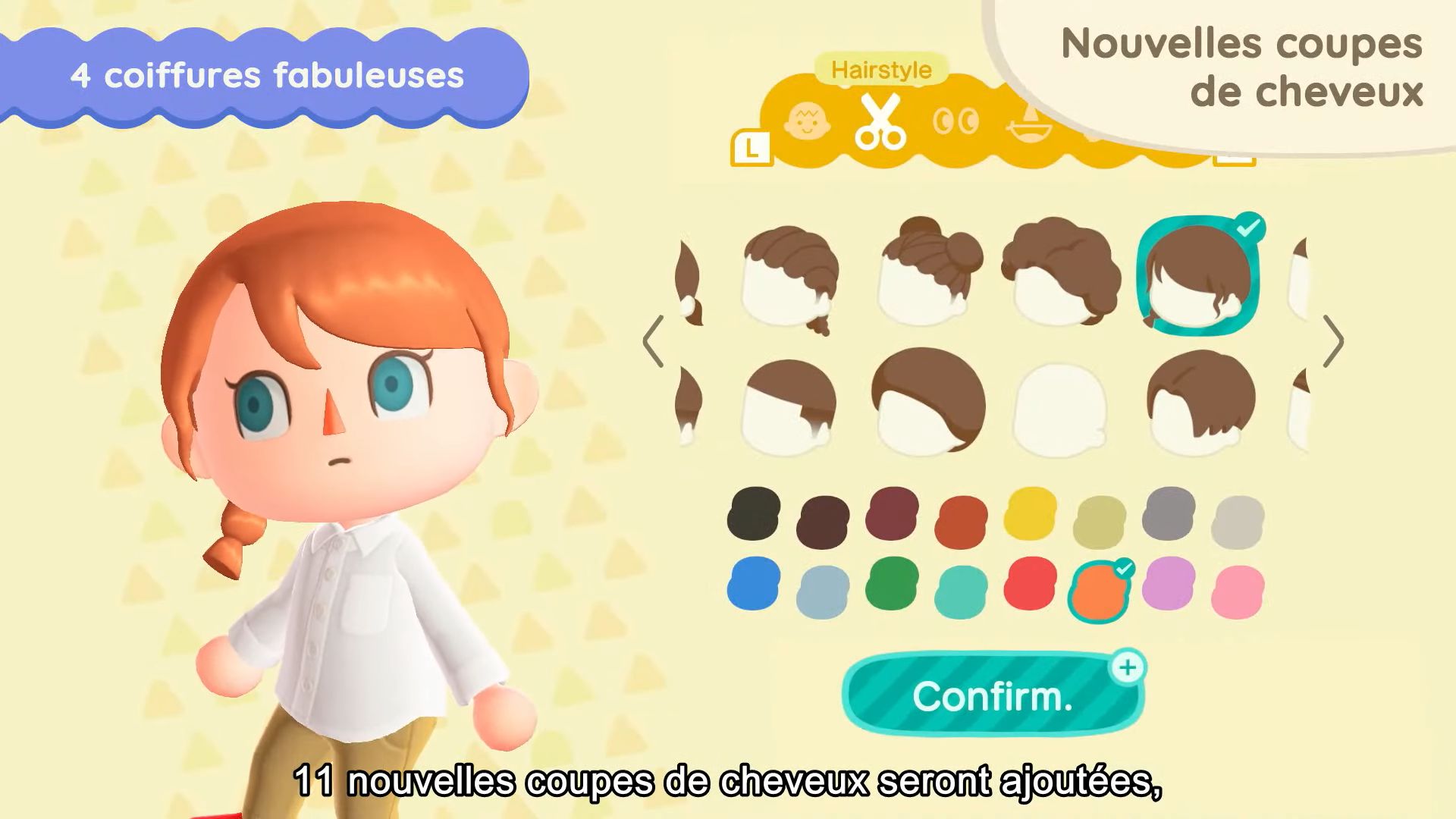 11 nouvelles coupes de cheveux seront également disponibles, dont celles que Ginette pourra nous apprendre. Il sera possible d’obtenir certaines coiffures en dehors du mini salon de Ginette sur l’île de Joe, en utilisant des miles Nook. On aura également accès à 11 nouvelles mimiques, notamment pour dire au revoir, s’étirer, profiter de la musique ou sourire.