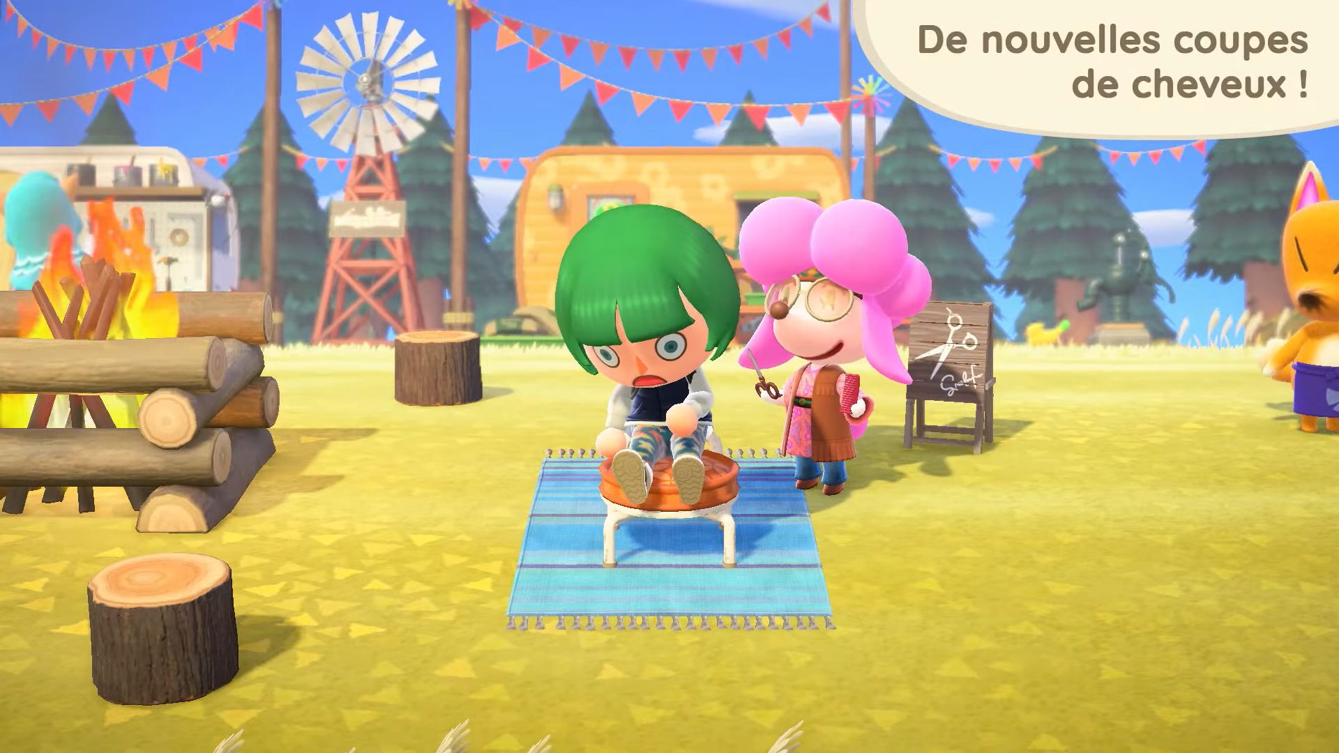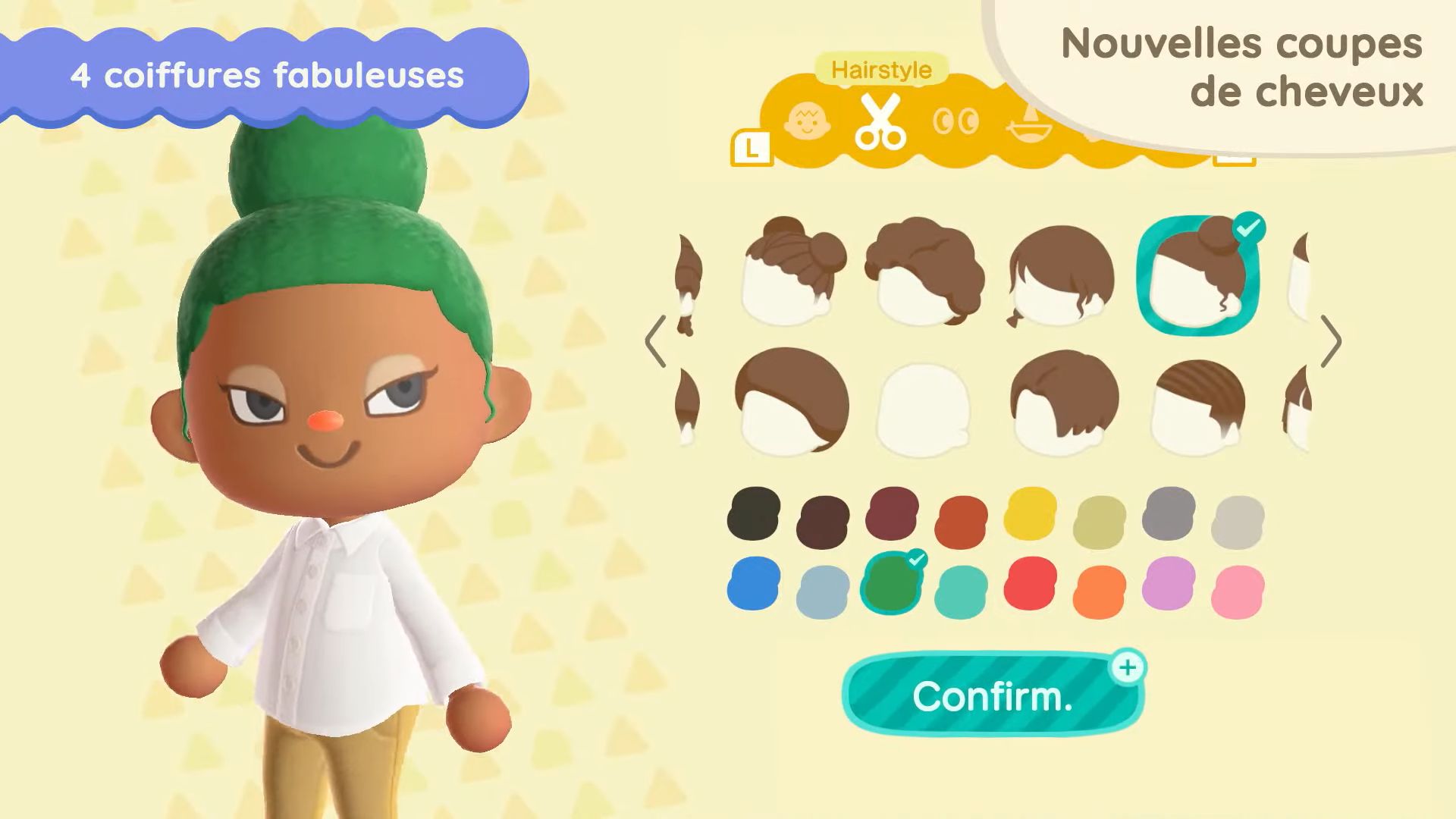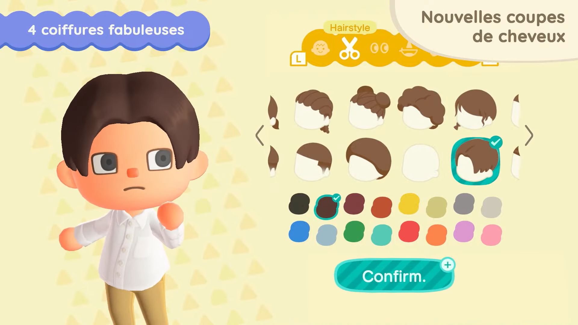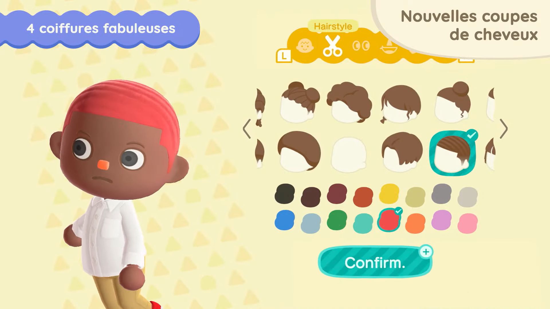 11 nouvelles coupes de cheveux seront également disponibles, dont celles que Ginette pourra nous apprendre. Il sera possible d’obtenir certaines coiffures en dehors du mini salon de Ginette sur l’île de Joe, en utilisant des miles Nook. On aura également accès à 11 nouvelles mimiques, notamment pour dire au revoir, s’étirer, profiter de la musique ou sourire.