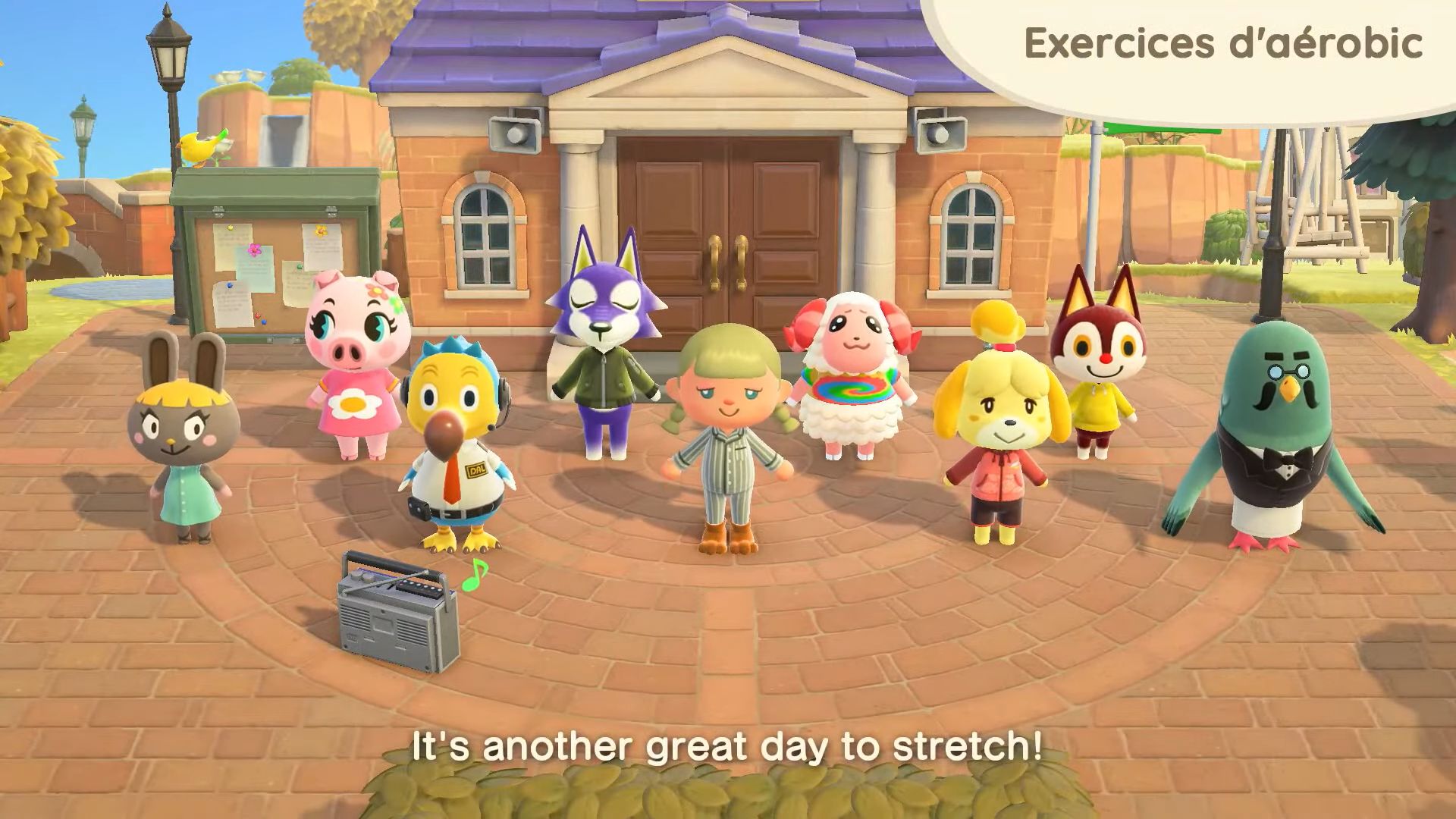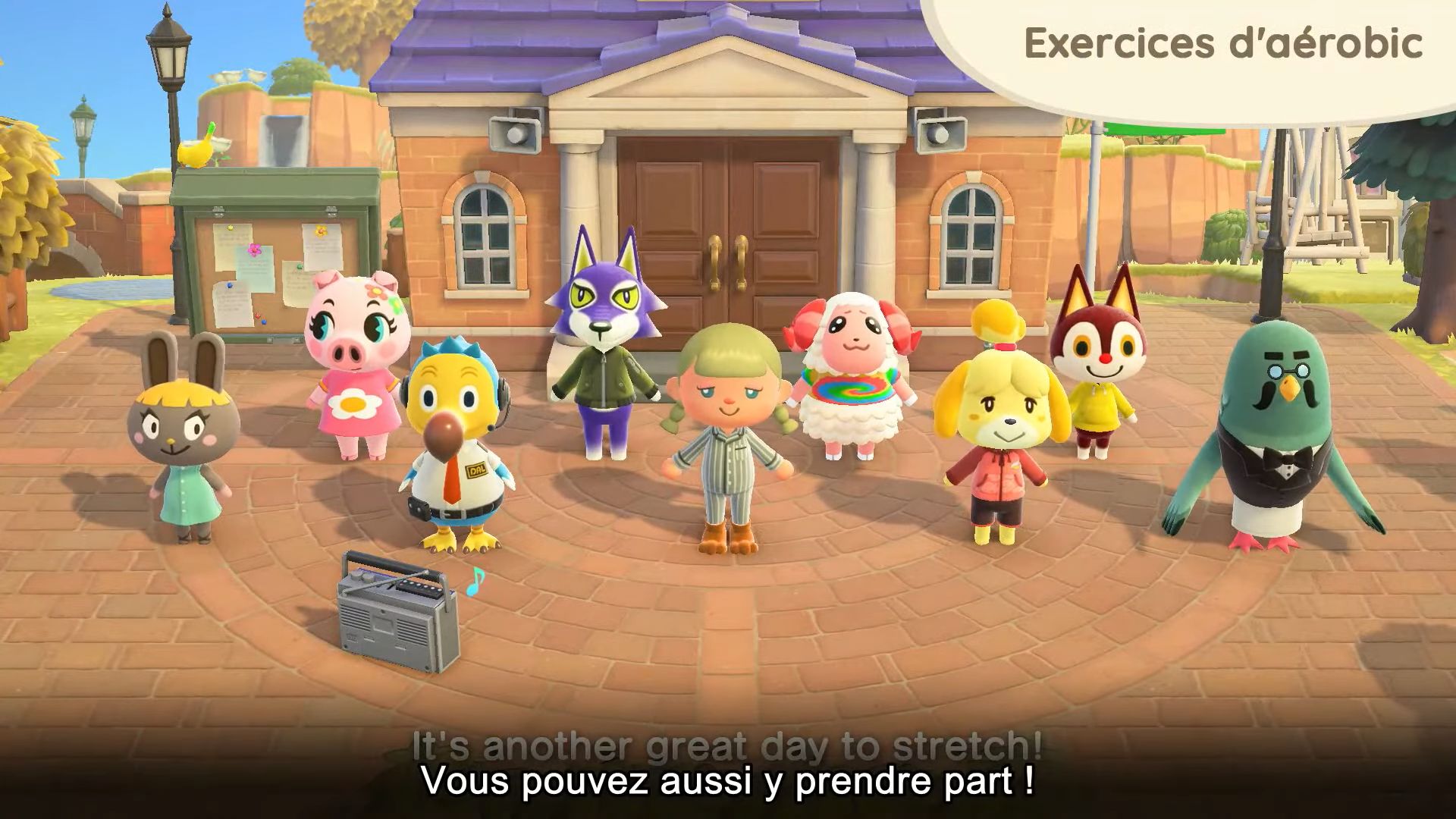 Retour sur l’île maintenant, avec l’arrivée d’exercices d’aérobic, jouables sur la place en groupe avec les habitants ou bien avec d’autres joueurs. Ils font forcément un peu penser à Ring Fit Adventure ou à d’autres jeux sportifs, puisqu’il sera possible d’utiliser les commandes par mouvements des manettes Joy-Con en plus des boutons.