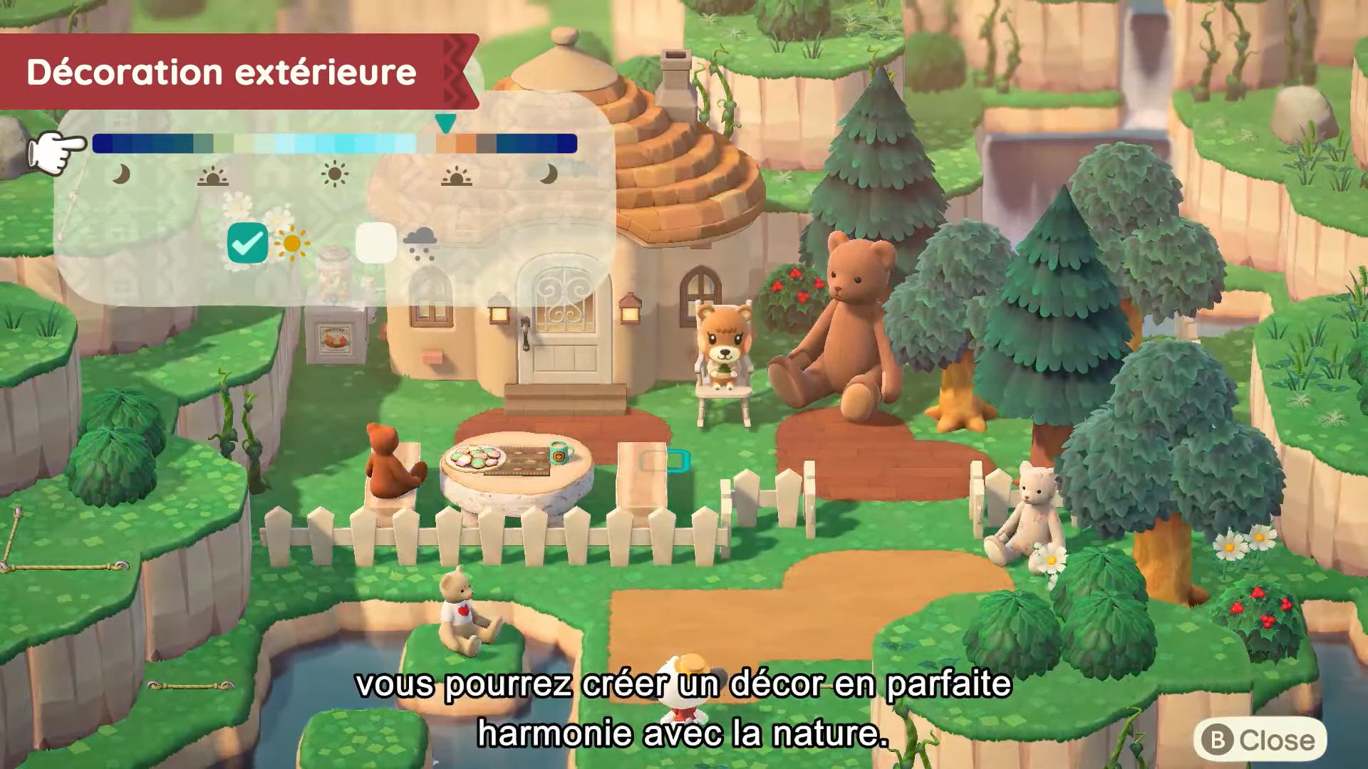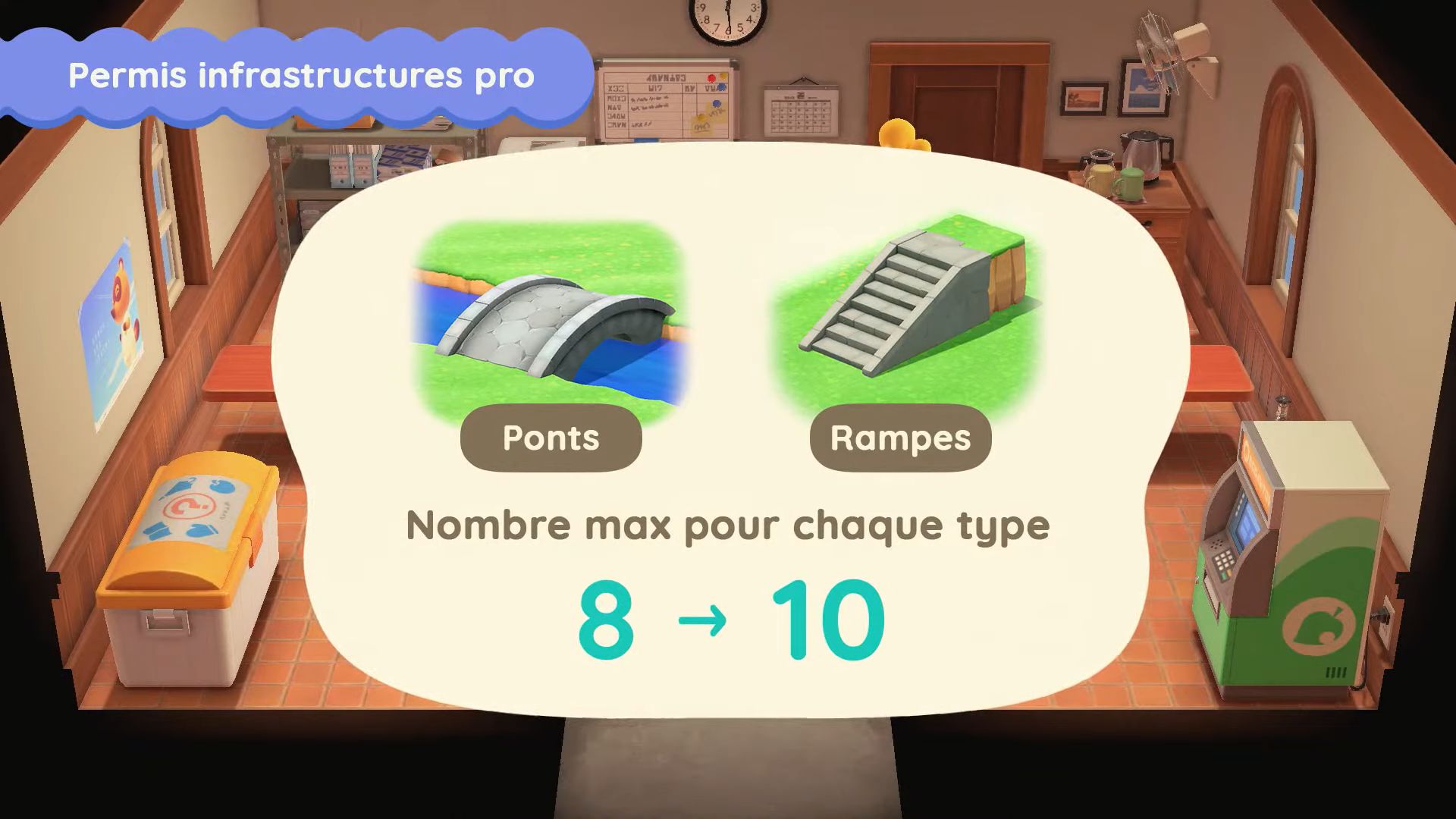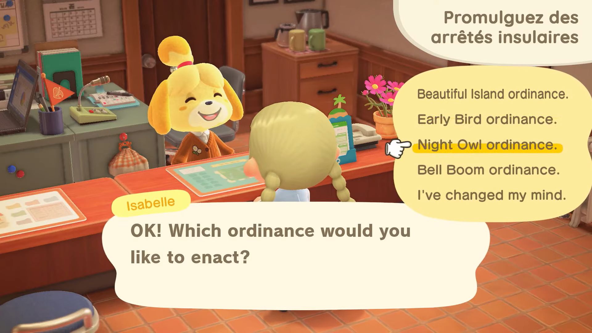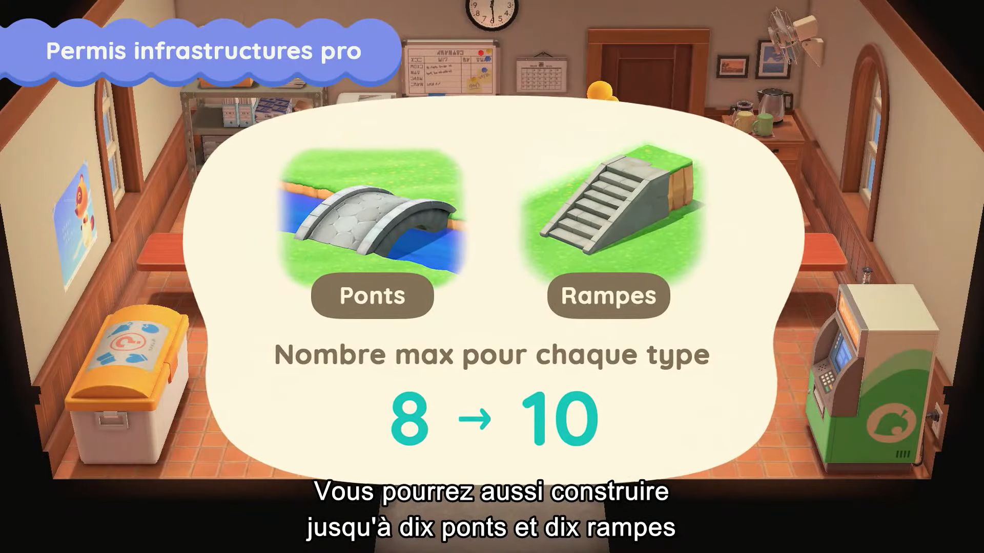 On arrive à la moitié des nouveautés désormais, avec les arrêtés, inspirés de ceux décidés par le maire (notre joueur) dans New Leaf. En allant voir Marie, on pourra donc choisir entre divers arrêtés, dont celui du lever matinal pour que tous les villageois se réveillent plus tôt dans la journée, ou encore celui qui permettra de ralentir la prolifération des mauvaises herbes. Il y aura aussi de nouveaux services liés à la maison chez Tom Nook. Il y aura enfin de nouvelles options de décoration extérieures, ce qui permettra d’assortir encore plus notre maison à l’île.