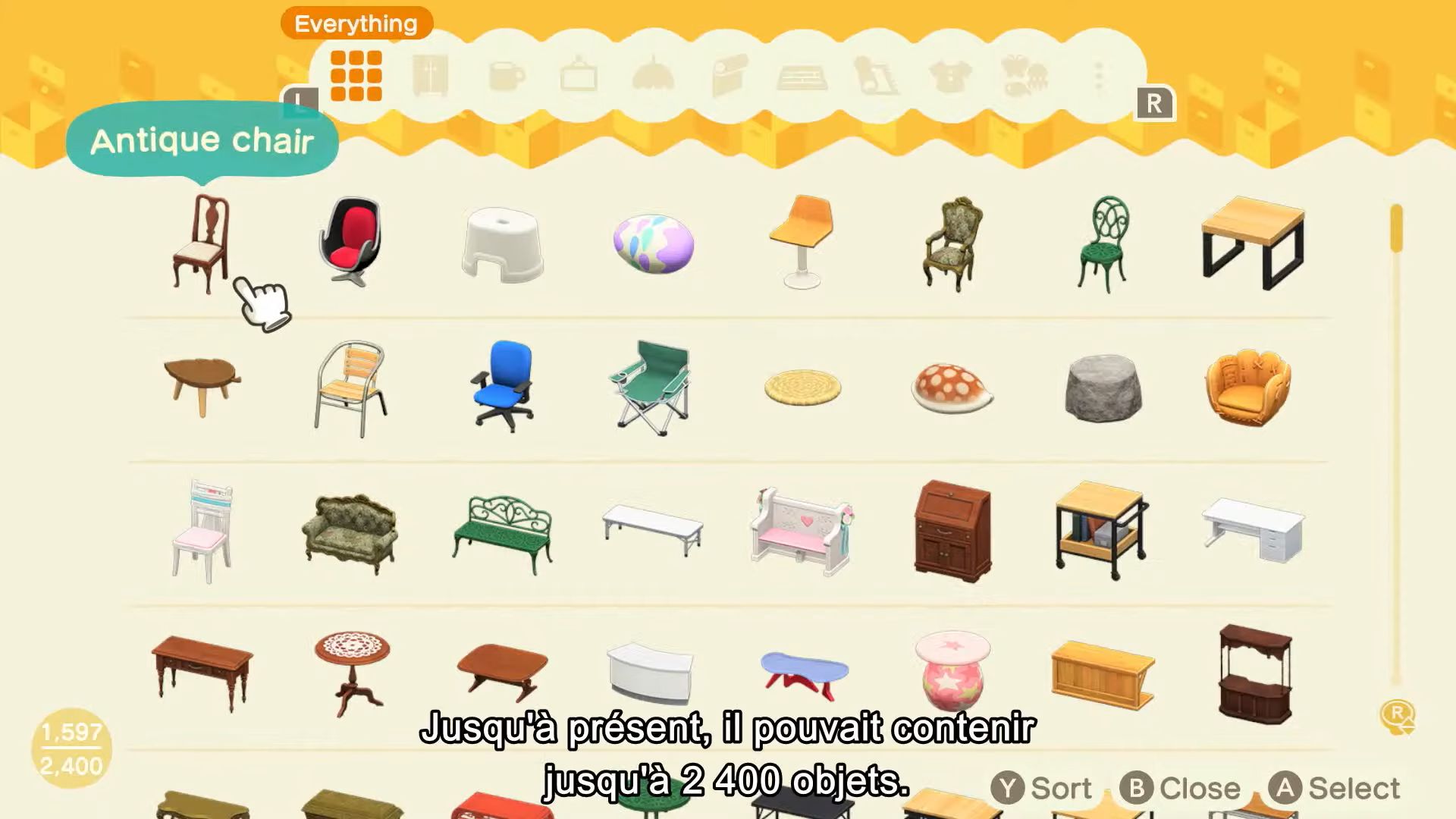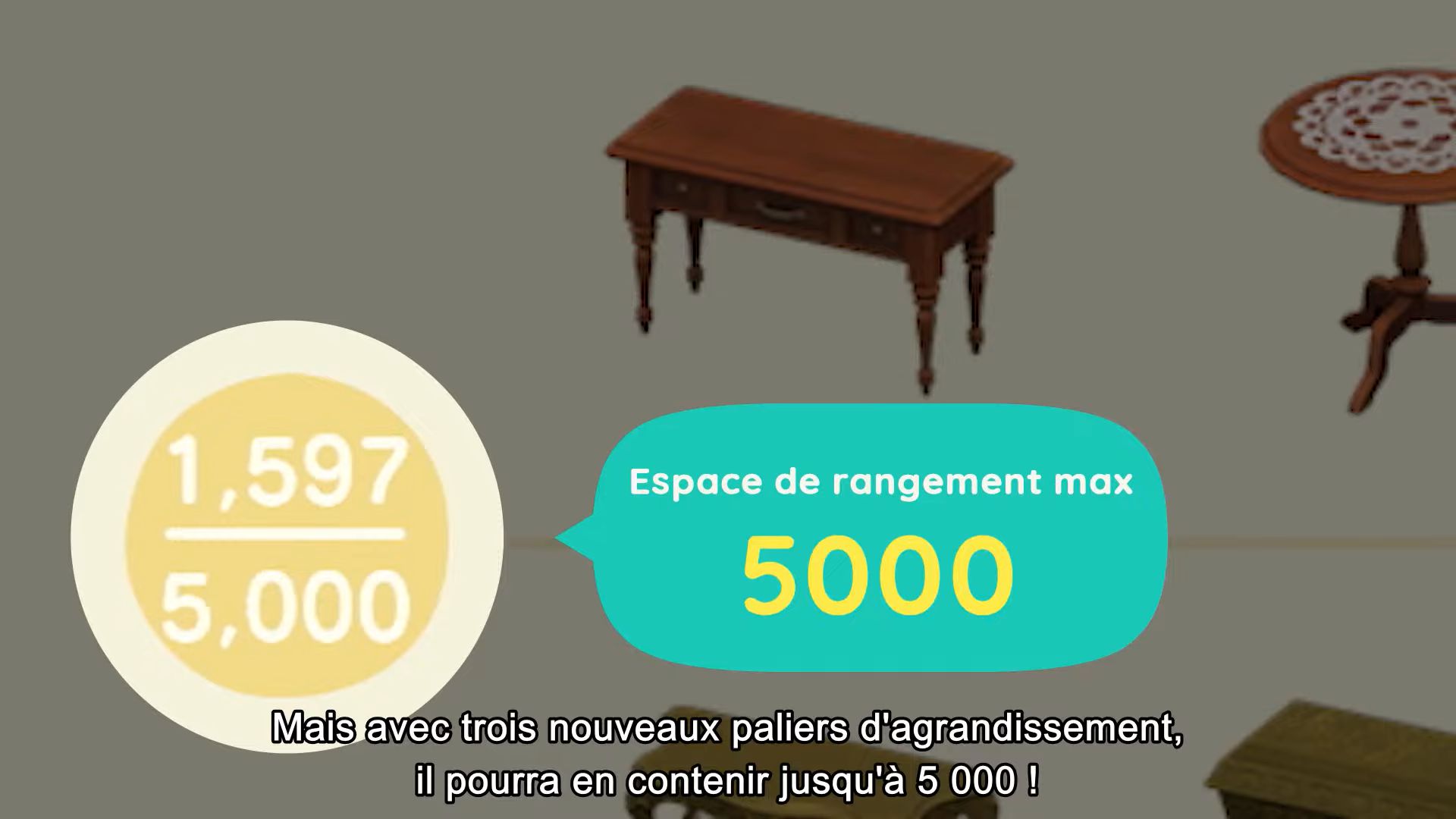 Autre nouveauté qui se faisait attendre : un agrandissement de l’espace de rangement. Avec la mise à jour, il y aura encore plus d’objets, et donc beaucoup à stocker. Le maximum proposé grâce à une autre mise à jour était de 2 400 objets. Avec la mise à jour du 5 novembre, Tom Nook donnera accès à trois nouveaux paliers : 3200, 4000 et 5000. Il sera enfin possible de placer bien plus d’objets dans l’espace de rangement.
