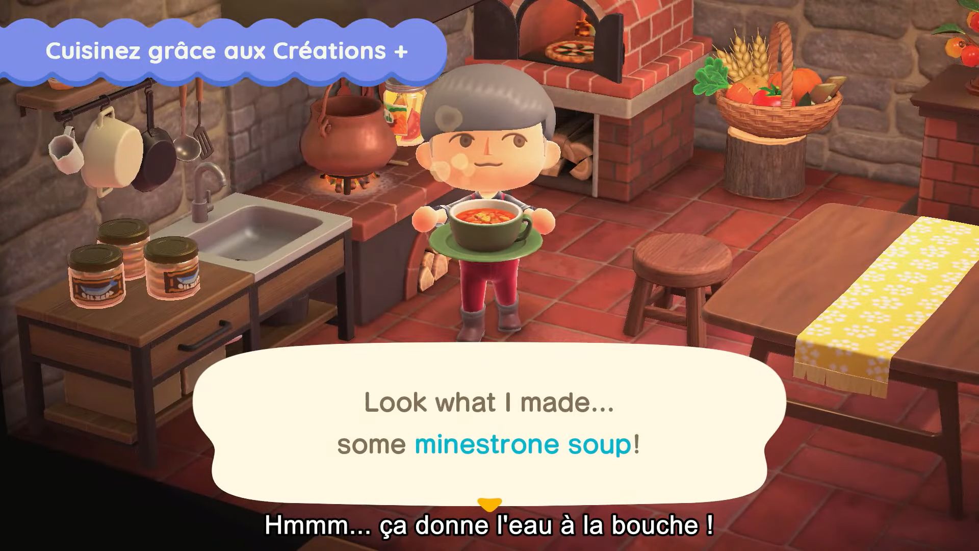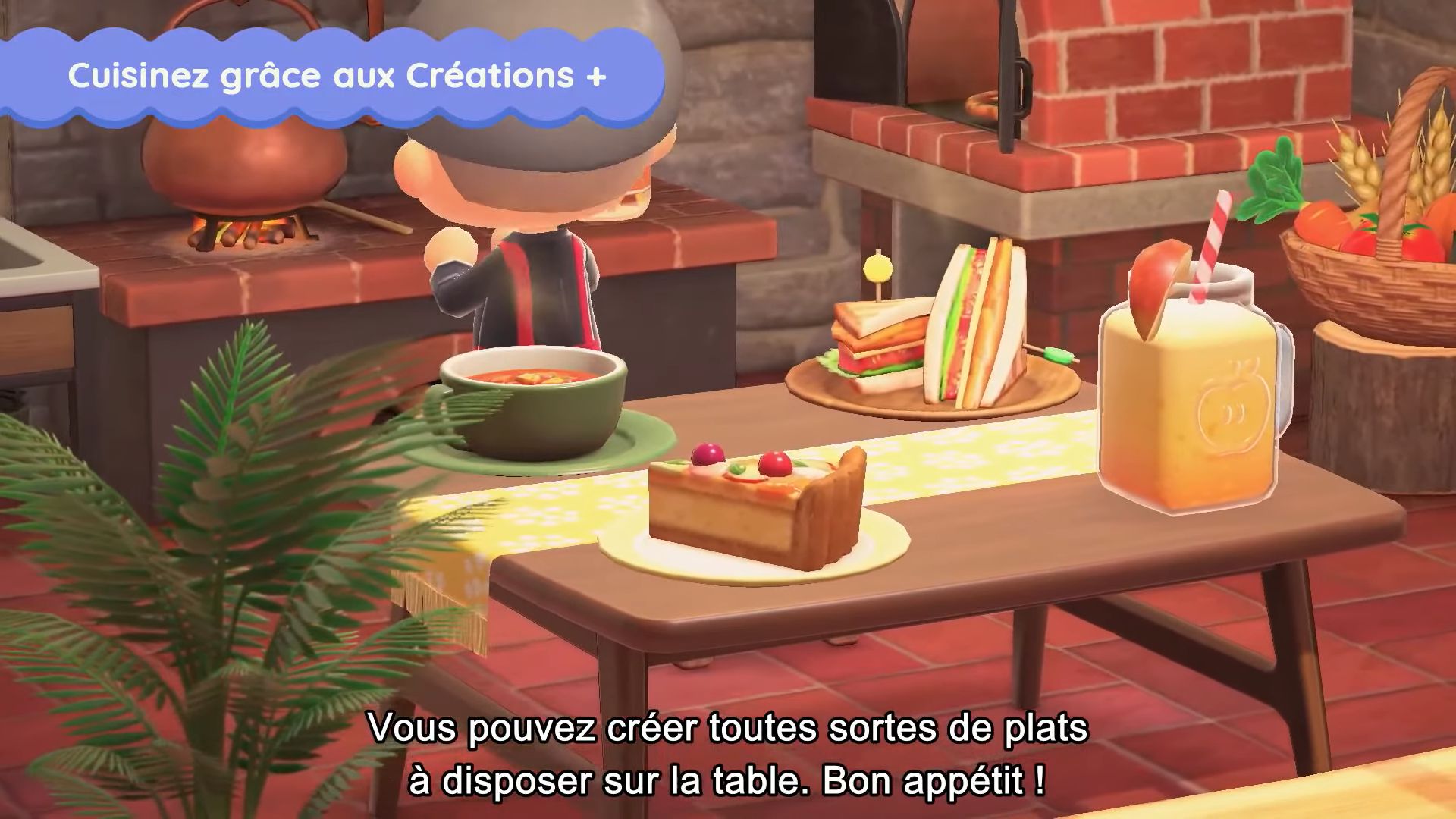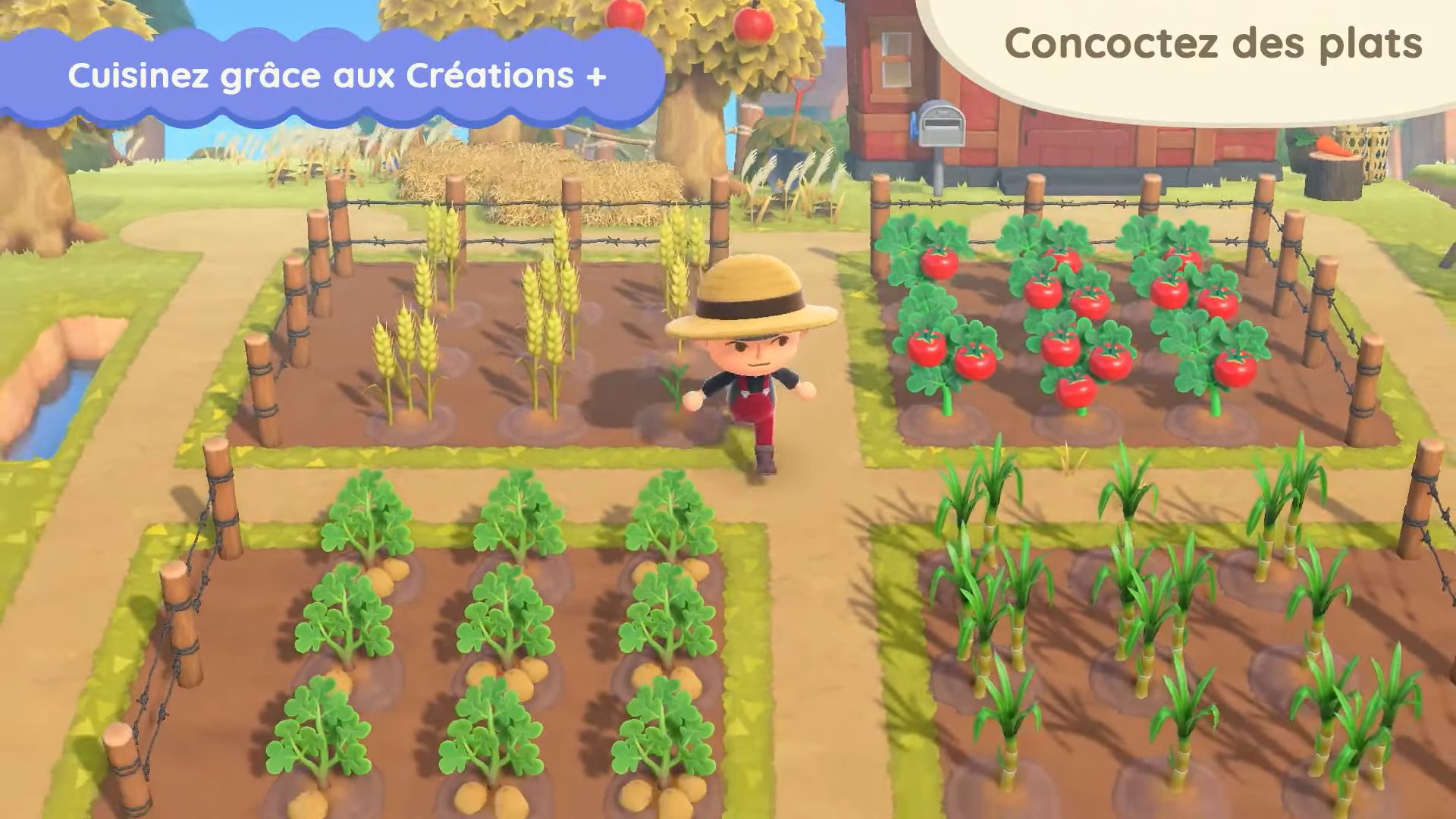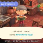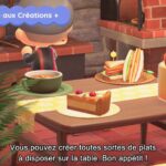 En parlant d’objets, il y en aura de nouveaux à échanger contre des miles Nook. Grâce aux Créations +, on trouvera des recettes de cuisine. La mise à jour apportera en effet divers ingrédients comme des tomates, du blé, de la canne à sucre, des pommes de terre, des carottes et bien plus. Une fois récoltées, il faudra voir les recettes et cuisiner des plats comme on fabrique des objets après l’obtention de Créations + grâce aux miles Nook, mais en utilisant cette fois-ci des objets prévus à cet effet comme une marmite. Les plats pourront ensuite être disposés partout et bien sûr être mangés. Pour cuisiner, il faudra combiner des aliments entre eux ou avec d’autres ingrédients. Il y aura aussi des boissons.