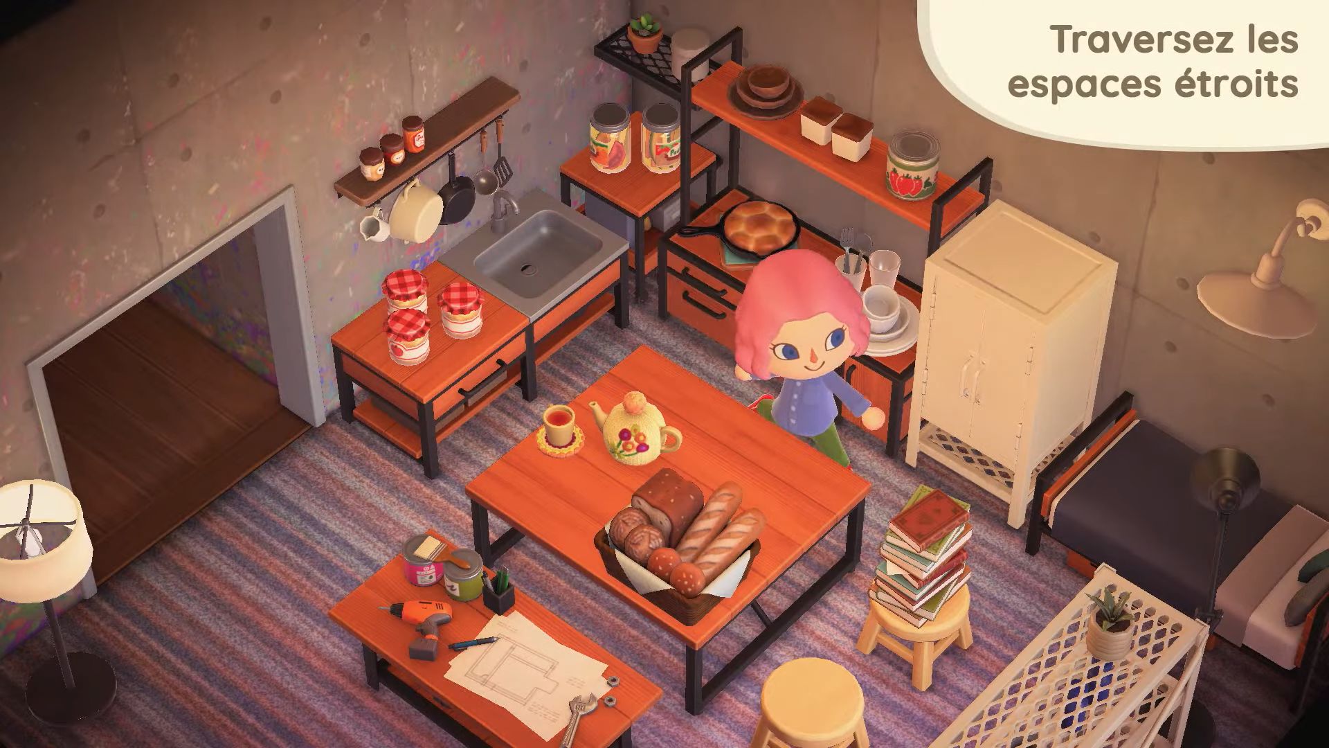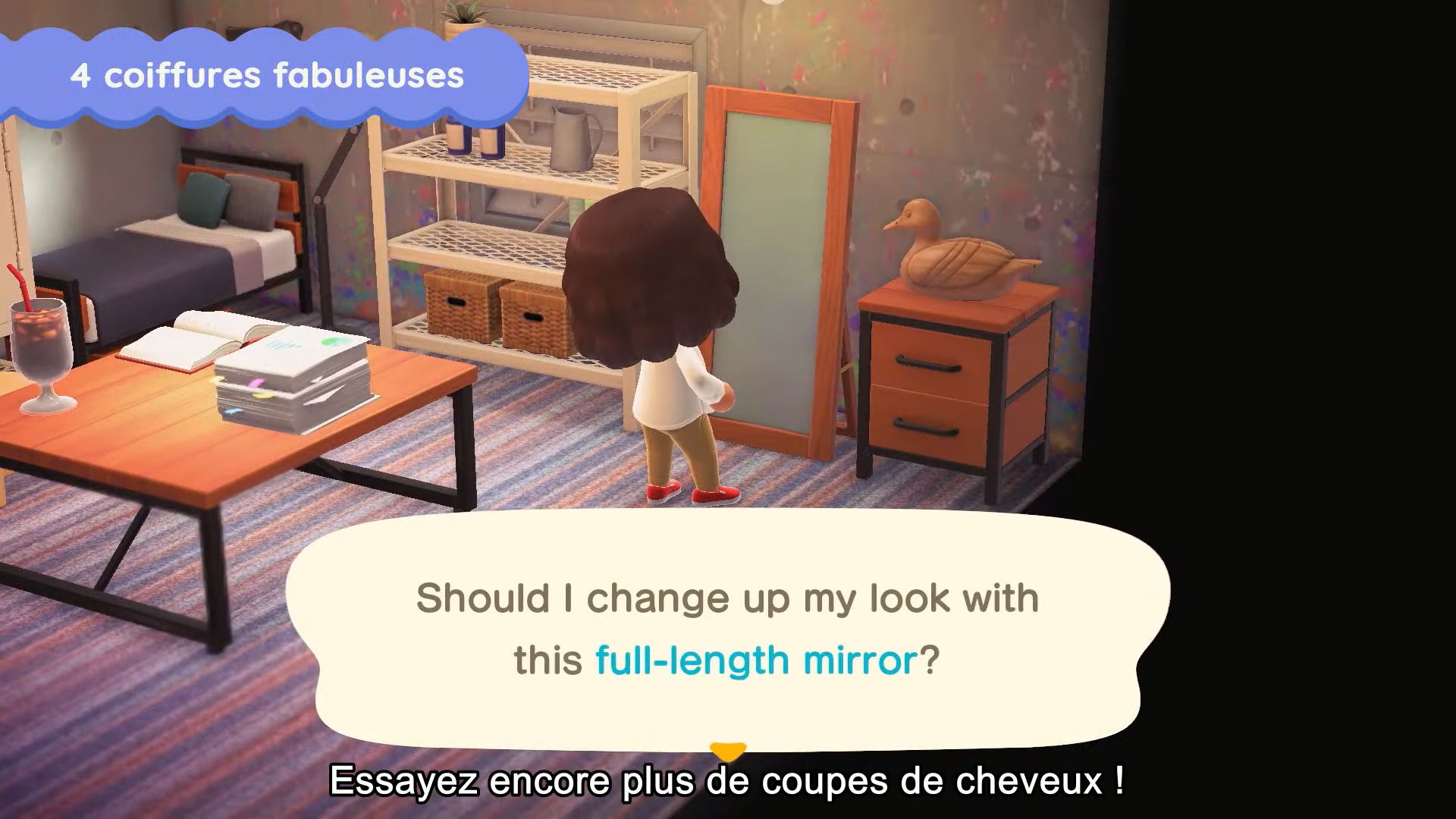 D’autres personnages seront de la partie, comme Astrid et son cabinet de voyance qui nous révélera ce que la journée nous réserve (et peut-être d’autres surprises non annoncées) ou encore Tortimer (qui n’est pas mort, contrairement à ce que l’on pouvait penser). Bien que l’utilité d’Astrid reste encore à prouver, Tortimer sera bel et bien de notre côté et nous permettra de placer des choses dans notre espace de rangement sans avoir à retourner sur notre île (avec également la possibilité de retirer des objets de l’espace de rangement). Quant à Ginette, son mini salon de coiffure nous permettra d’apprendre de nouvelles coupes de cheveux.