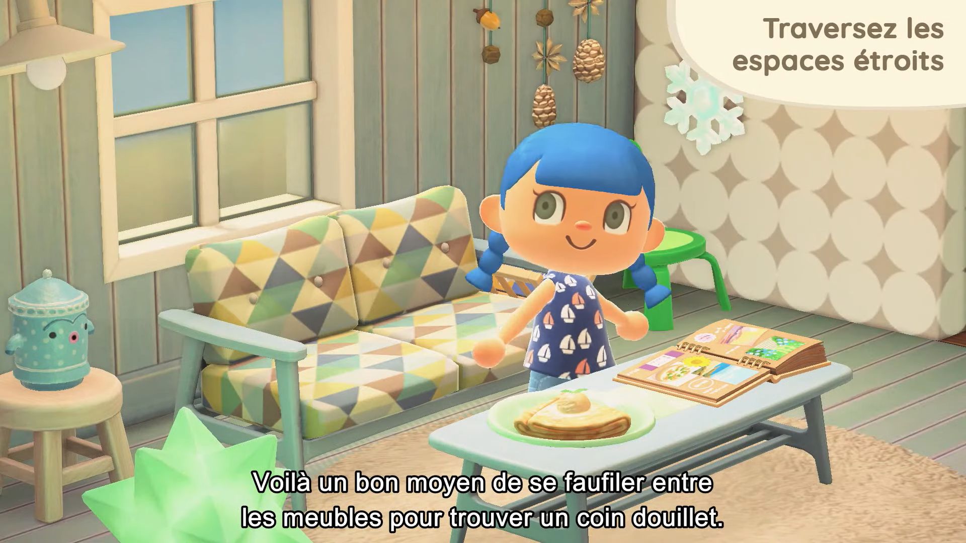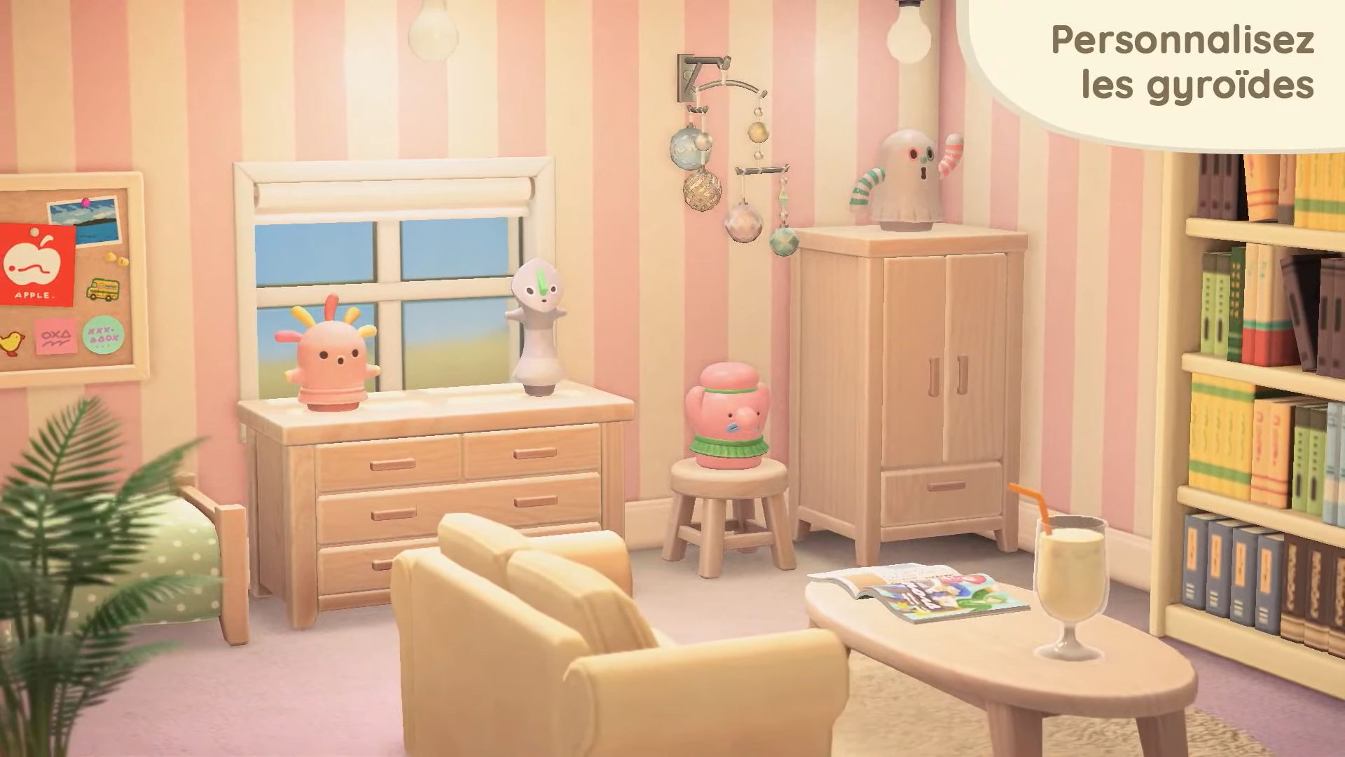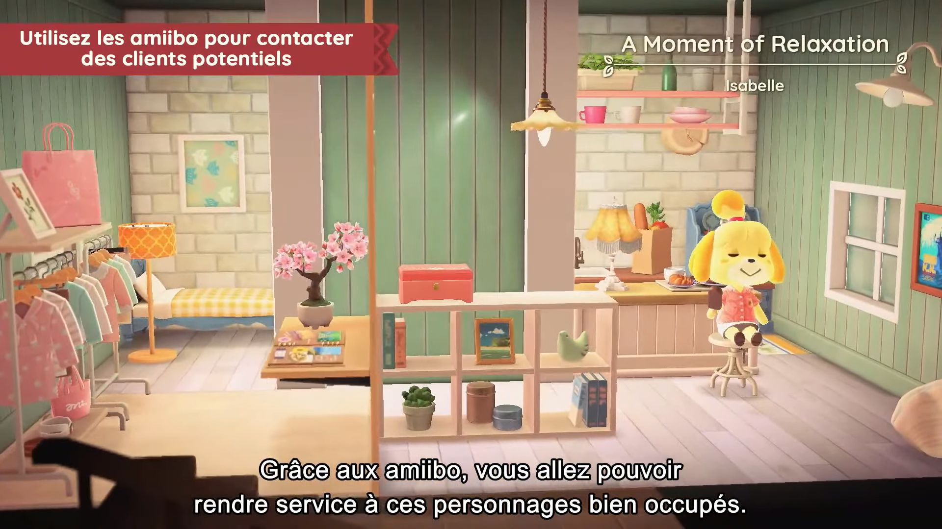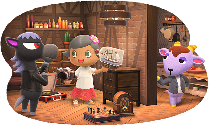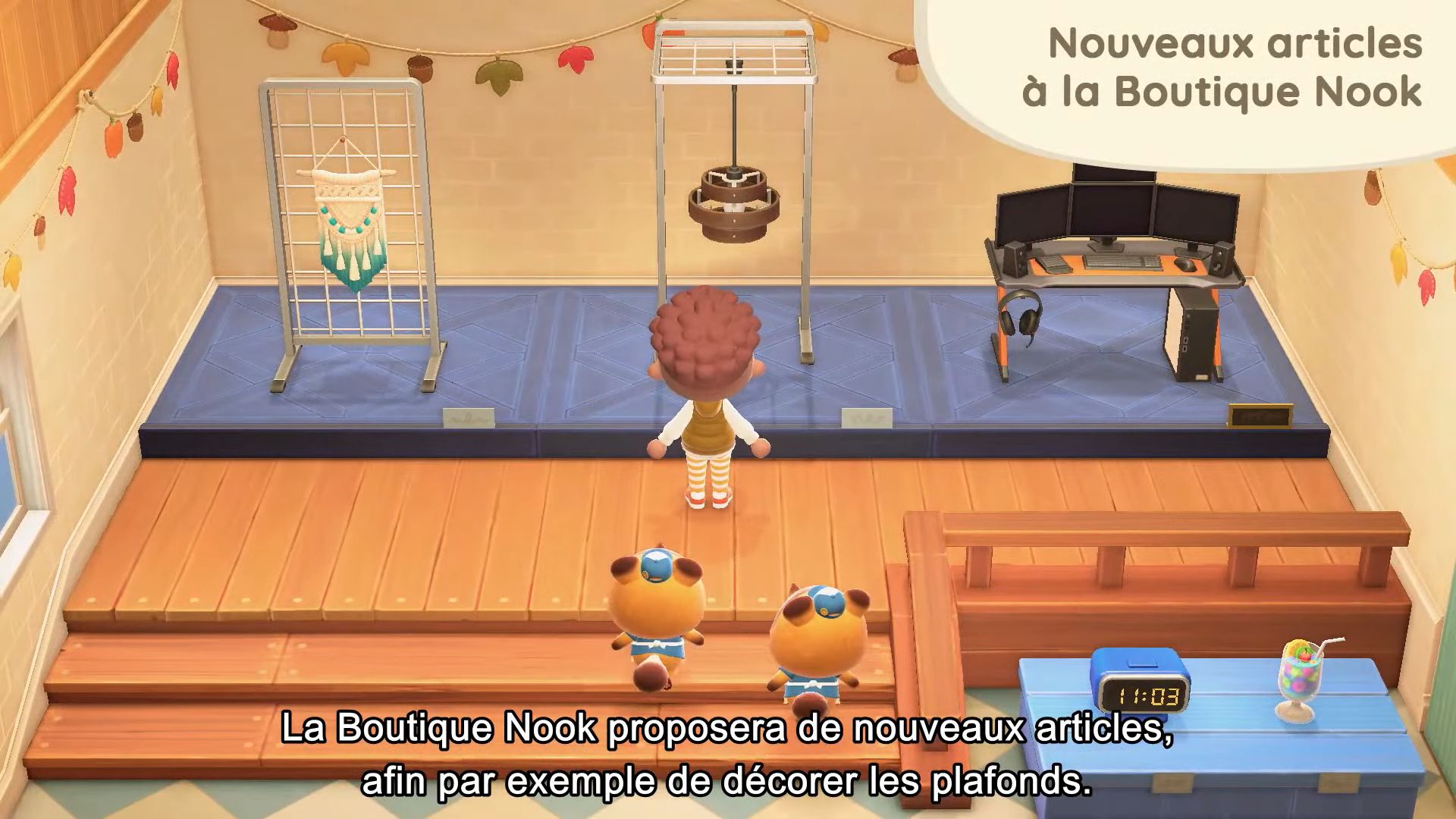 Pour revenir aux objets à accrocher au plafond, ils seront complètement nouveaux, et il sera possible d’en acheter à la Boutique Nook. Il y aura aussi d’autres objets inédits, également proposés à la boutique.