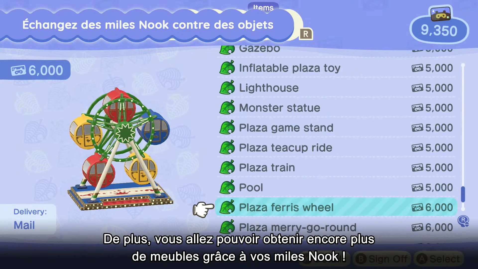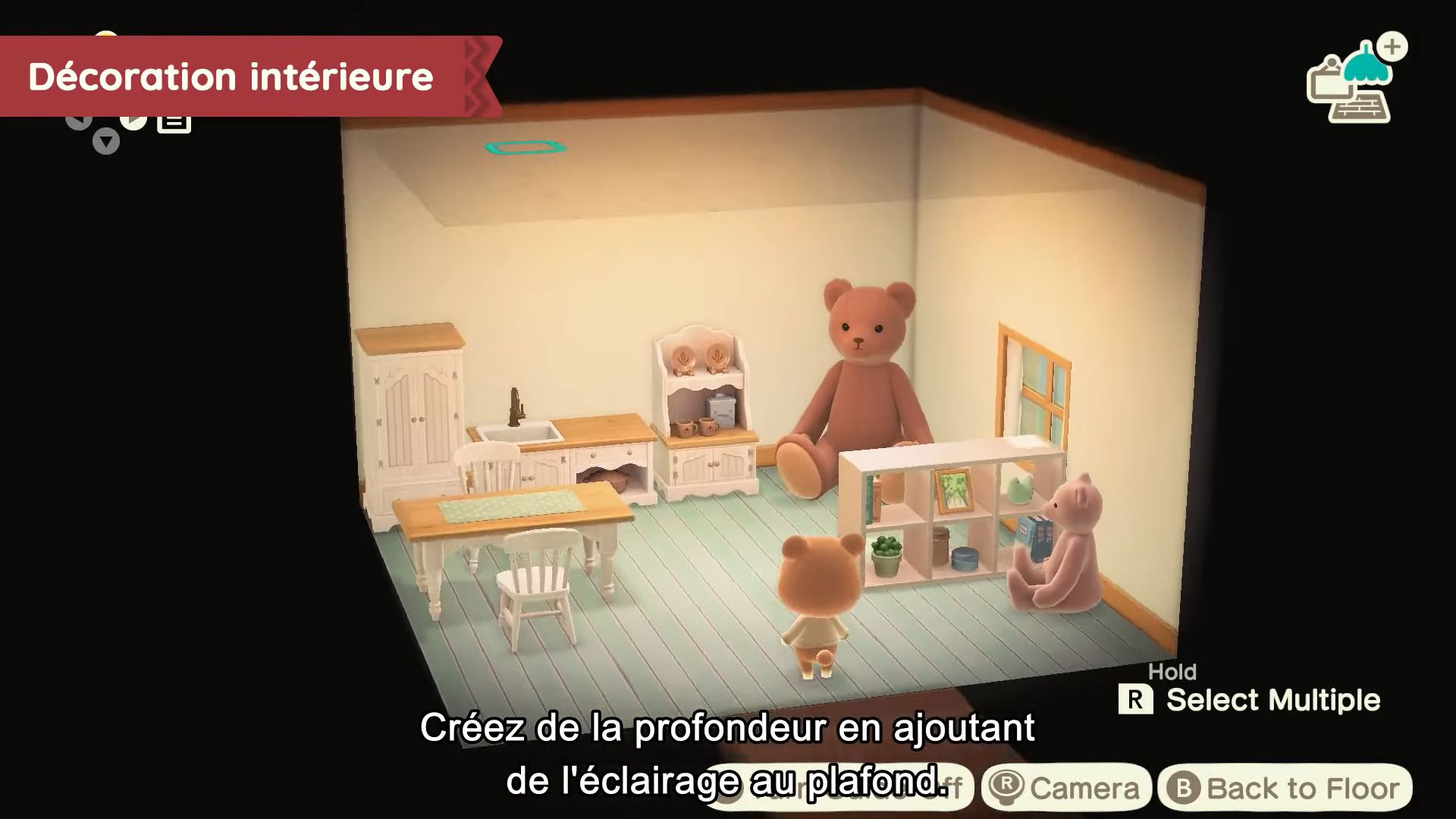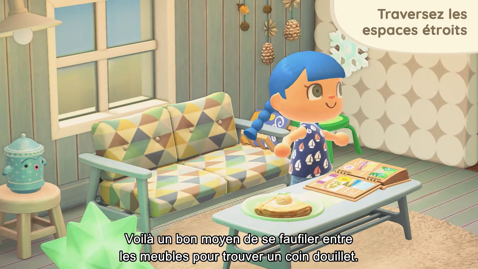 Pour revenir aux objets à accrocher au plafond, ils seront complètement nouveaux, et il sera possible d’en acheter à la Boutique Nook. Il y aura aussi d’autres objets inédits, également proposés à la boutique.