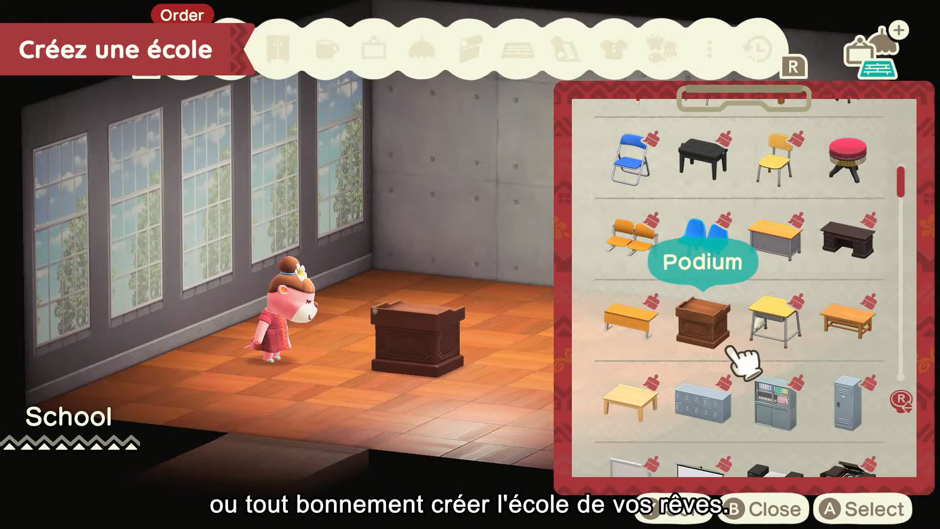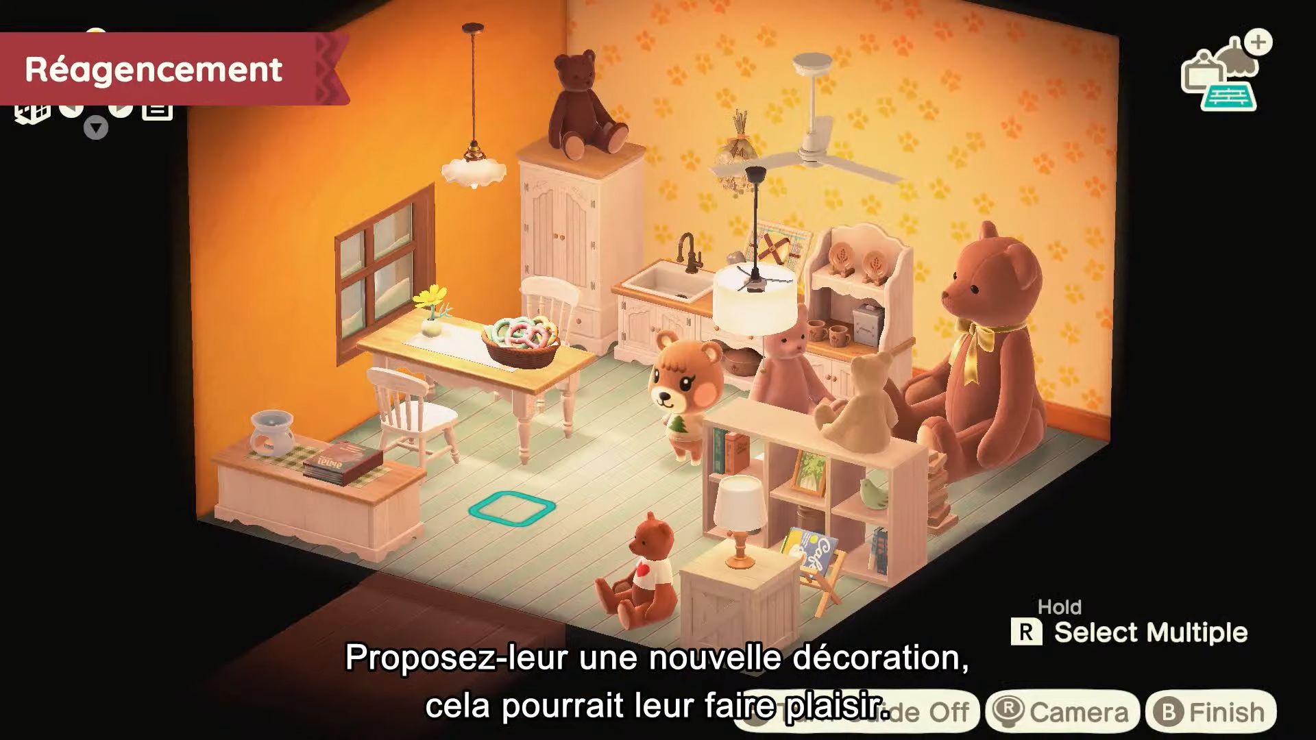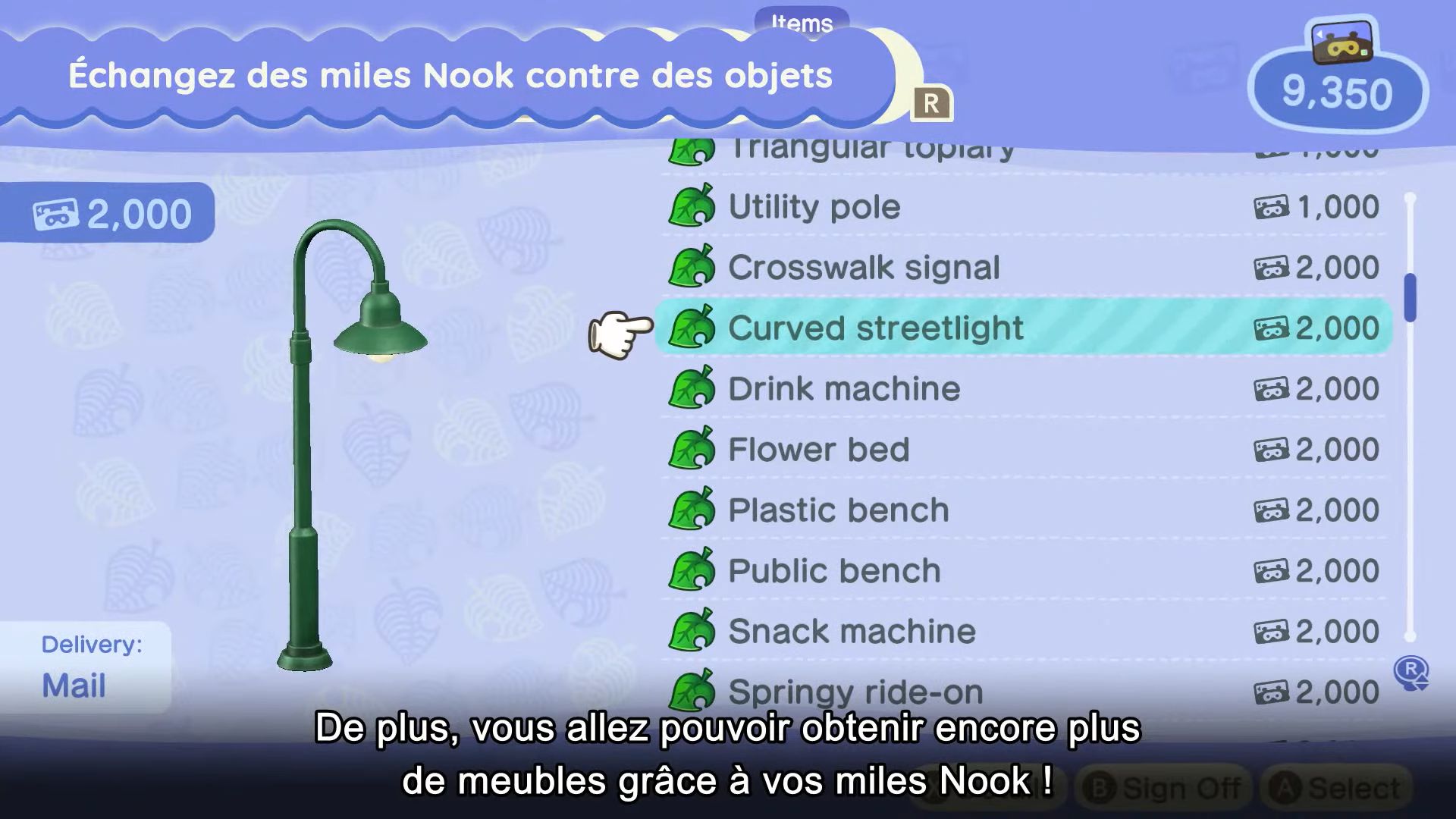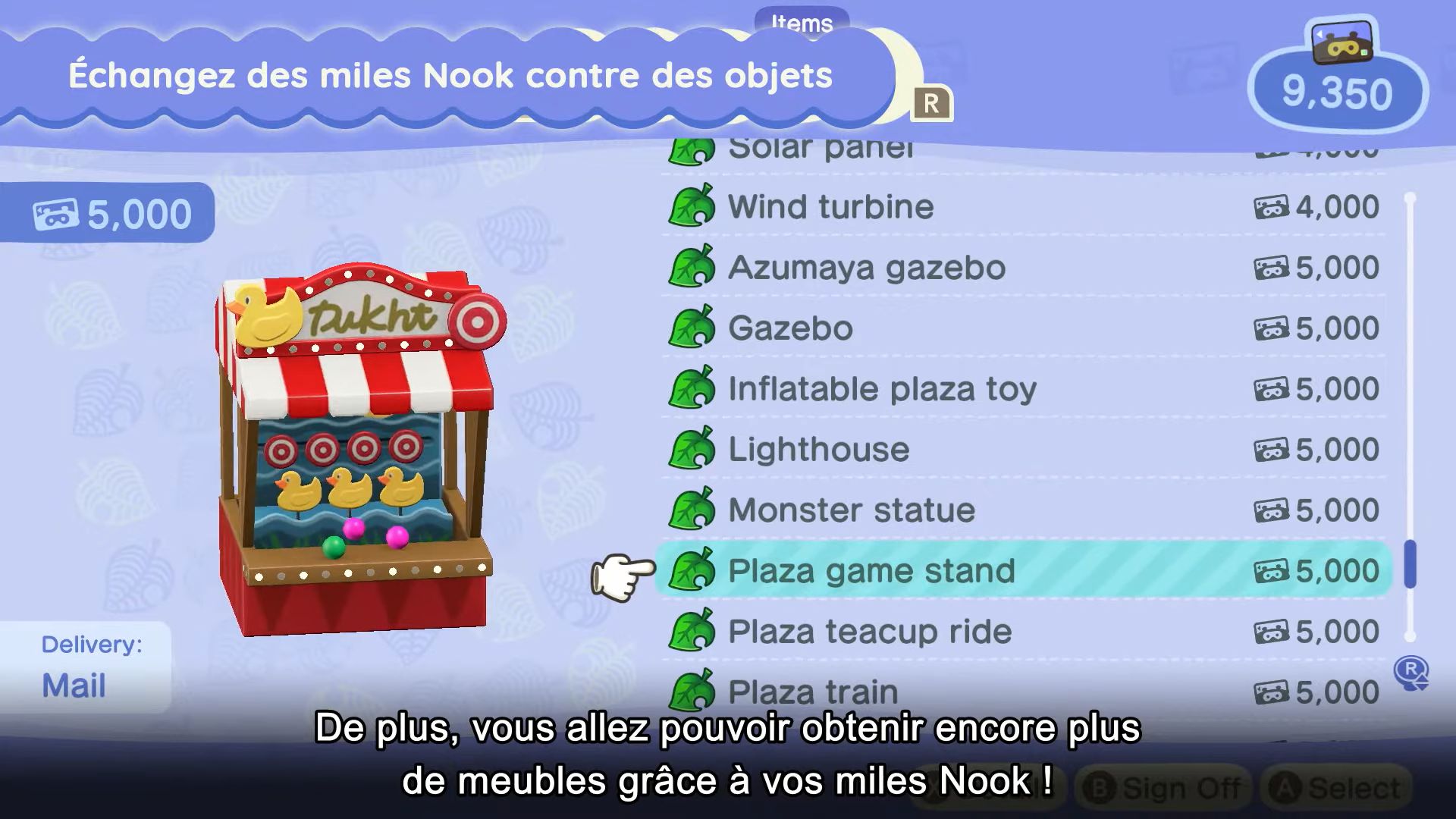 Pour revenir aux objets à accrocher au plafond, ils seront complètement nouveaux, et il sera possible d’en acheter à la Boutique Nook. Il y aura aussi d’autres objets inédits, également proposés à la boutique.