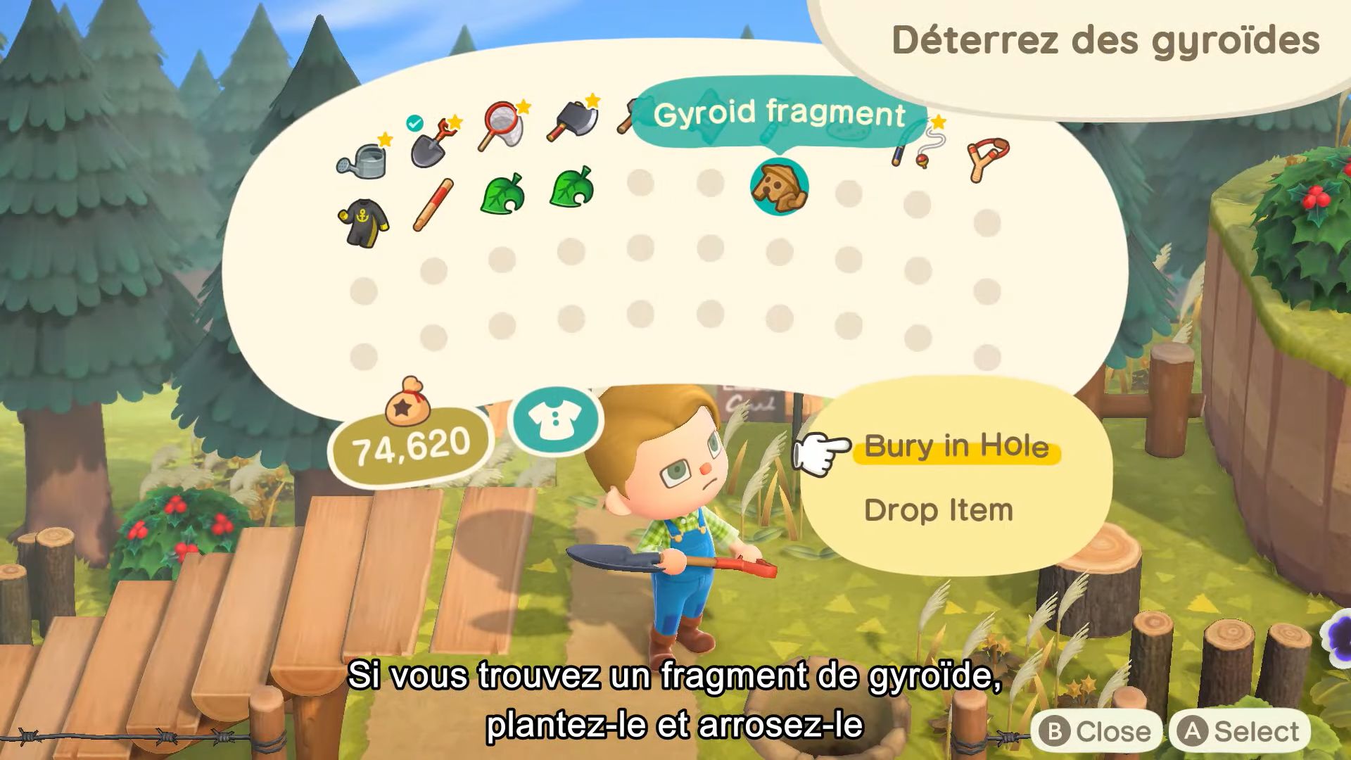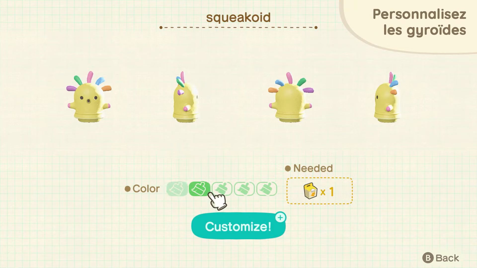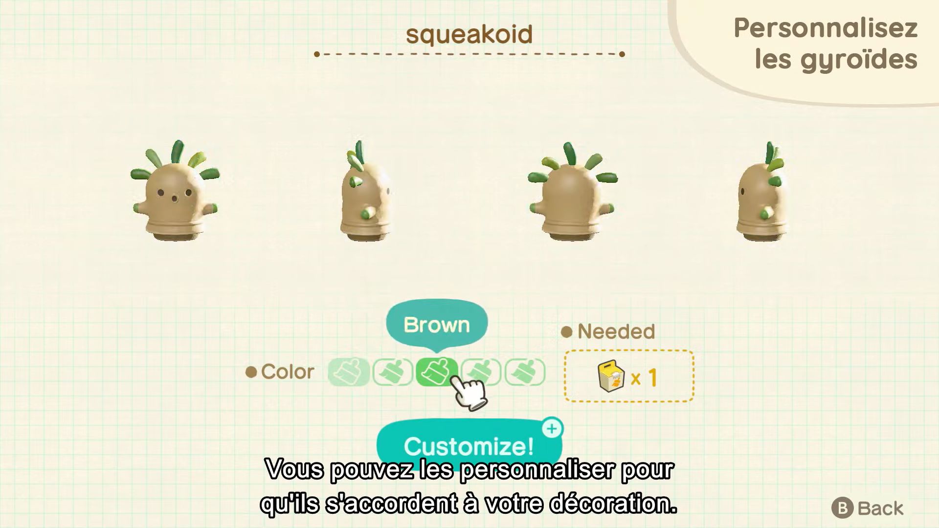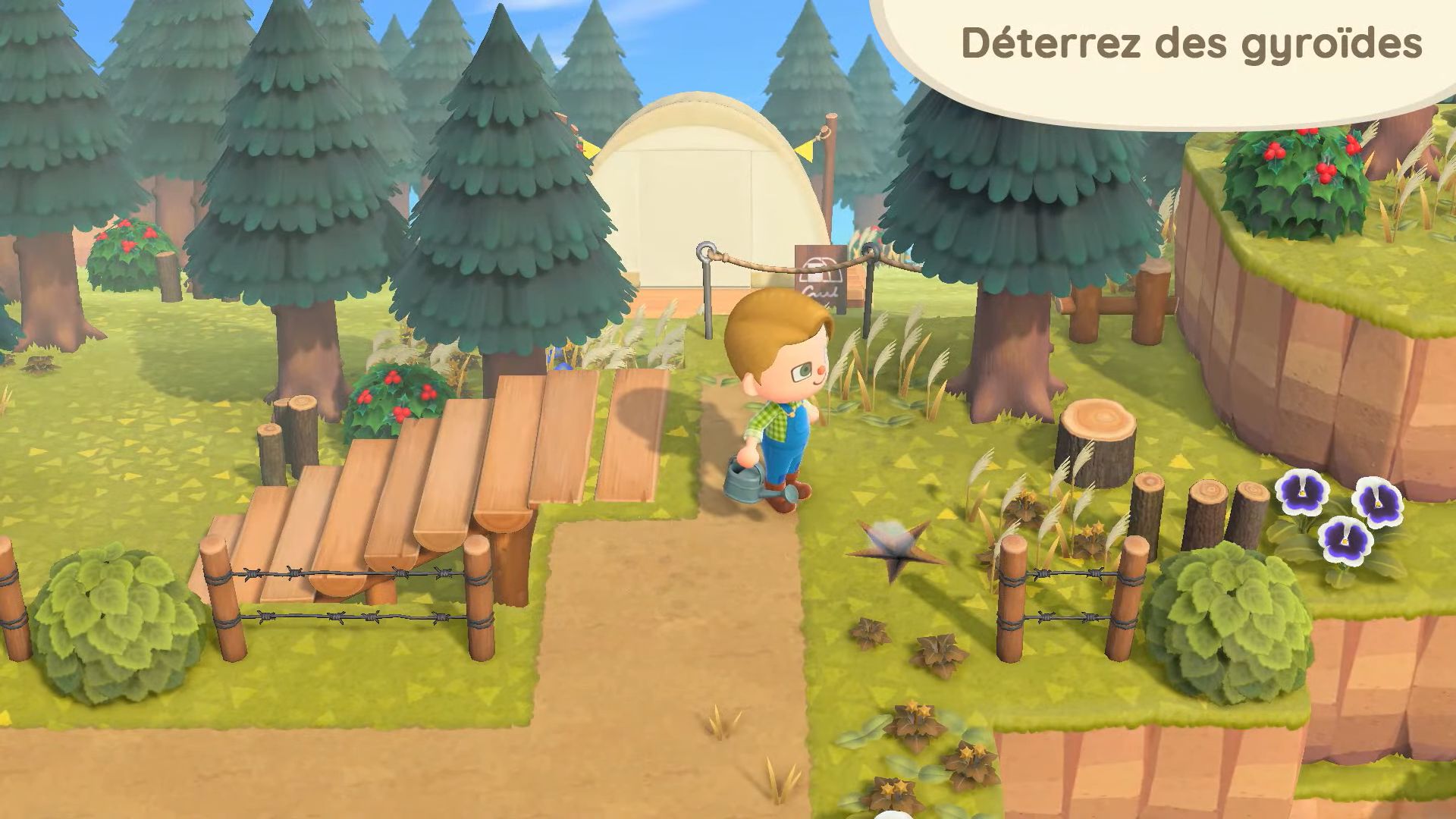 On parlait de gyroïdes un peu plus haut, ils seront aussi de retour dans la nature, comme dans les anciens jeux de la série. On les trouvera par hasard sur l’île, enterrés comme des fossiles. On trouvera aussi des fragments de gyroïde, qui une fois plantés puis arrosés donneront naissance à des gyroïdes le lendemain. De plus, si l’on trouve des gyroïdes sur notre île, on pourra en trouver de nouveaux au lendemain d’une averse. Certains gyroïdes seront complètement nouveaux et émettront bien sûr des sons une fois placés à la maison ou à l’extérieur. Vu que le son a été considérablement amélioré dans New Horizons, on pourra essayer différentes combinaisons pour que les gyroïdes jouent de la musique eux-mêmes, ce qui permettra de découvrir de nouvelles harmoniques. Les gyroïdes pourront même être personnalisés.