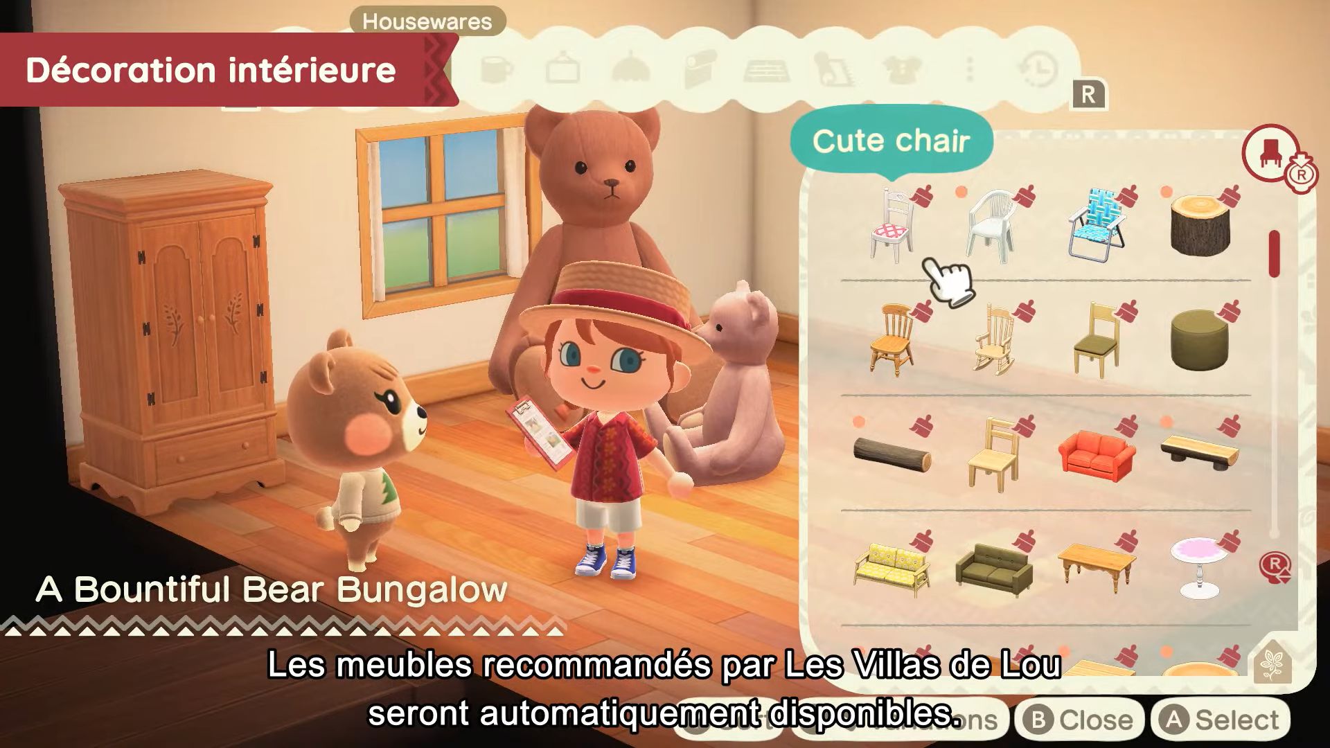 Les Villas de Lou, qu’est-ce que c’est ? Il s’agit d’une agence qui construit des maisons de vacances et les propose à leurs clients. En la rejoignant, on aura le rôle de donner forme aux maisons des personnages. Pour leur venir en aide, il faudra leur parler à l’entrée du village. Ensuite, les habitants expliqueront ce qu’ils veulent, comme Léa qui veut une maison remplie d’ours en peluche. Après avoir choisi un emplacement pour la villa sur la carte, on pourra y installer des meubles livrés à l’avance et les les aménager à l’intérieur. Chaque client aura son propre thème préféré de villa, ce qui influera donc sur leurs demandes.