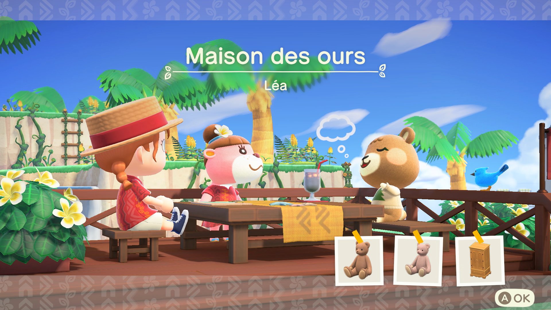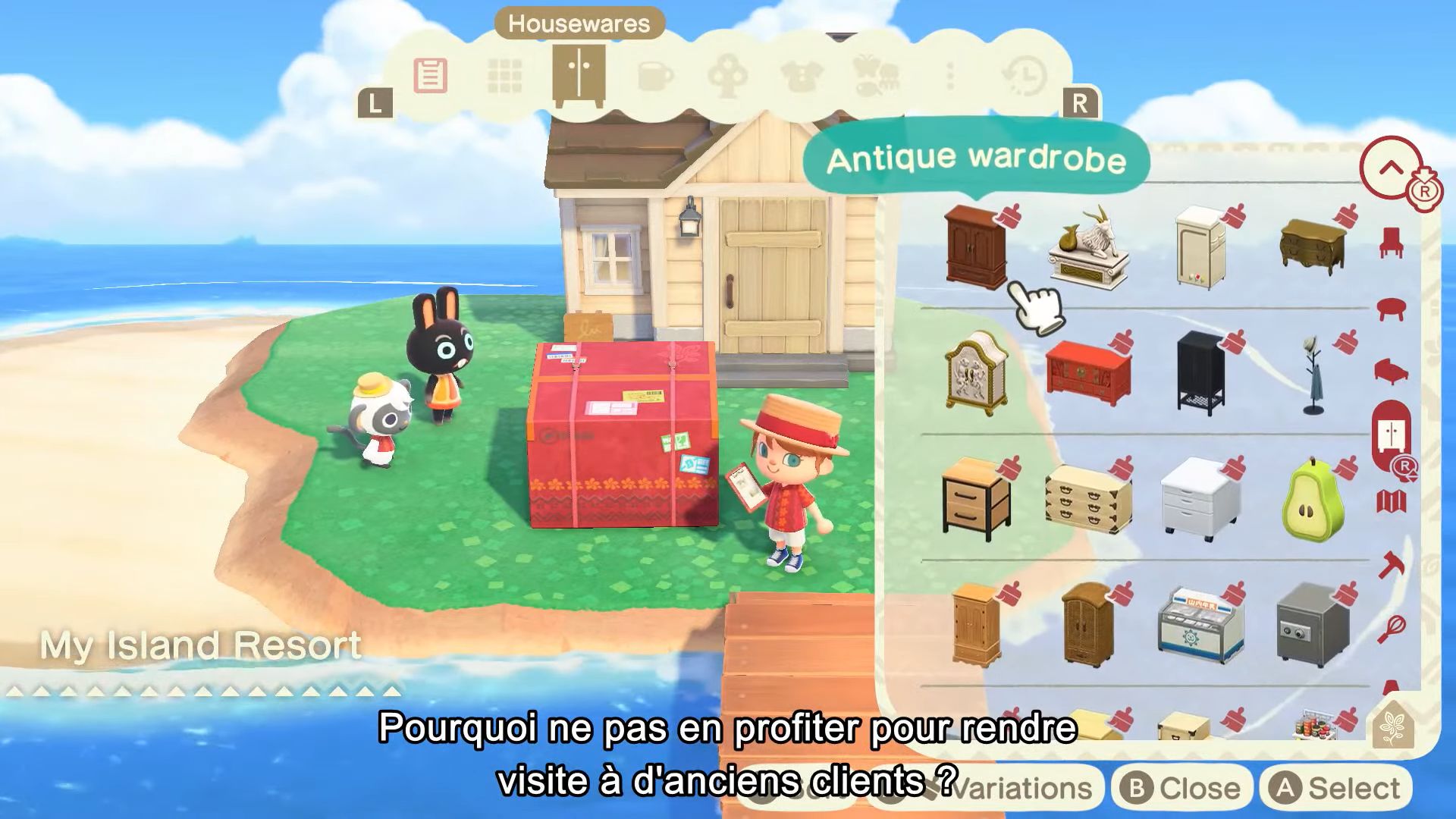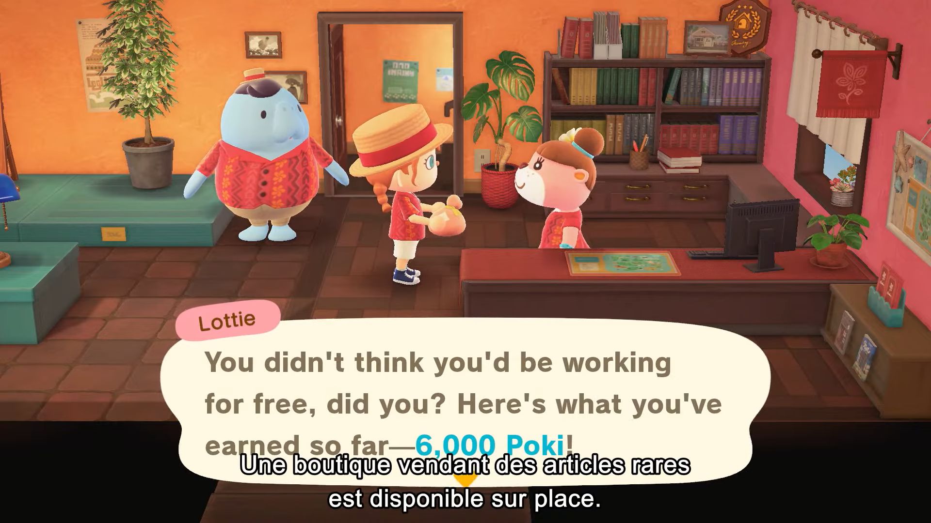 Dernière chose importante à savoir : après une journée de travail, on retournera à l’agence pour recevoir un paiement. Il ne s’agit pas de clochettes, mais de pokis, une nouvelle monnaie à échanger contre des articles rares, uniquement disponibles à l’agence des Villas de Lou. Bien sûr, on pourra ensuite amener ces articles chez nous.