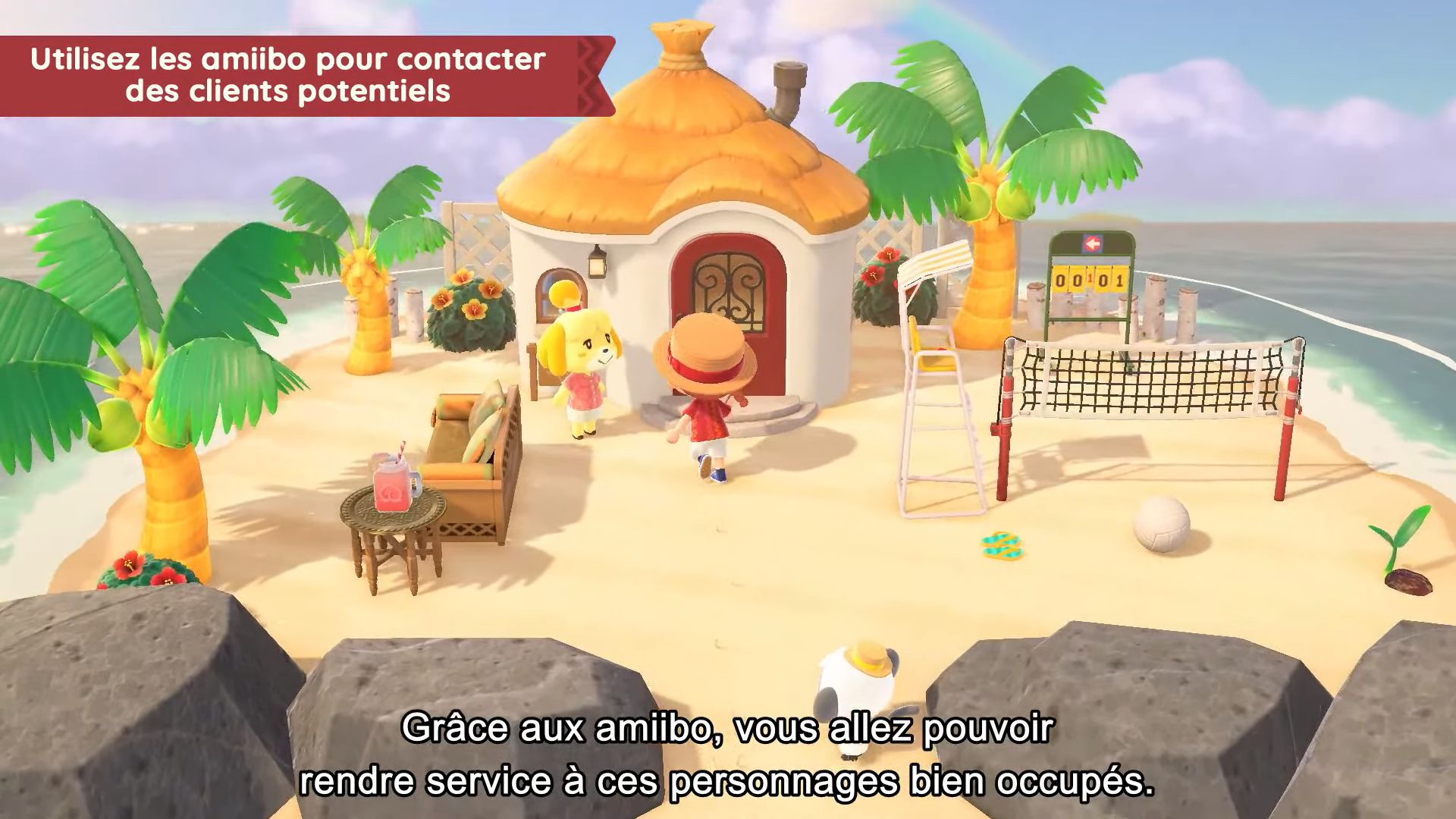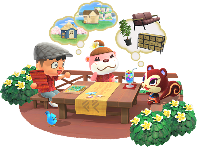 Il sera également possible d’inviter dans ce village des personnages en utilisant des cartes ou des figurines amiibo, y compris les PNJ importants comme Tom Nook, Méli et Mélo ou Marie. Ils auront ainsi leur propre villa de vacances et on pourra répondre à leurs requêtes.