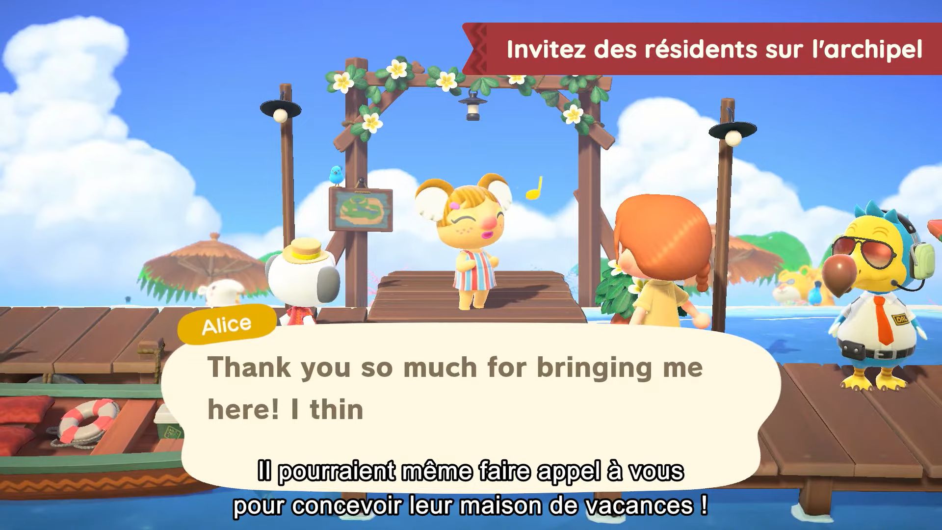La deuxième partie du Direct concernait une grande nouveauté que l’on avait déjà réussi à prédire auparavant : un DLC payant. Intitulé Animal Crossing : New Horizons – Happoy Home Paradise, il fait donc référence au jeu Animal Crossing : Happy Home Designer sur 3DS. Une fois que l’on obtiendra ce DLC payant, pour commencer à profiter des nouveautés, il faudra passer par l’aéroport et parler à Morris puis lui dire que l’on veut aller au travail. On ira alors sur un archipel constitué de nombreuses îles, plus précisément sur un village de vacance où les personnages qui s’y rendent rêvent de trouver leur maison de vacances idéale. Afin de les aider, il faudra s’inscrire à l’équipe des Villas de Lou, composée de Lou et de deux autres nouveaux personnages (le petit singe Gratien et Mantin, qui fait probablement référence à une raie manta), comme Tom Nook nous l’a recommandé.