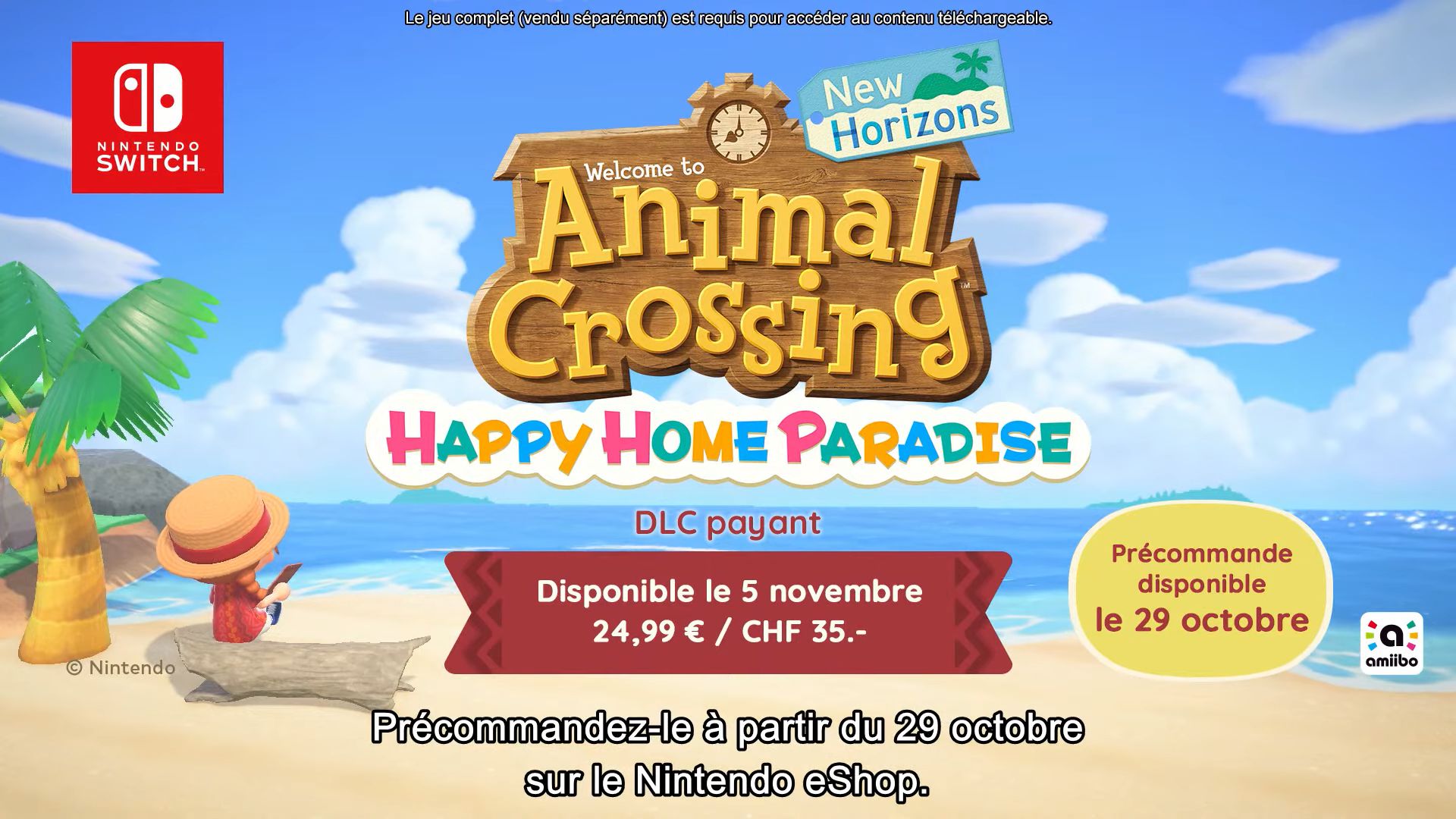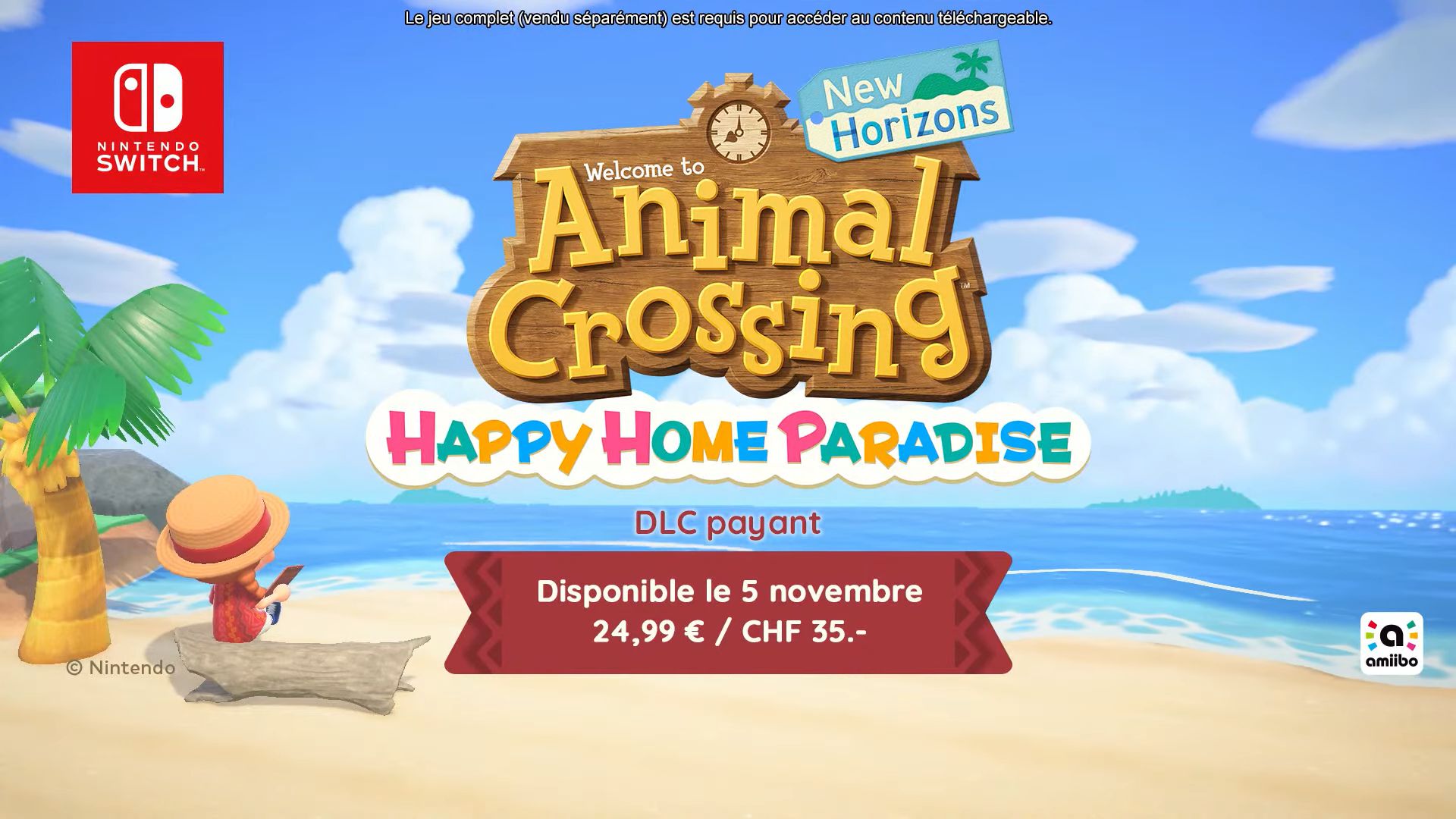 Il est possible d’accéder au contenu d’Animal Crossing : New Horizons – Happy Home Paradise de deux manières différentes : soit en achetant ce contenu sur le Nintendo eShop au prix de 24,99 €, soit en le téléchargeant sans coût supplémentaire si vous disposez d’un abonnement Nintendo Switch Online + Pack additionnel.
