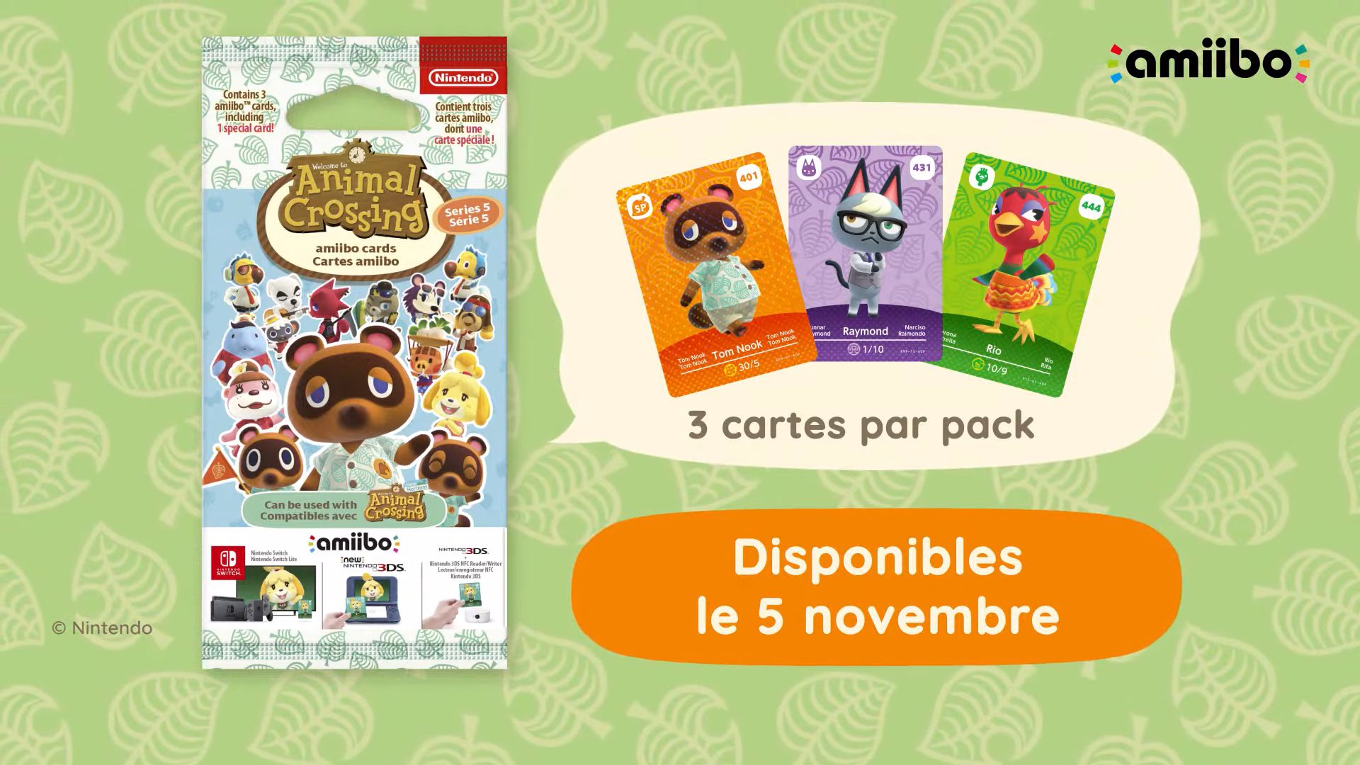 Déjà annoncée depuis plusieurs jours, nous savons désormais que la prochaine série des cartes amiibo Animal Crossing sera disponible le 5 novembre prochain, pour coïncider avec la sortie de la grande mise à jour de New Horizons et le DLC Happy Home Paradise. Cette nouvelle série comprendra un total de 48 personnages, dont les nouveaux PNJ importants introduits dans New Horizons, les nouveaux personnages qui arriveront avec la mise à jour et le DLC ainsi que d’autres personnages provenant d’anciens jeux de la saga dont surtout Doubutsu no Mori e+. Chaque paquet comprendra 3 cartes.