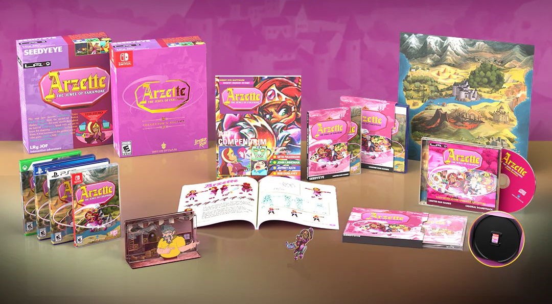 Comme prévu, c’est ce 14 février 2024 que le jeu d’action et d’aventure Arzette : The Jewel of Faramore, développé par Seth Fulkerson, alias Dopply et Seedy Eye Software, est sorti en téléchargement sur Nintendo Switch, PlayStation 4, PS5, Xbox Series et PC (au prix de 19,99 € sur consoles et 19,50 € sur Steam). Présenté lors LRG3 2023 en juillet 2023, ce titre rend hommage aux jeux Zelda parus en 1993 sur la console et le lecteur multimédia CD-i de Philips. Il est disponible avec des textes en français, anglais, italien, allemand, espagnol, néerlandais, norvégien et portugais du Brésil, tandis que les voix sont uniquement en anglais. L’éditeur et distributeur, Limited Run Games, qui a aussi financé le projet, propose aussi des éditions physiques pour les versions Switch, PS4, PS5 et Xbox Series (34,99 $ pour la version standard, 89,99 $ pour l’édition collector ou 124,99 $ en incluant une manette spéciale de couleur rose faisant référence à celui du lecteur de Philips), ainsi qu’un vinyle de la bande originale à 39,99 $, un t-shirt et la manette spéciale séparément mais uniquement compatible Switch et PC à 34,99 $ (la manette rose est seulement incluse dans l’édition collector). Les précommandes seront terminées le 18 mars à 5:59 (heure française). Les éditions physiques et les autres produits sont listés à cette adresse.