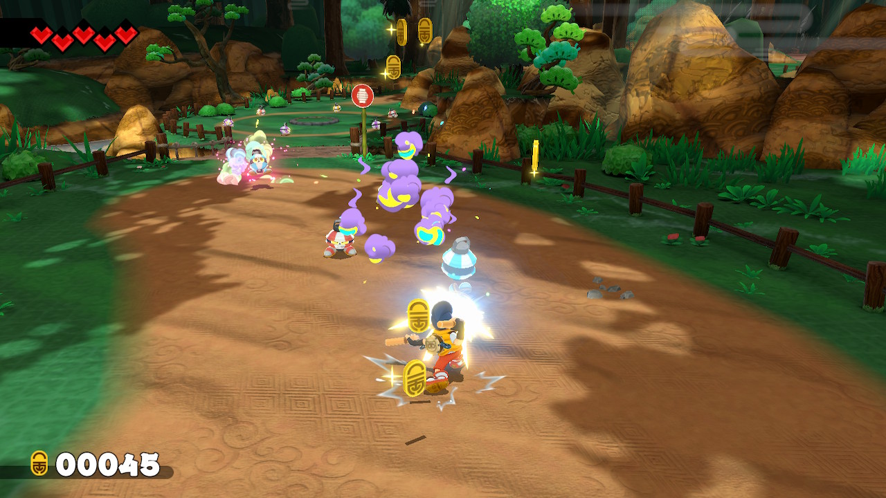 Annoncé lors du Nintendo Direct du 21 juin 2023, Bakeru est un jeu d’action en 3D qui est sorti le 30 novembre dernier en physique et en téléchargement au Japon sur Switch au prix de 5 280 yens. Bakeru a été présenté à plusieurs reprises comme un successeur spirituel de Goemon / Ganbare Goemon (ou Mystical Ninja), par des fans de la série de Konami. Malgré le fait que Good-Feel ne l’a pas décrit officiellement comme cela, cette comparaison est d’autant plus justifiée par le fait qu’à la tête de son équipe de développement, il y avait Etsunobu Ebisu, producteur et président du studio, et Tadanori Tsukawaki, aujourd’hui directeur artistique. En plus d’être des membres importants de Good-Feel, Ebisu et Tsukawaki ont tous les deux travaillé sur la série Goemon à leurs débuts. Ebisu a lui-même travaillé sur la programmation de Ganbare Goemon 2, puis a eu le même rôle en plus d’être réalisateur sur Ganbare Goemon 2 : Kiteretsu Shogun Magginesu et Ganbare Goemon 3 : Shishi Jurokubee no Karakuri Manji-gatame. Il a également été Chief Director pour Mystical Ninja Starring Goemon sur Nintendo 64 en 1997. C’était sa dernière implication en tant que réalisateur sur un jeu vidéo. Par la suite, il a été producteur sur Ganbare Goemon : Mononoke Dochu Tobidase Nabe-Bugyo ! et Goemon Mononoke Sugoroku. Quant à Tsukawaki, il a été designer sur Goemon : Mononoke Sugoroku et a œuvré sur les graphismes de certains éléments de Goemon : Boken Jidai Katsugeki.
