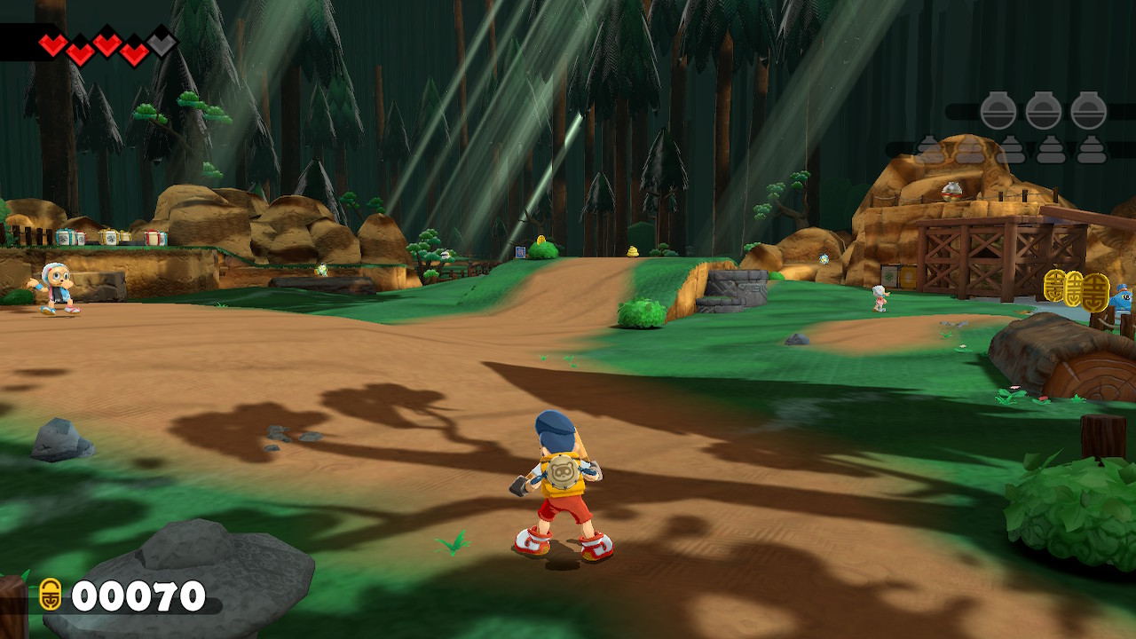 Dans chaque niveau, on pourra collecter des souvenirs correspondant à des spécialités locales de chaque région et apprendre une variété de connaissances grâce à un sage errant qui sera présent tout au long de l’aventure. De plus, Bakeru pourra participer à toutes sortes d’activités avec différents types de gameplay. En effet, on trouve par exemple un mini-jeu de course et une bataille aérienne en plus d’un combat de robots géants.
