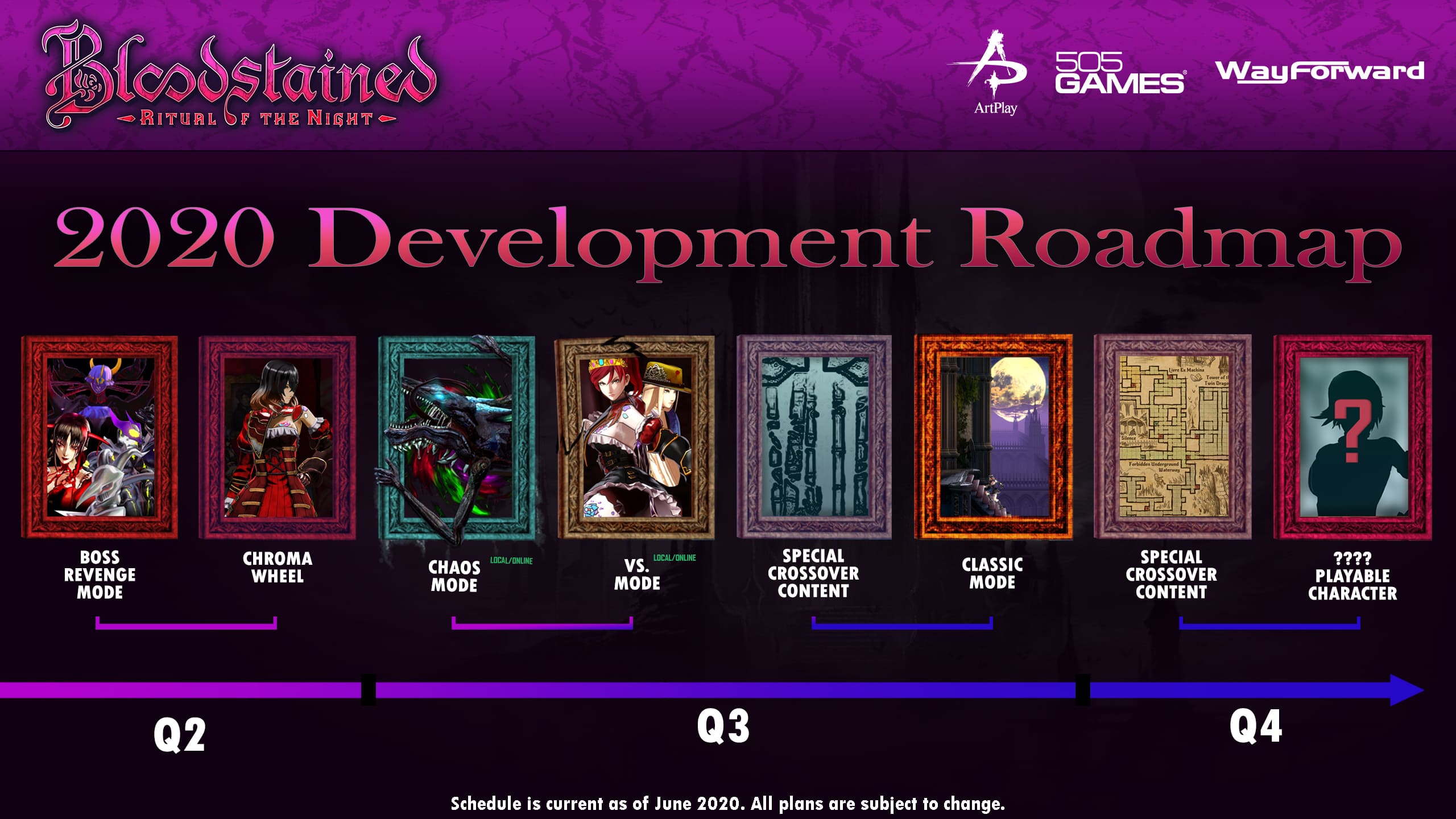 Mode Boss Revenge : Grâce à la communauté ayant participé au Kickstarter, qui a dépassé l’objectif final de financement de 5,5 millions de dollars, un nouveau mode de jeu gratuit pour Bloodstained : Ritual of the Night a pu voir le jour. Dans ce mode, accessible en entrant dans une salle de transition, les joueurs pourront affronter avec acharnement quatre boss du jeu dans le but de réaliser le meilleur temps possible