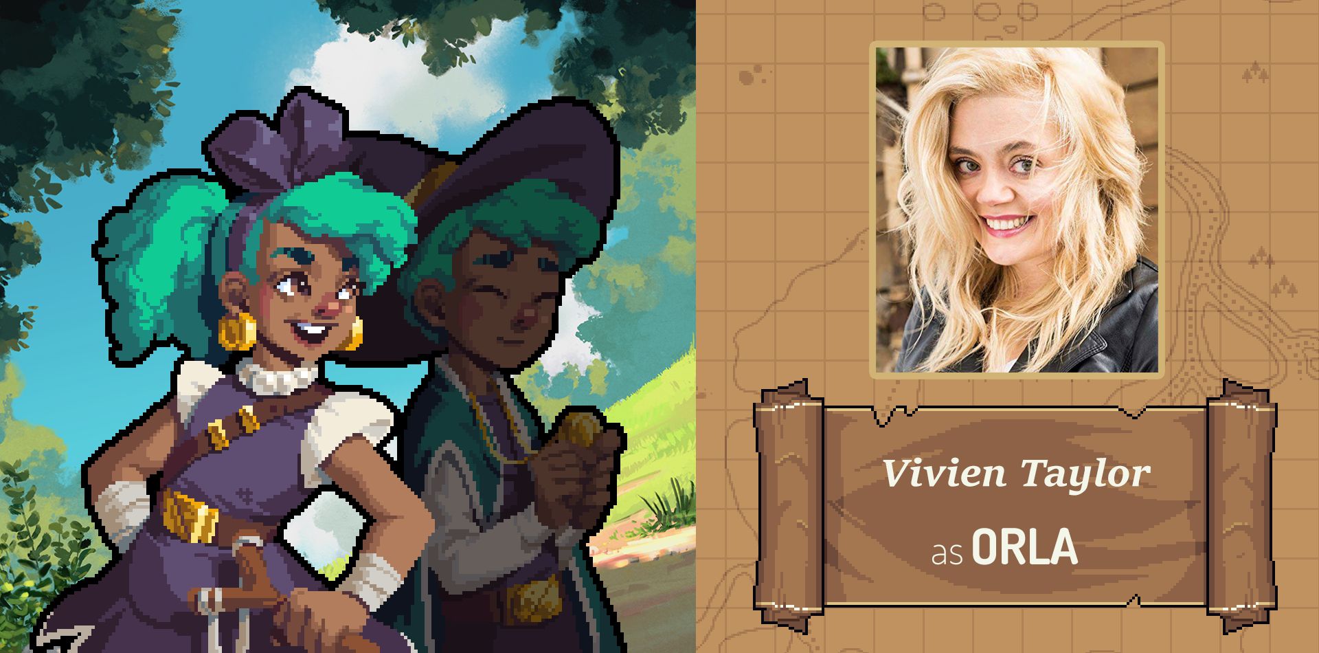 – Vivien Taylor jouant Orla, pour qui c’est la première expérience dans le doublage de jeux vidéo, mais qui a déjà participé à la série anglaise primée OOglies Funsize.