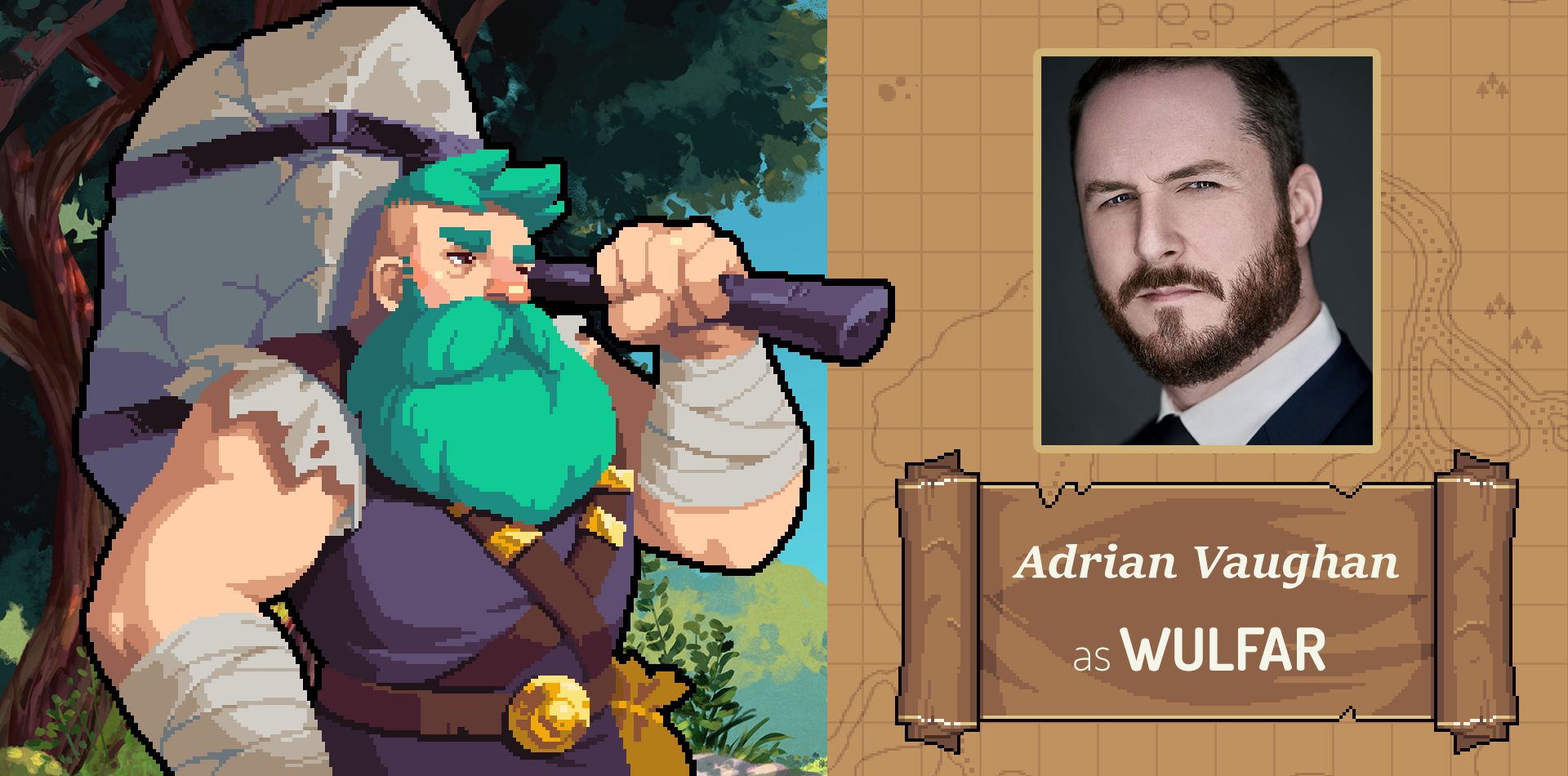 – Adrian Vaughan jouant Wulfar, un doubleur ayant déjà travaillé sur différents jeux, dont Crawl, Armello, Paradigm, Budget Cuts 1 & 2,