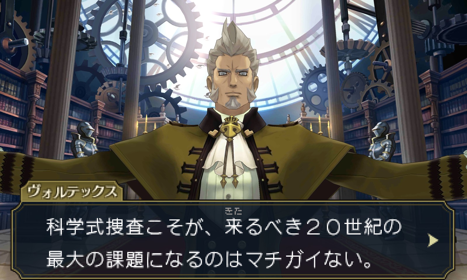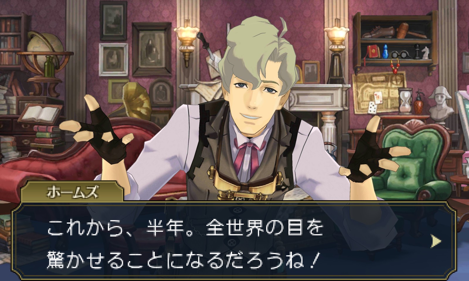 Le juge en chef Hart Vortex décidé d’assigner Ryuunosuke Naruhodou à cette affaire, qui se rend alors sur le lieu du crime avec Iris Watson afin d’enquêter et trouver ce qu’il s’est réellement passé. Ils rencontrent Gina Lestrade (apparue pour la première fois dans le premier Dai Gyakuten Saiban), qui est désormais Inspectrice. Elle travaille avec l’Inspecteur Tobias Gregson et est accompagnée de son chien, Toby, qui est lui aussi un Inspecteur. Un des témoins de la scène se nomme Gotts, un garçon bohémien qui a vu l’expérience depuis un ballon dirigeable. Enfin, Capcom a confirmé que le système de Questionnement sera de retour et permettra encore une fois d’interroger plusieurs témoins pendant les procès, comme dans Professeur Layton vs Phoenix Wright : Ace Attorney et Dai Gyakuten Saiban : Naruhodou Ryuunosuke no Bouken.