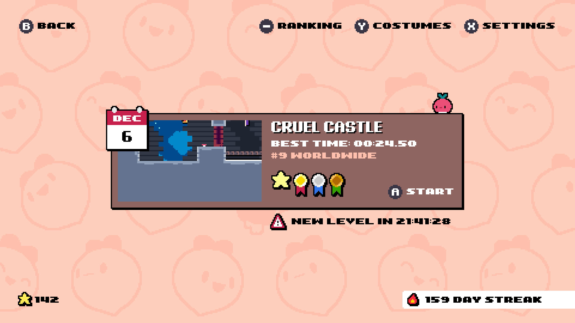 Sorti le 8 février 2023 sur l’eShop de la Nintendo Switch, ainsi que sur iOS, Android et PC (via Steam), le charmant Daily Dadish est la nouvelle création du développeur Thomas K. Young qui remet le couvert après Dadish 1, 2 et 3. Le concept est ici de proposer un niveau par jour pendant un an, chacun n’étant toutefois disponible que pendant la journée en question. À noter qu’il est également possible de s’adonner gratuitement au jeu sur navigateur par le biais de la plateforme Poki.