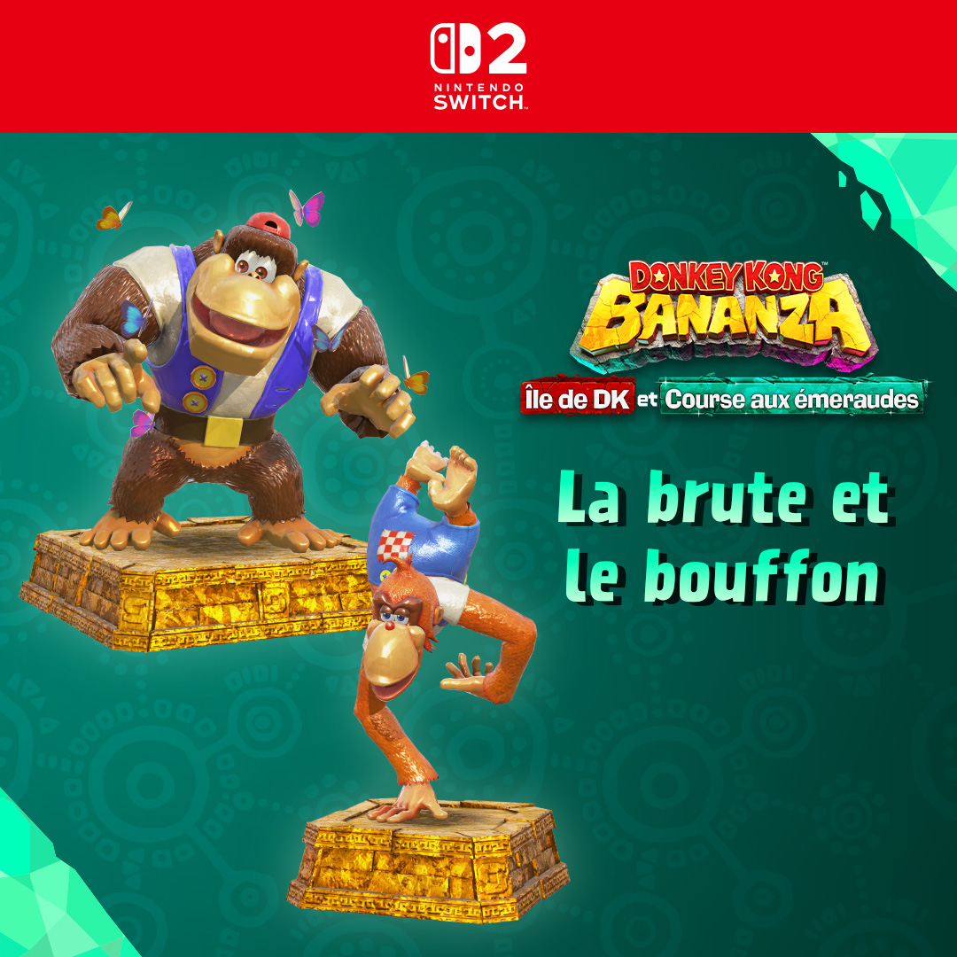 Le DLC Île de DK et Course aux émeraudes de Donkey Kong Bananza va bientôt avoir droit à son deuxième événement, nommé « la brute et le bouffon ». Disponible à partir du 25 novembre à 09:00 jusqu’au 2 décembre à 08:59, il s’agira encore une fois d’une course aux émeraudes spéciales qui permettra d’obtenir des statues de Chunky Kong et de Lanky Kong de Donkey Kong 64. Nintendo indique que contrairement aux courses aux émeraudes standard, les éléments habituellement aléatoires comme les compétences obtenues grâce aux rondelles de banandium seront prédéfinies. Comme cela a été révélé précédemment, il y aura des événements chaque mois. Chacun d’eux demandera de participer à un défi spécial Course aux émeraudes. À chaque fois qu’un événement temporaire sera organisé, des statues spéciales seront à gagner en jeu. Cependant, les événements concerneront uniquement le DLC. Pour en savoir plus à son sujet, vous pouvez consulter notre article sur Île de DK et Course aux émeraudes à cette adresse. Des astuces sont également disponibles ici.