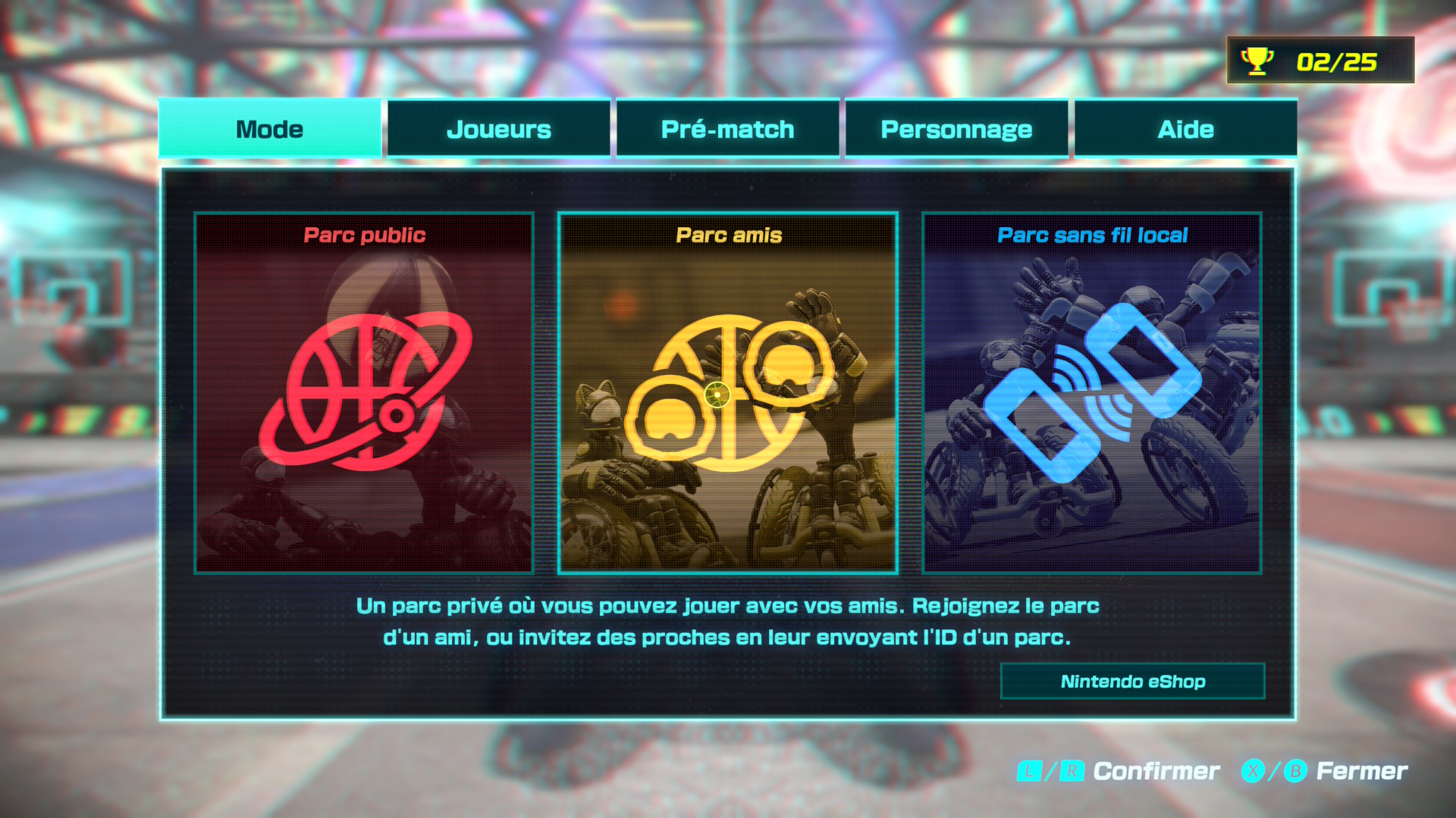 Sélectionnez Parc sans fil local  dans l’onglet Mode  du menu X pour jouer.