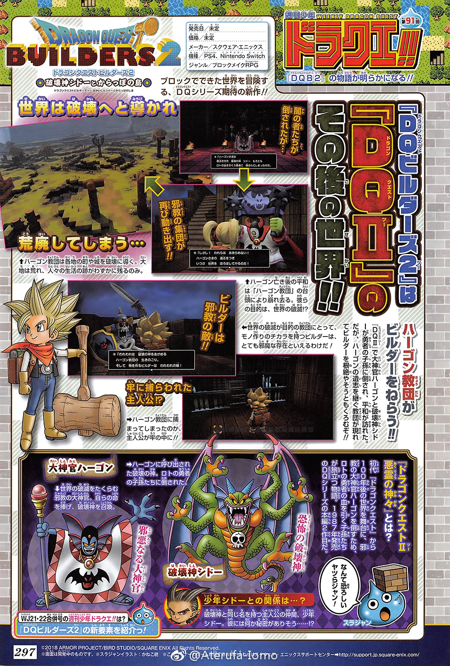 Après les nombreuses informations dévoilées en février (voir notre article) puis début avril (voir nos dernières news ici et là), Square Enix continue sa communication autour de Dragon Quest Builders 2 : The God of Destruction Malroth and the Vacant Island sur Nintendo Switch et PlayStation 4 avec cette fois-ci de nouvelles informations sur l’histoire dévoilées cette semaine suite à une fuite du dernier numéro du magazine Weekly Jump. Cependant, avant de lire ce qui suit, nous vous prévenons que les détails dévoilés sont liés à la fin de Dragon Quest II : Luminaries of the Legendary Line et peuvent donc être considérés comme des spoilers.