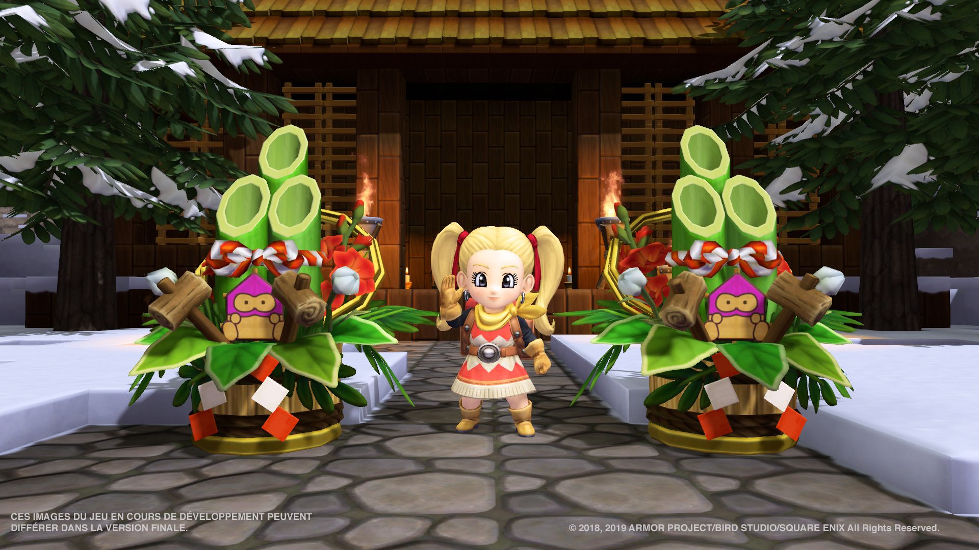 – Pack de bibelots (disponible le 26 juillet gratuitement) : un pack contenant trois recettes pour créer une raquette traditionnelle, un potage festif et une décoration traditionnelle dans un style japonais (Yotto dans l’univers de Dragon Quest Builders 2, ou Hotto en anglais) s’inspirant de la célébration de la nouvelle année. Ce pack est sorti le 27 décembre au Japon, et nous l’avions présenté dans cet article.