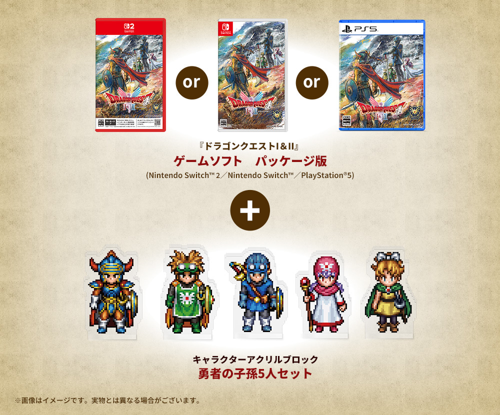 Avec Dragon Quest I & II HD-2D Remake, Square Enix promet des remakes intégraux de Dragon Quest I et Dragon Quest II, qui se déroulent donc chronologiquement après les événements de Dragon Quest III HD-2D Remake. Il s’agit de la conclusion de la « trilogie d’Elric ». On trouvera des scènes inédites, de nouvelles histoires, de nouvelles zones, de nombreuses améliorations et mises à jour, ainsi qu’gameplay garni de nouveautés. Dans Dragon Quest I, on devait faire face à des ennemis seuls, mais le remake permettra d’affronter plusieurs ennemis en même temps. L’éditeur annonce par ailleurs qu’une compilation numérique, intitulée Dragon Quest HD-2D Remake Erdrick Trilogy Collection, sera également disponible. Elle regroupera les trois remakes dans un seul pack, qui sera bien disponible sur toutes les plateformes. Cela signifie donc que Dragon Quest III HD-2D Remake sera proposé sur Switch 2, d’autant plus qu’il est listé sur ce support sur le site officiel japonais, mais il est possible que cela correspond simplement au fait que la version Switch du jeu sera compatible sur Switch 2. Le prix est fixé à 12 760 yens.