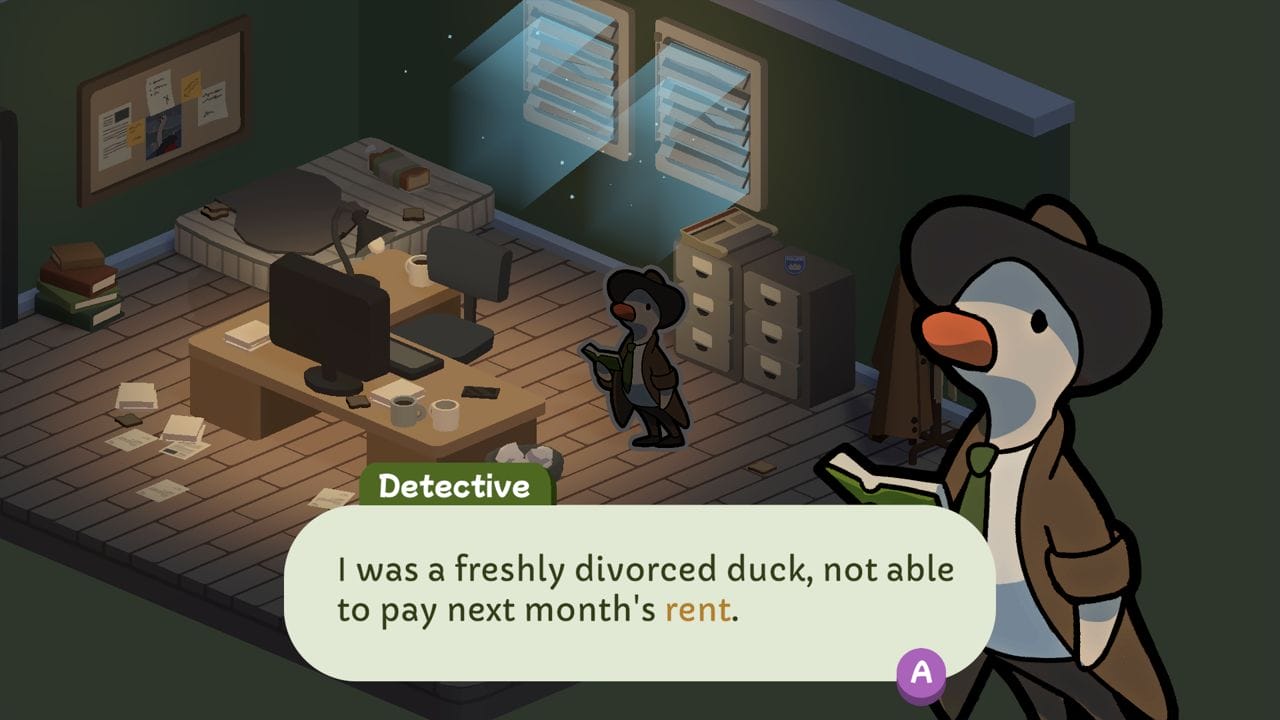 Aggretsuko rencontre Return of the Obra Dinn dans Duck Detective, un jeu de mystère douillet sur un canard malchanceux qui cherche des réponses dans une sinistre conspiration à base de saucisses.