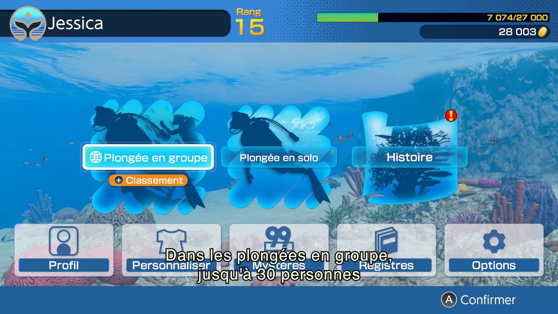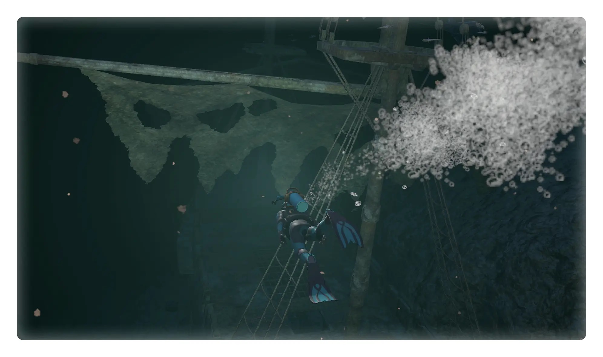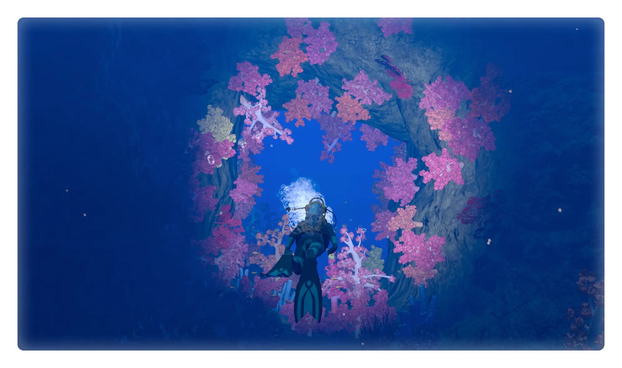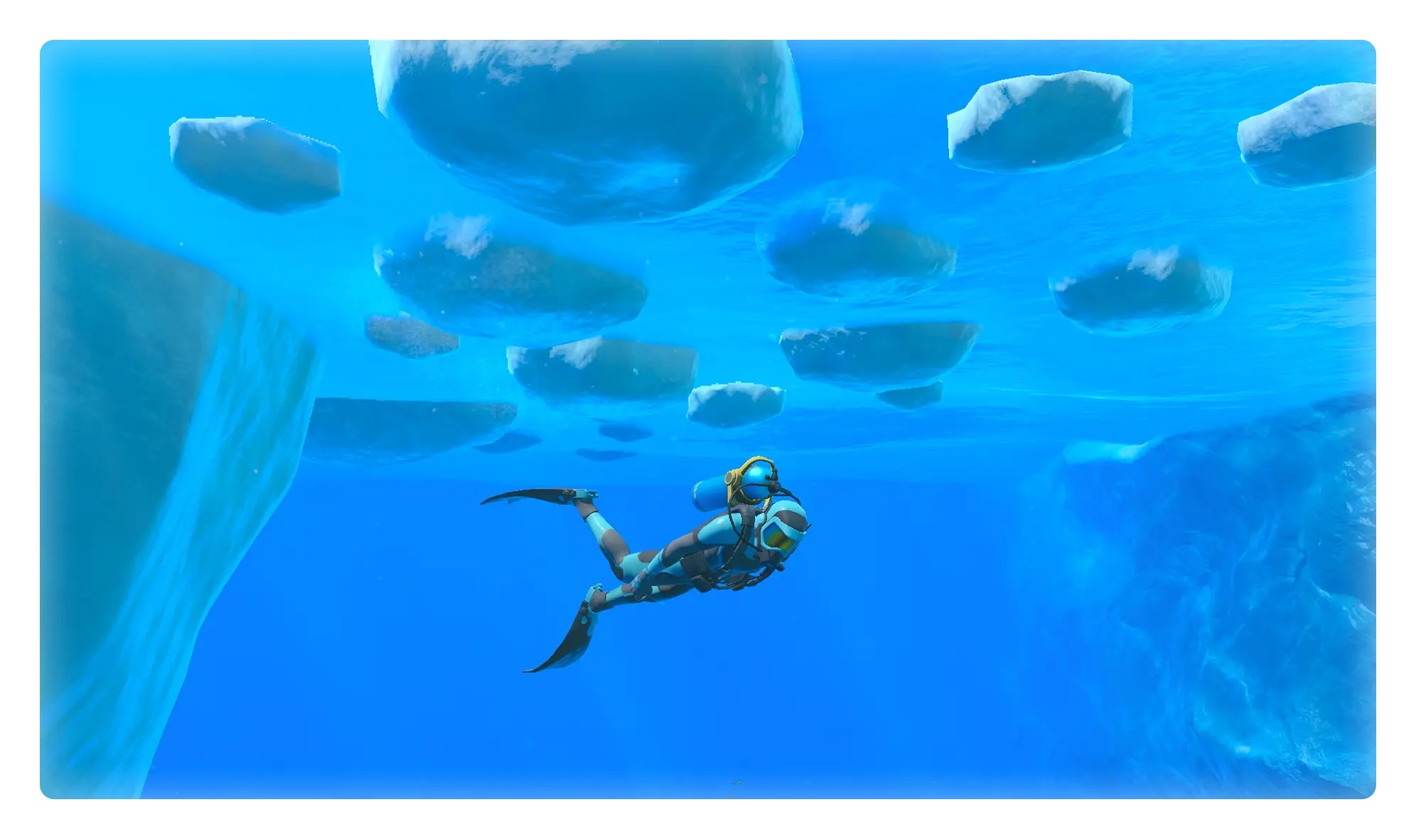 Il faut savoir également que l’apparence des environnements (récifs coralliens, affleurements rocheux abrupts, eaux glaciaires…) changera en fonction de l’heure de la journée dans le jeu. Pour percer les mystères de la mer Voilée, il faudra chercher des reliques enfouies. Au fil des plongées, on pourra aussi débloquer différentes couleurs de combinaison, des stickers ainsi que de nouveaux signes à utiliser en ligne pour personnaliser notre personnage.