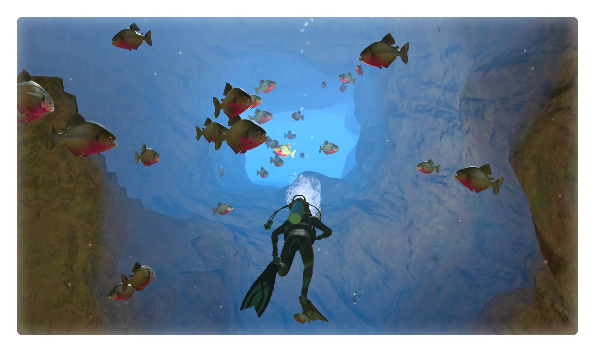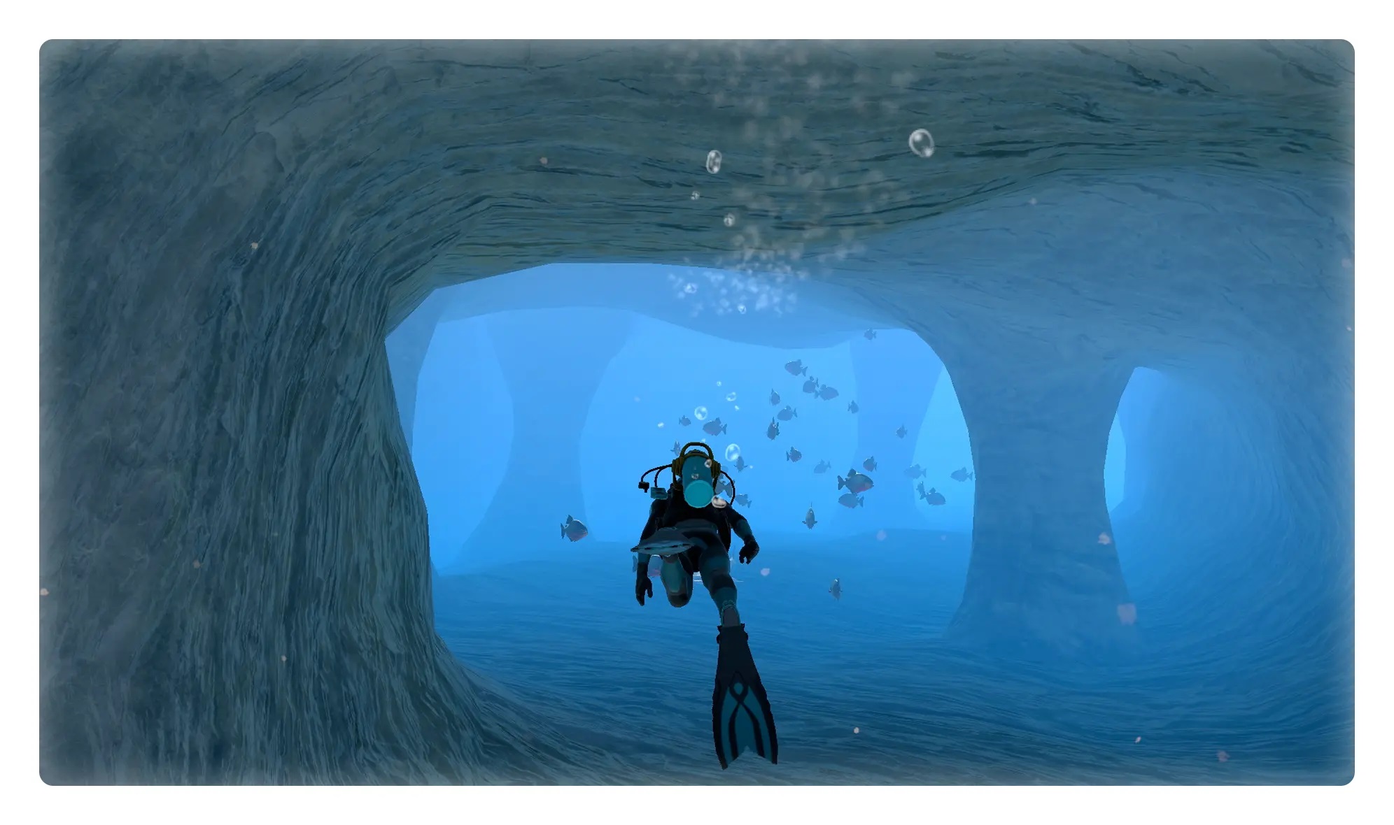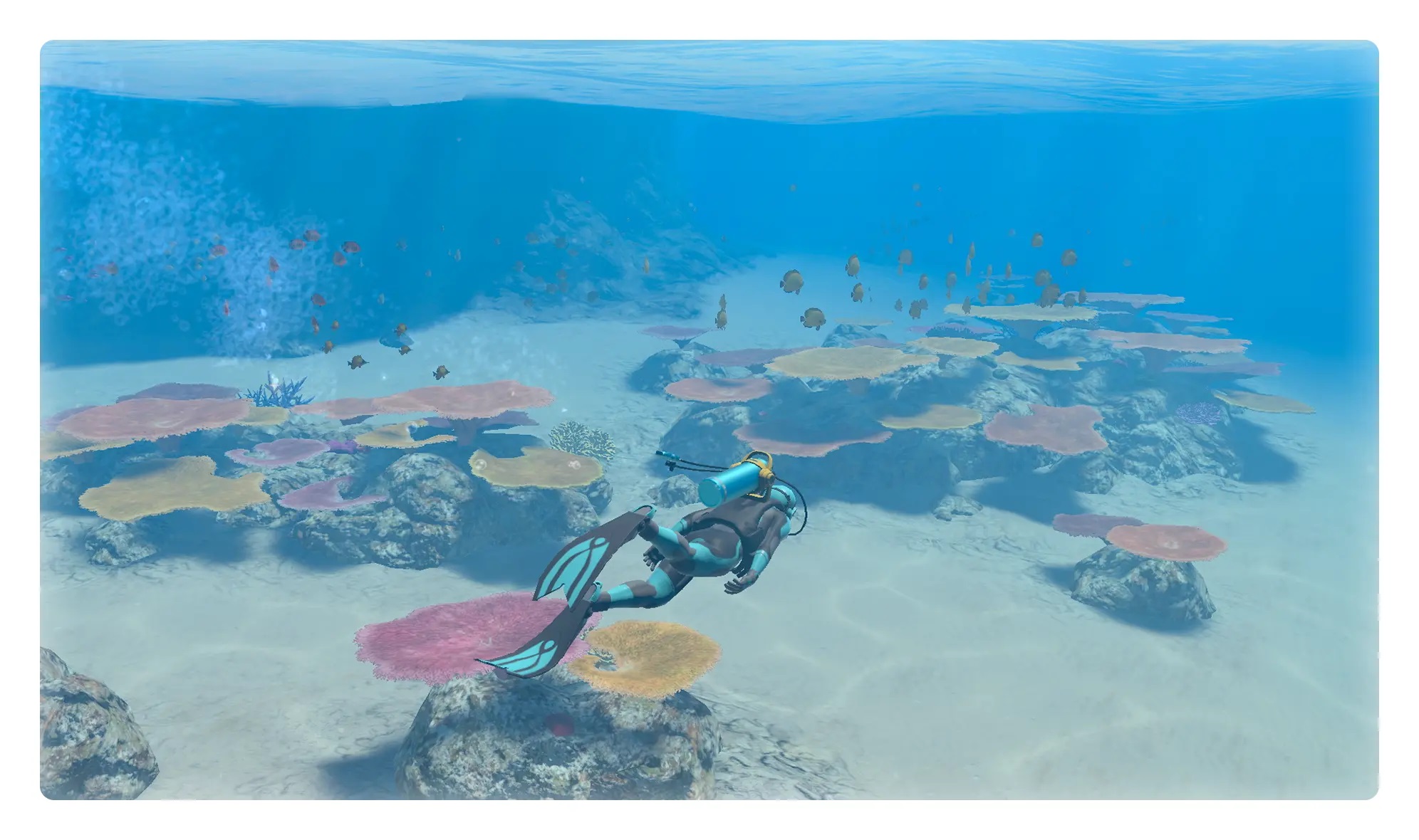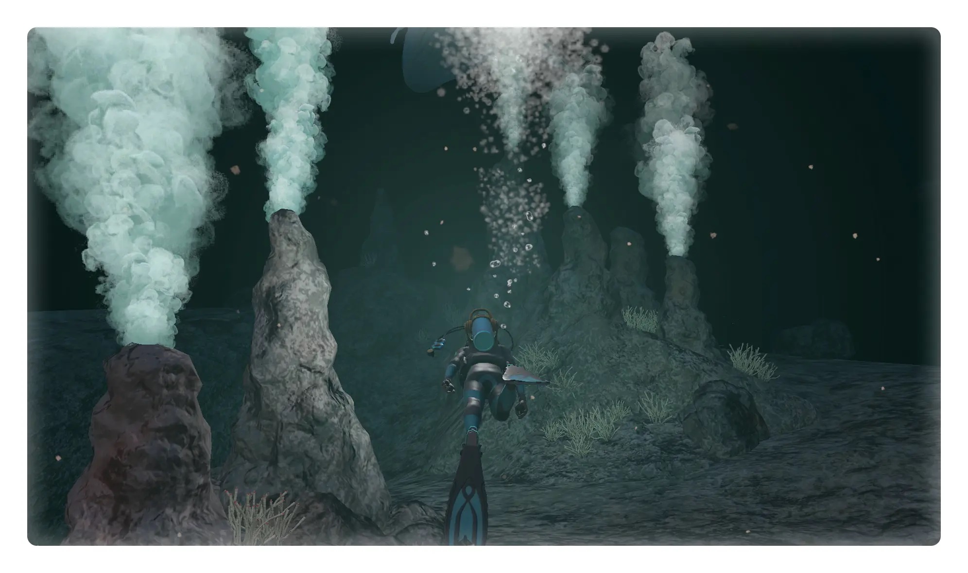 Il faut savoir également que l’apparence des environnements (récifs coralliens, affleurements rocheux abrupts, eaux glaciaires…) changera en fonction de l’heure de la journée dans le jeu. Pour percer les mystères de la mer Voilée, il faudra chercher des reliques enfouies. Au fil des plongées, on pourra aussi débloquer différentes couleurs de combinaison, des stickers ainsi que de nouveaux signes à utiliser en ligne pour personnaliser notre personnage.