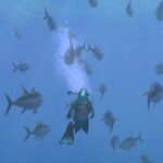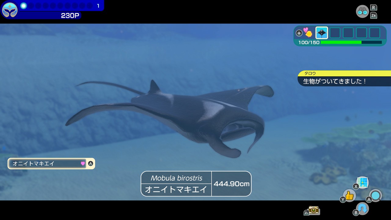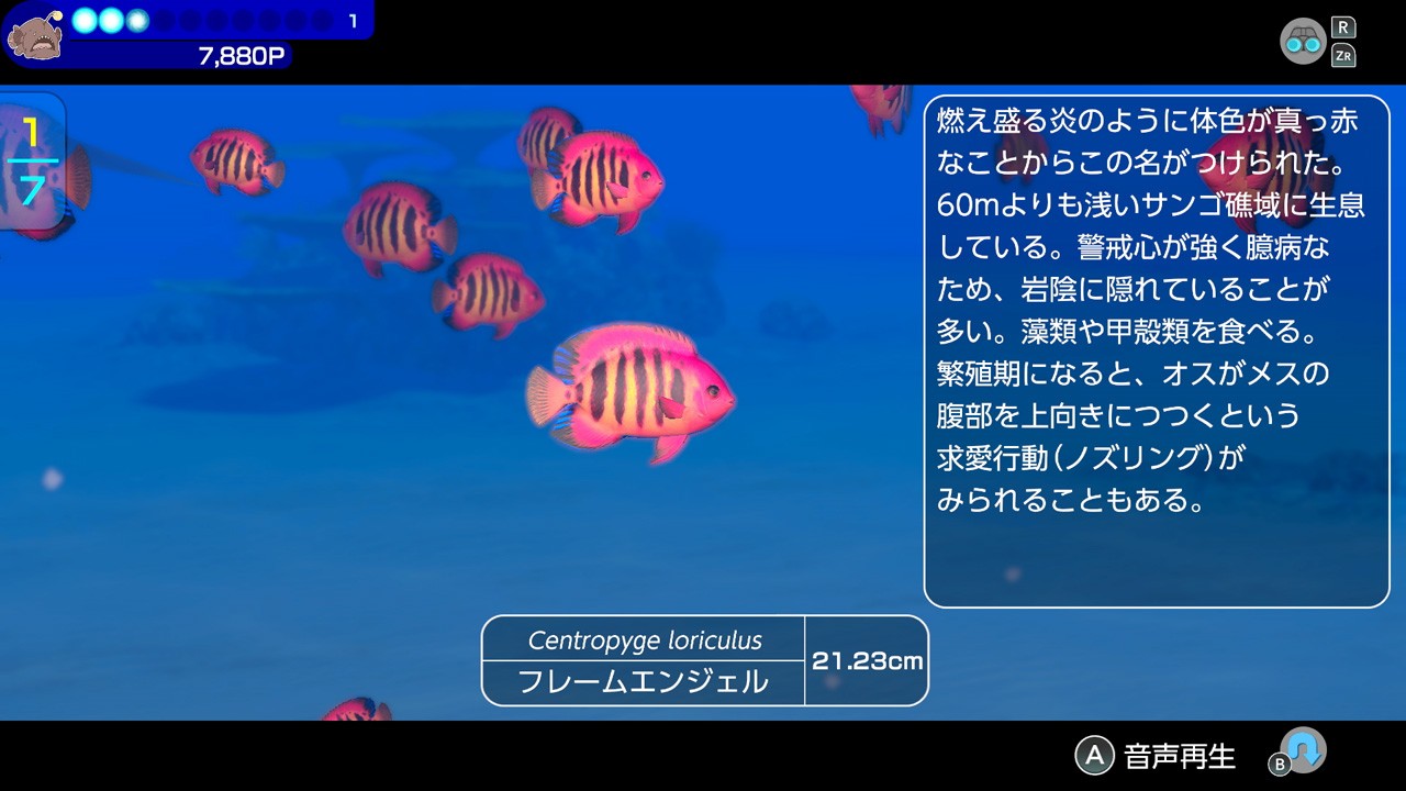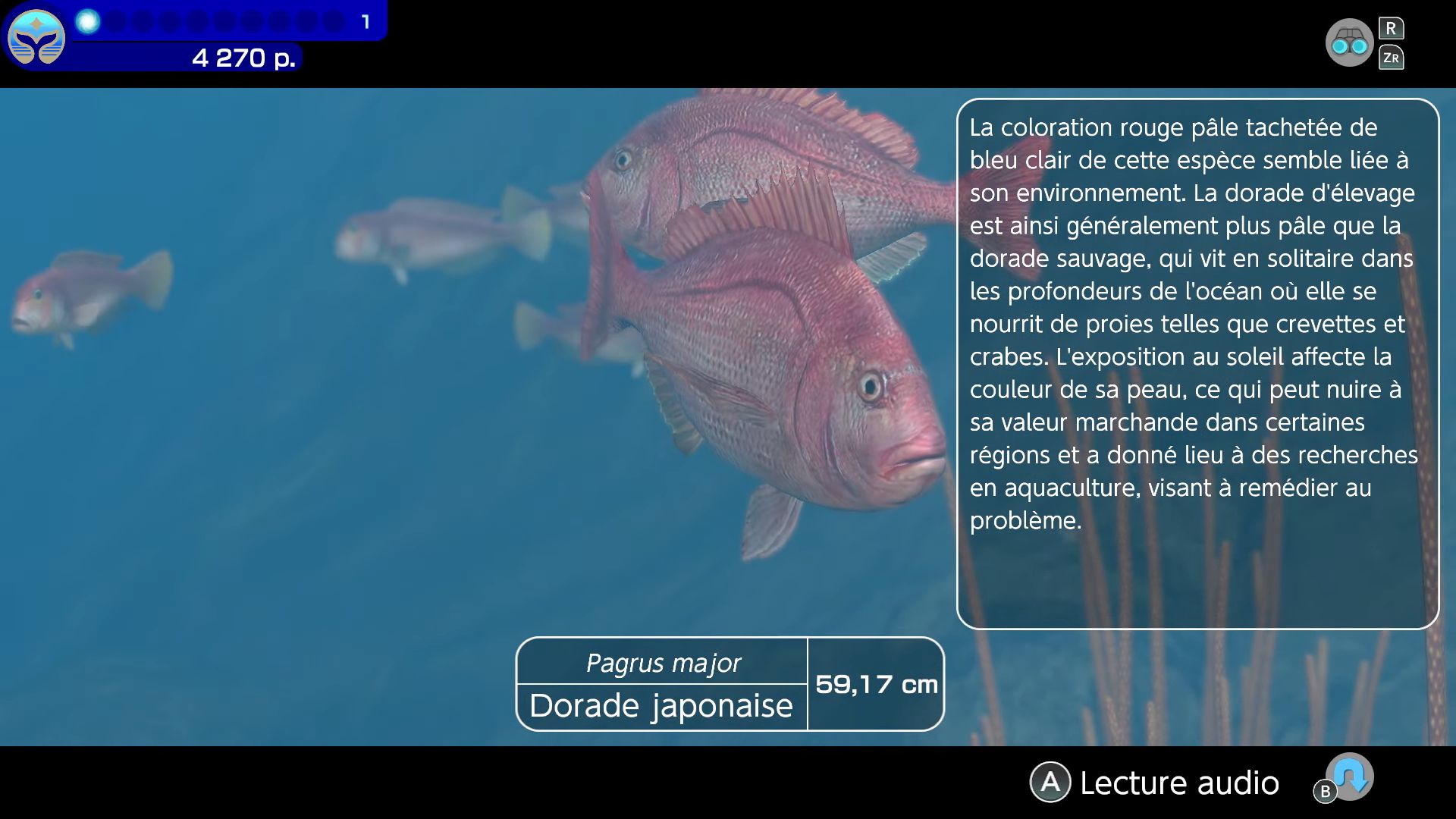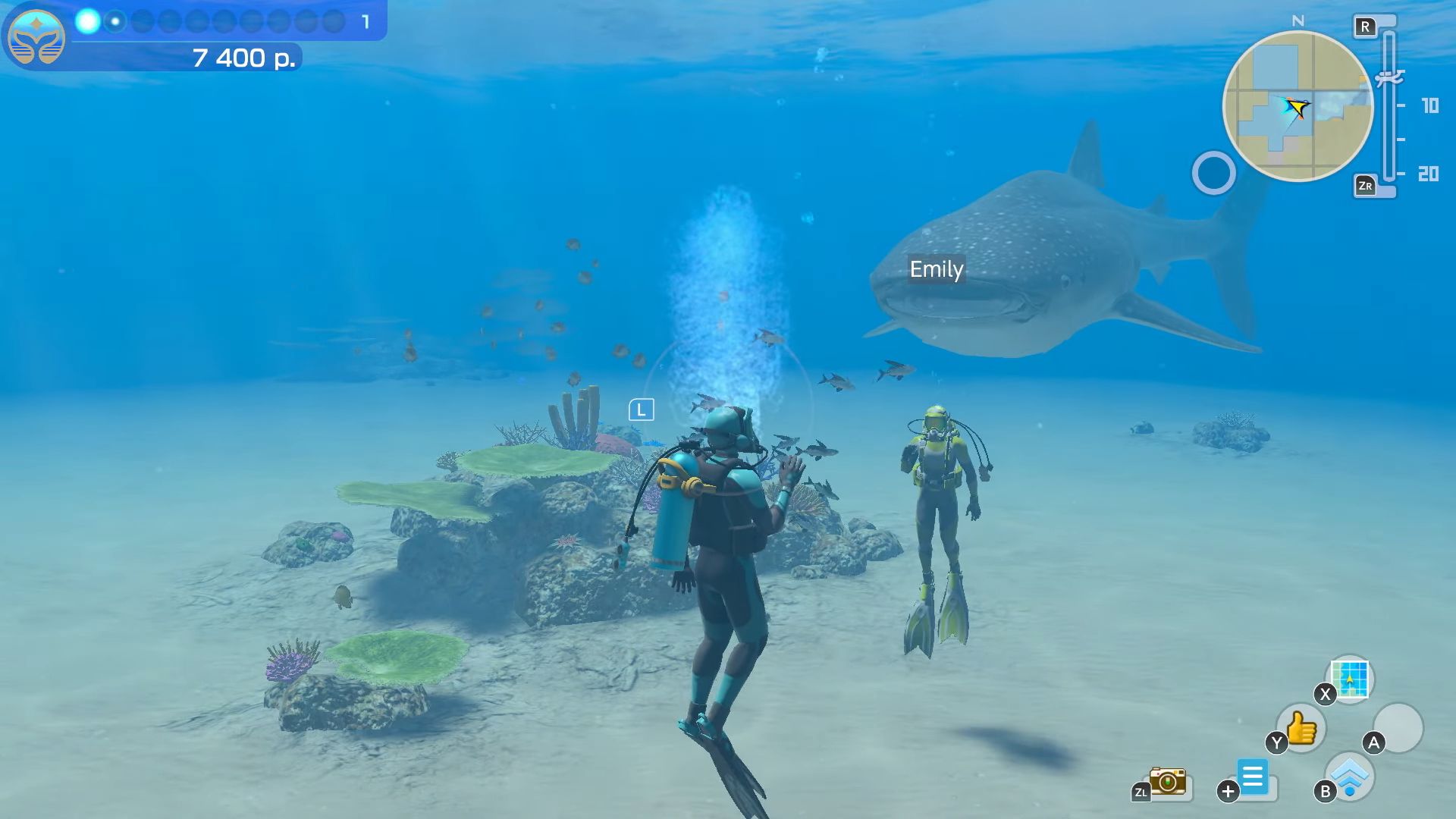 Dans un article publié sur le blog officiel japonais de Nintendo, on en apprend un peu plus sur le jeu et les activités proposées. En plongeant dans la mer Voilée, on pourra donc observer de nombreuses créatures marines, et si une espèce en particulier nous intéresse, on pourra essayer de nager avec elle. Nager avec les dauphins sera donc possible, par exemple, ou bien avec un banc de poissons, une raie Manta, un homard et plus encore. Par contre, au début du jeu, il y aura seulement un nombre limité d’espèces avec lesquelles on pourra nager. Il faudra augmenter notre rang, ce qui augmentera ensuite le coût de natation permettant donc de nager avec une plus grande variété de créatures marines. Le jeu embarque également une encyclopédie incluant des informations sur chaque espèce rencontrée, une description et d’autres détails (la taille maximale ou minimale par exemple). Chaque créature observée au cours du jeu sera ajoutée automatiquement à l’encyclopédie et on pourra consulter les informations à tout moment grâce à une assistante de recherche. Et si l’on parvient à trouver toutes les espèces et compléter ainsi l’encyclopédie, on pourra peut-même devenir professeur en biologie marine. Bien sûr, il sera également possible de prendre des photos des paysages et de la vie marine, de prendre des selfies de notre personnage (avec des créatures ou d’autres joueurs à côté) ou de photographier un spécimen spécifique. Toutes les photos seront sauvegardées automatiquement sur la Switch.